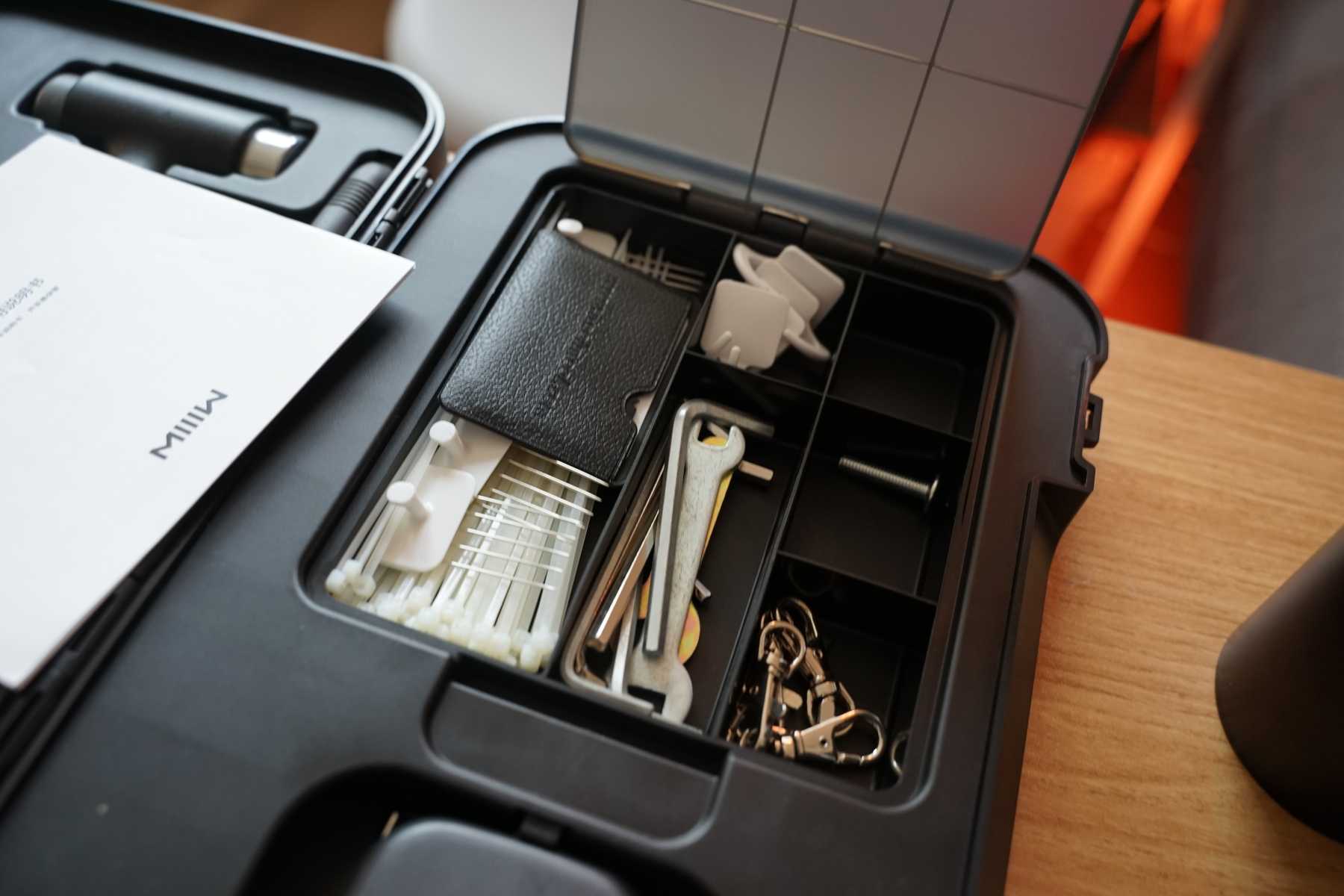 그리고 여기 보시면 위쪽에는 보관함이 있어요. 여기를 열면 어떻게 생겼냐면 이런 식으로 생겼습니다.그래서 여기다가는 뭐 나사나 각종 공구랑 관련된 제품들을 여기다가 보관 할 수가 있어요.