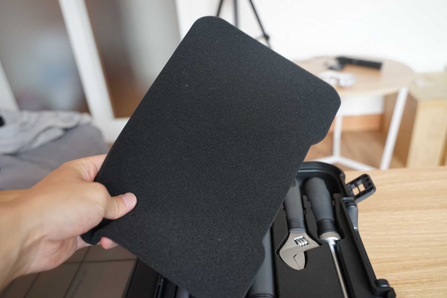 한번 열어볼게요. 열면 일단 이런 식으로 생겼어요. 안쪽에는 스펀지 같은 게 들어 있어서 안에 있는 공구를 보호해주고 있어요.