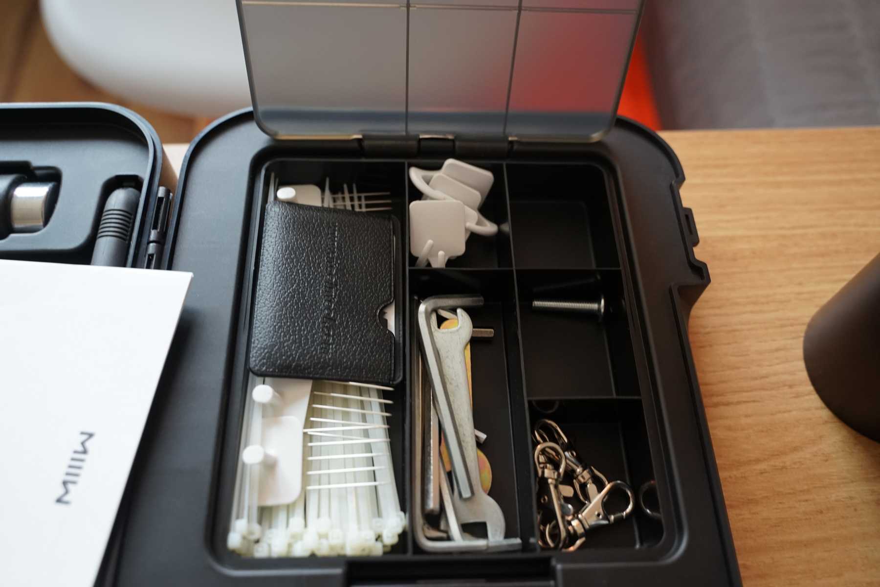 그리고 여기 보시면 위쪽에는 보관함이 있어요. 여기를 열면 어떻게 생겼냐면 이런 식으로 생겼습니다.그래서 여기다가는 뭐 나사나 각종 공구랑 관련된 제품들을 여기다가 보관 할 수가 있어요.
