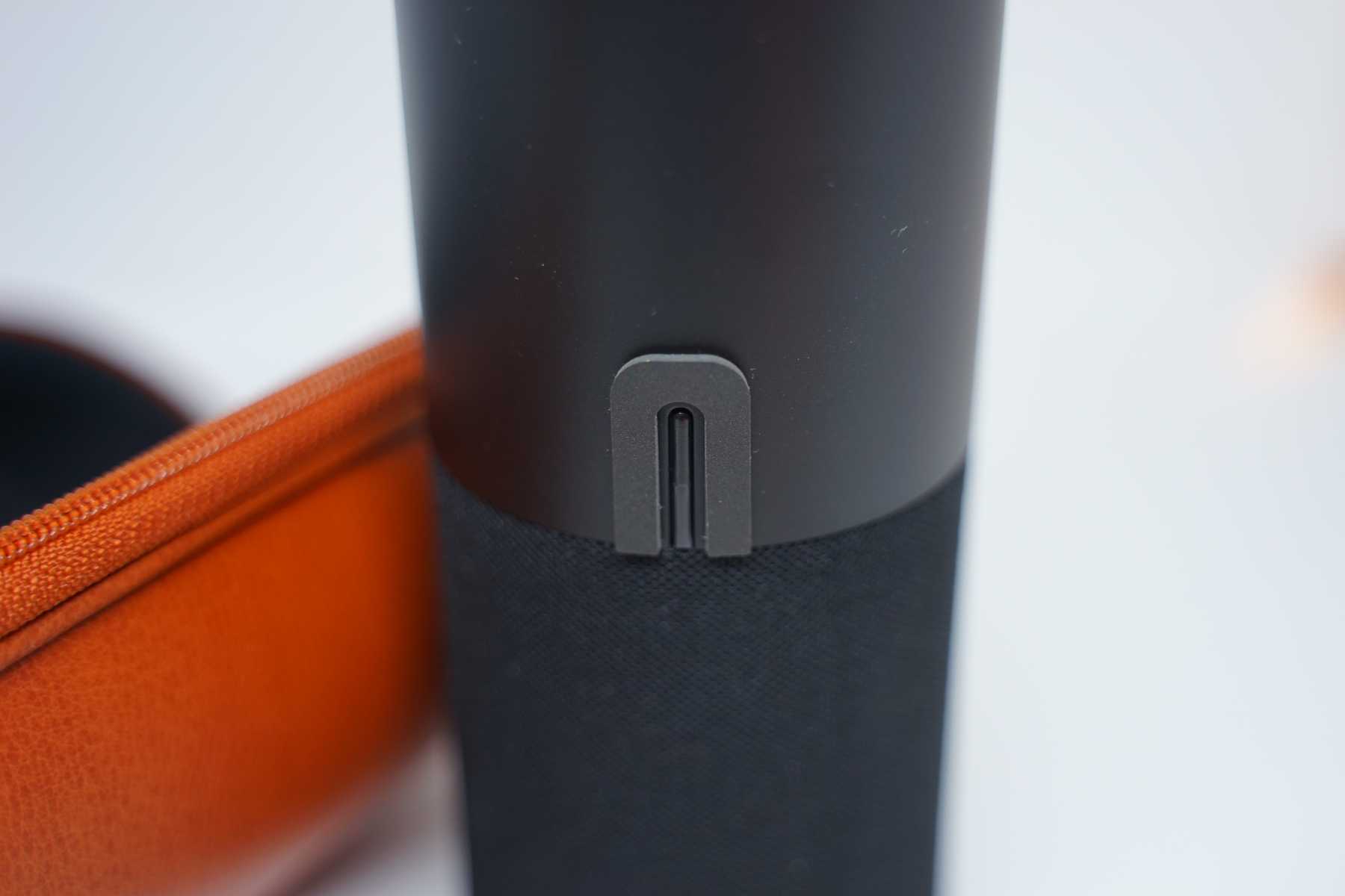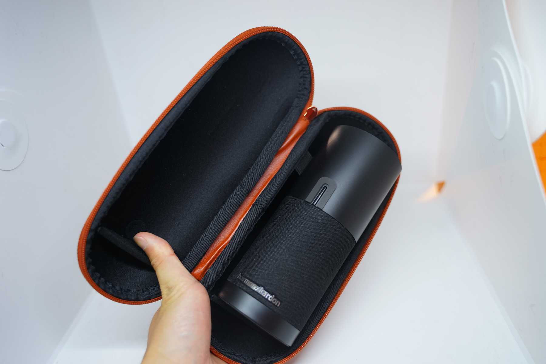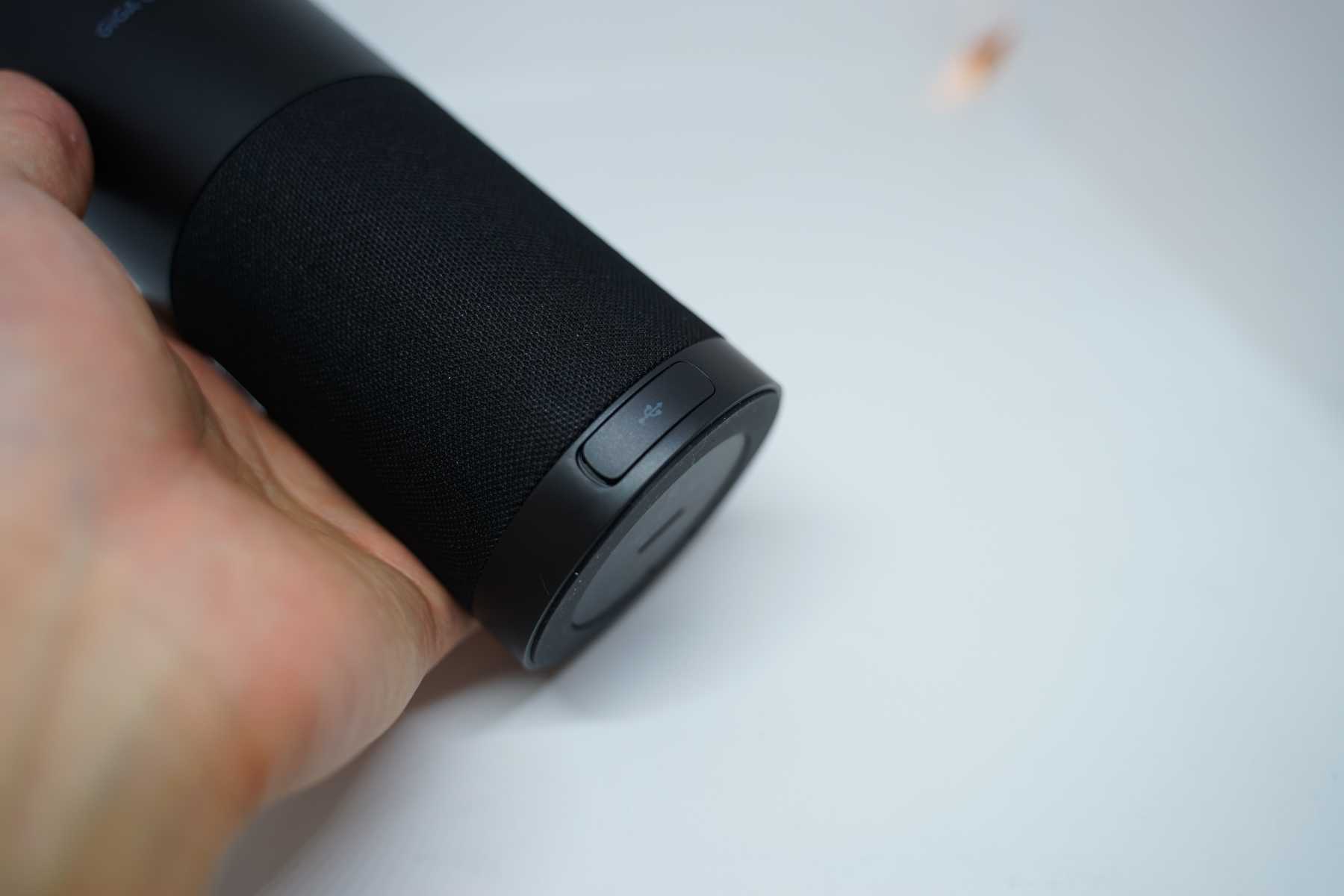 여기는 이쪽에 아마 충전 하는 곳이겠죠 이 제품 같은 경우에는 아까 그 케이스를 본 것처럼 케이스에다 넣어서 어디 캠핑 가거나 여행 갔을 때 그럴 때 그냥 가지고 가서 밖에서 음악 듣는 용도로 굉장히 좋을 거 같아요