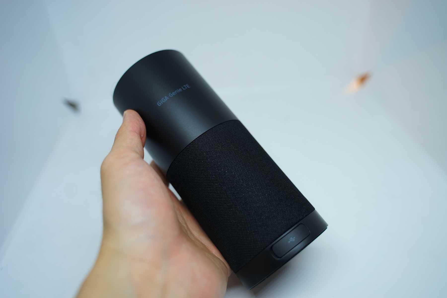 특히 이 제품이 이제 다른 스마트 스피커들하고 차별화 되는 게 뭐냐면 이게 이름이 기가지니 lte잖아요? lte 통신이 됩니다. 여기다가 유심칩을 넣으면 데이터 통신이 돼서 밖에 있을 때 언제 어디서나 음성으로 명령을 내려서 이 스마트 스피커를 사용을 할 수가 있는 거예요