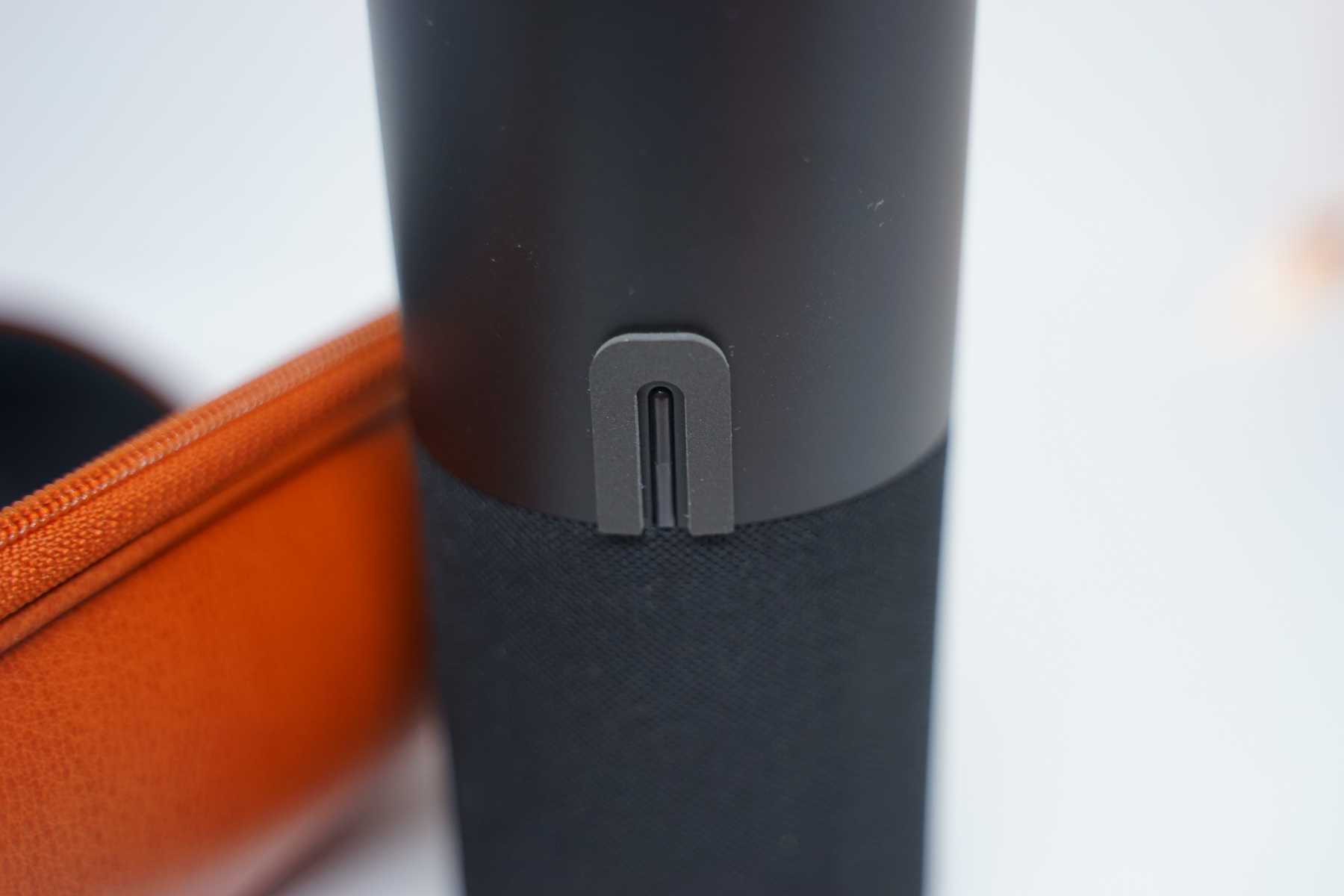 여기는 이쪽에 아마 충전 하는 곳이겠죠 이 제품 같은 경우에는 아까 그 케이스를 본 것처럼 케이스에다 넣어서 어디 캠핑 가거나 여행 갔을 때 그럴 때 그냥 가지고 가서 밖에서 음악 듣는 용도로 굉장히 좋을 거 같아요
