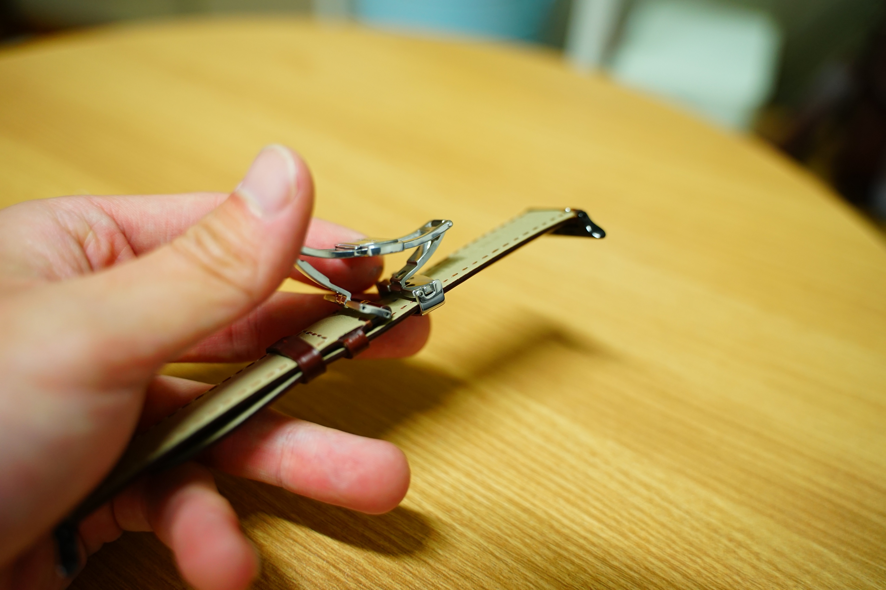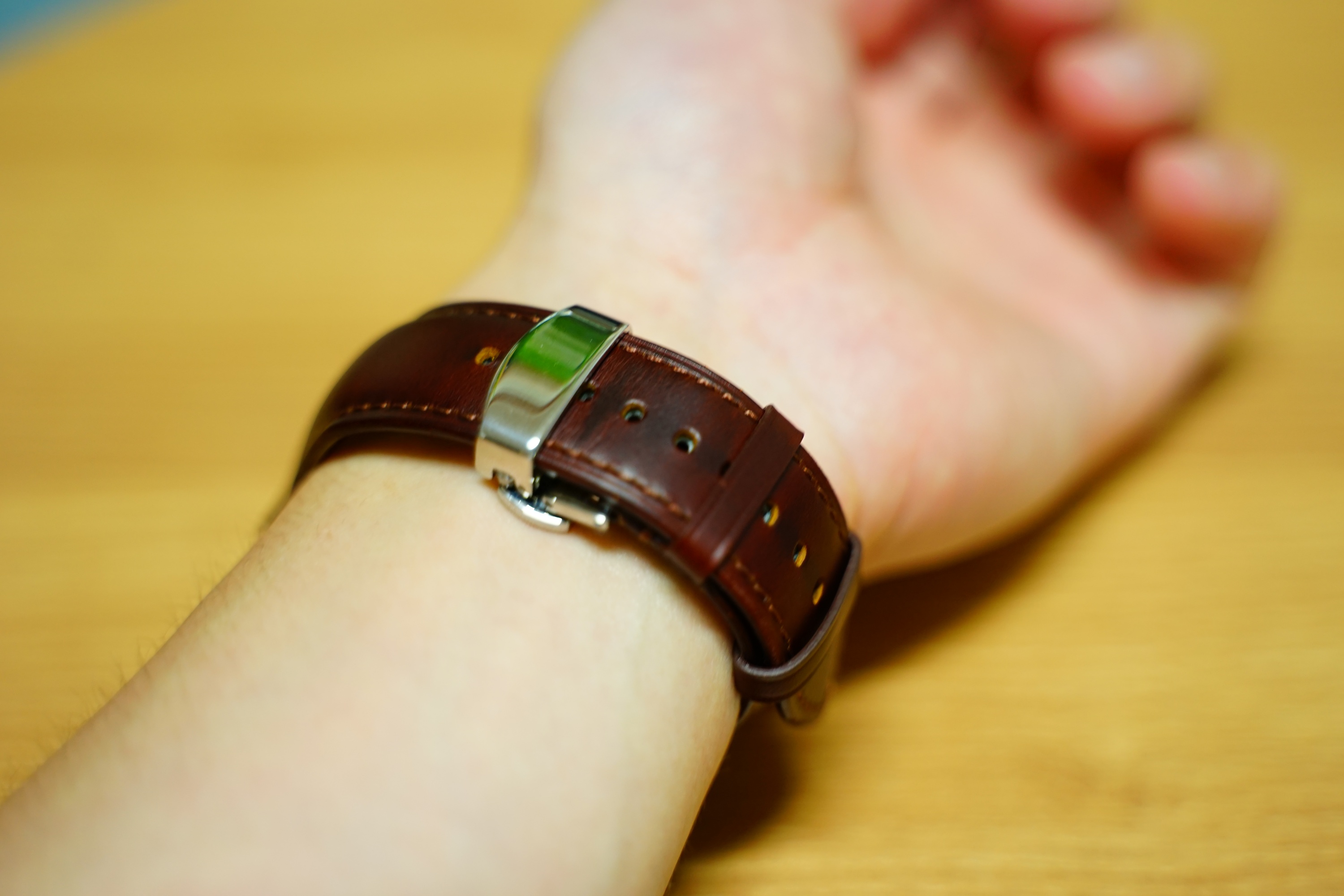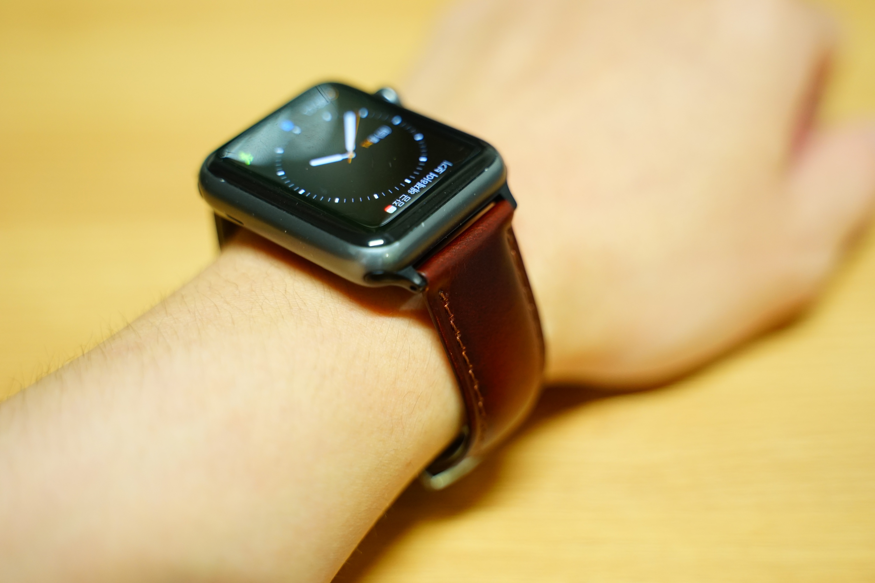 튼튼해서 좋다고 하는 게 맞을 것 같은데, 가죽이 너무 뻑뻑해서 유연성이 부족하다보니 애플워치가 들려서 자동으로 잠금 상태로 들어가는 문제가 생깁니다. 애플워치는 손목에서 빼면 자동으로 잠금상태로 들어가서 사생활을 보호해주는데, 저 밴드가 워낙 뻑뻑하다보니 손을 책상 위에 올려놓고 뭔가 작업을 하다보면 애플워치가 손목에서 들려버려서 애플워치가 인식하기에는 마치 시계를 손목에서 풀었다고 인식하고 자동으로 잠금 상태로 들어가버리는 거죠.