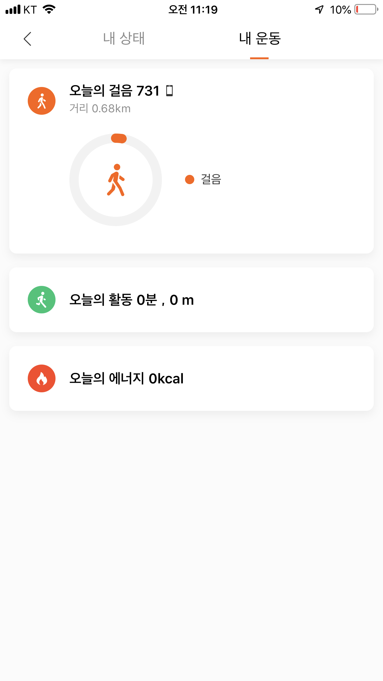 그래서 등록하고나면 저렇게 오늘 몇 걸음을 걸었는지, 걷기와 달리기, 사이클링 등의 활동을 얼마나 했는지, 에너지를 얼마나 태웠는지를 측정할 수 있습니다.