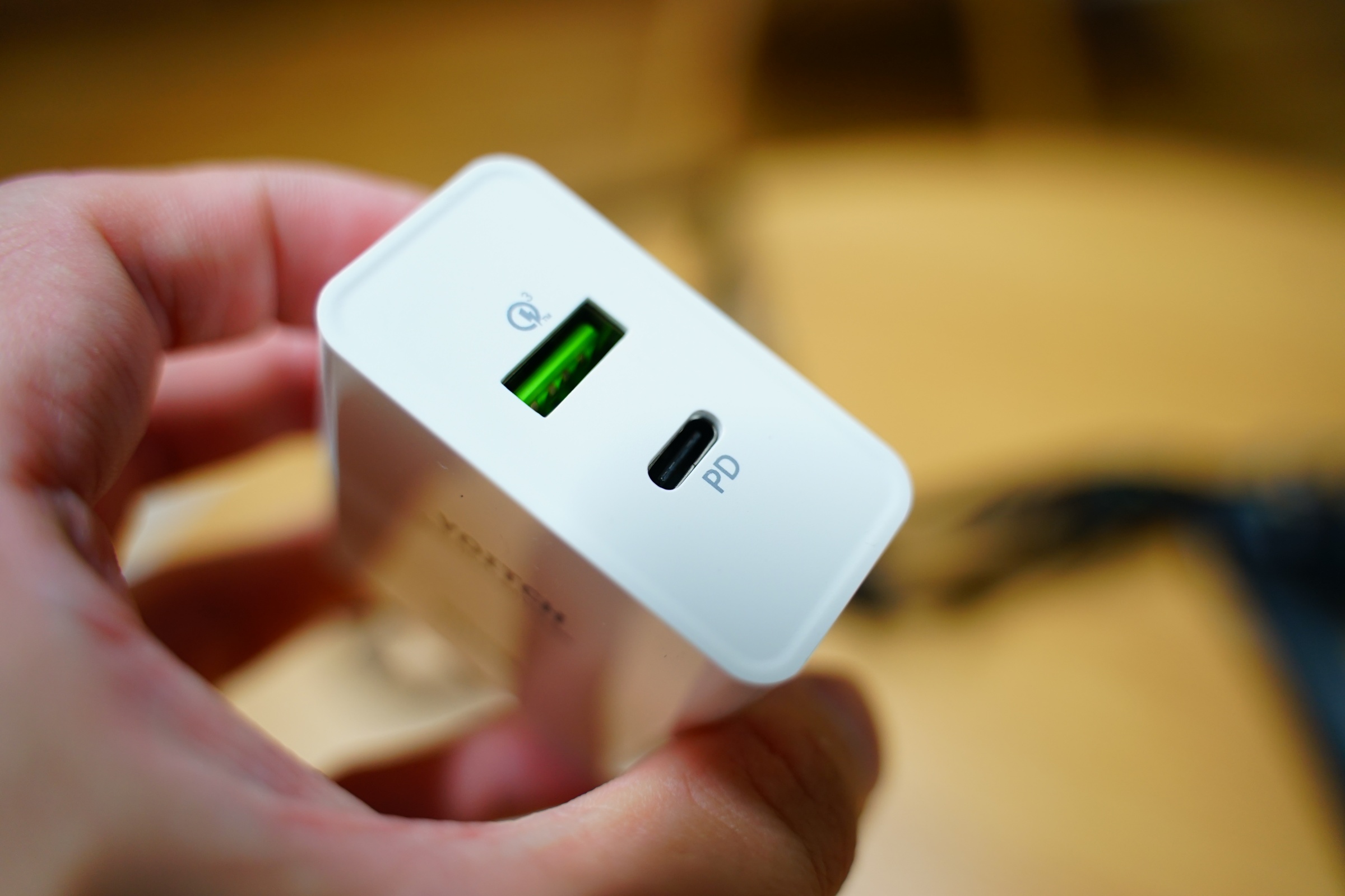 근데 제가 이 제품을 구매한 가장 큰 이유! 바로 저렇게 USB 포트와 USB-C포트가 각각 하나씩 있어서 2개의 제품을 동시에 충전할 수 있을뿐만 아니라 고속충전까지 지원한다는 점입니다.
