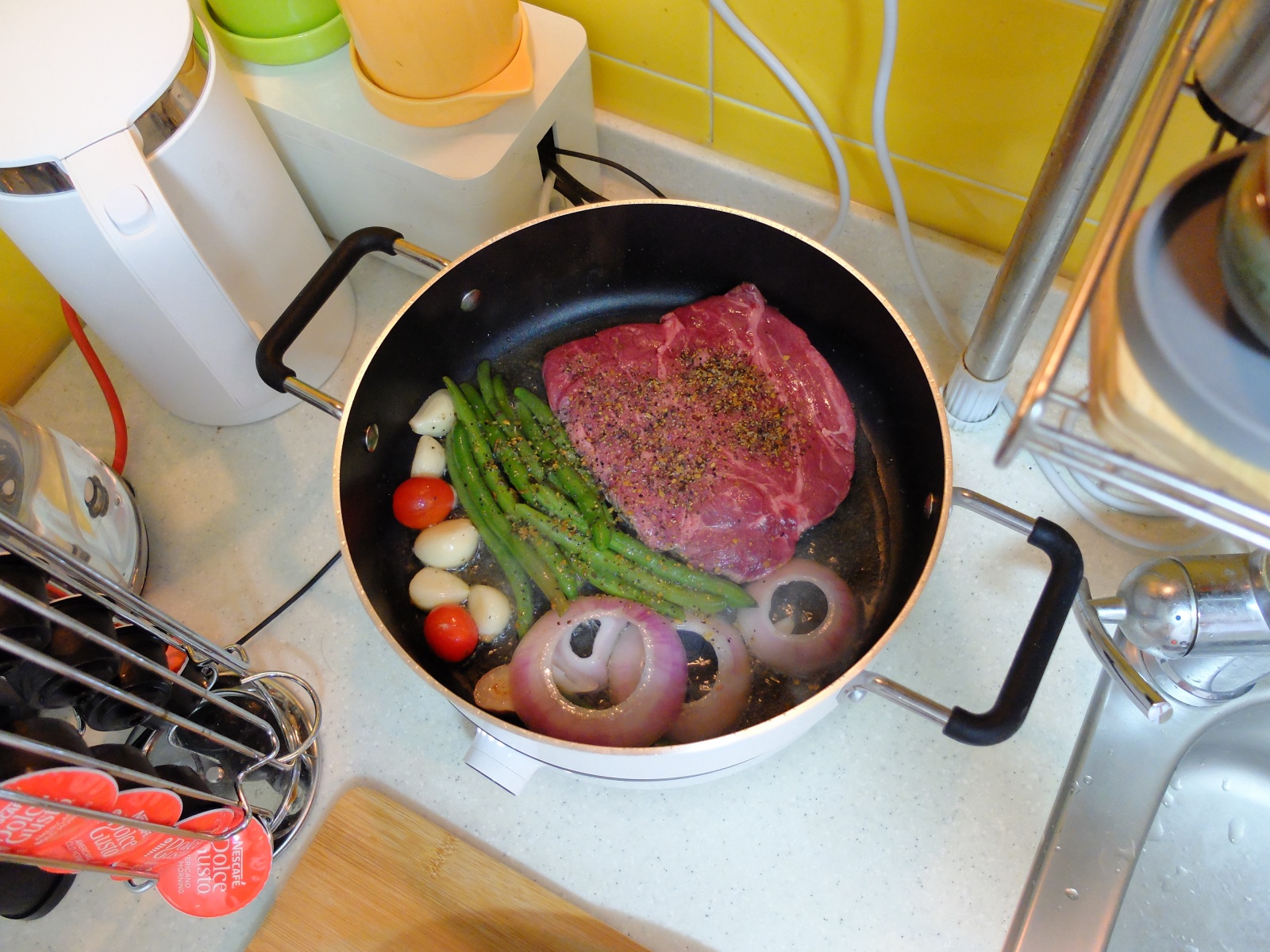 사실 집에서 혼자 스테이크 구워먹을 때 저런 식으로 야채를 이것저것 사는 게 좀 번거롭기도 하고 혼자 머기에는 양이 너무 많아서 처리 곤란인데, 이런 식으로 딱 1인분 분량으로 다같이 들어 있으니까 먹기에 정말 편한 것 같습니다.