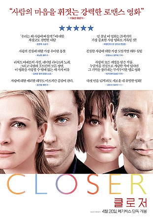 안녕하세요! 오늘은 영화 클로저를 본 후기를 간단하게 남겨보려고 합니다.