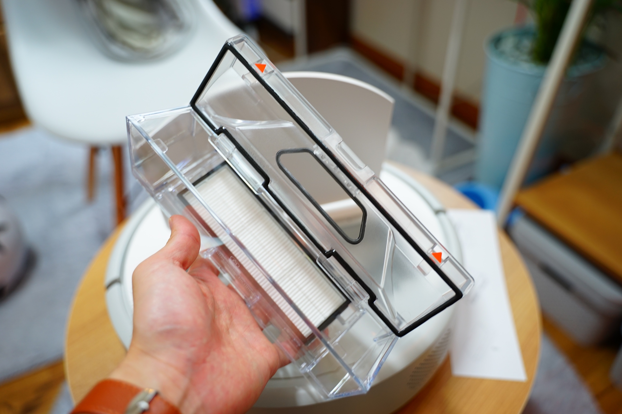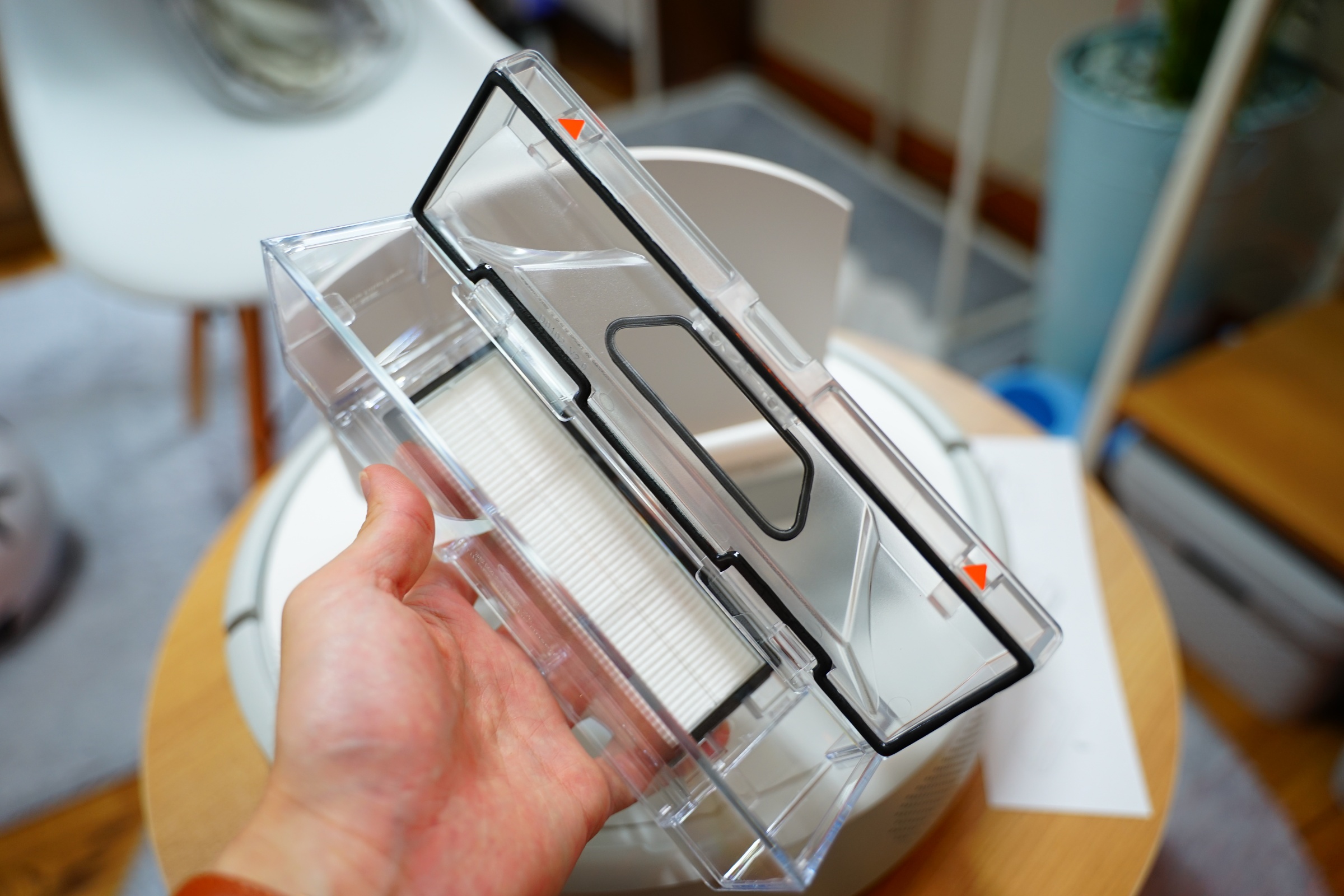 원래 사용하던 1세대 샤오미 로봇청소기는 저 센서 부분이 빨간색으로 훨씬 컸었는데...