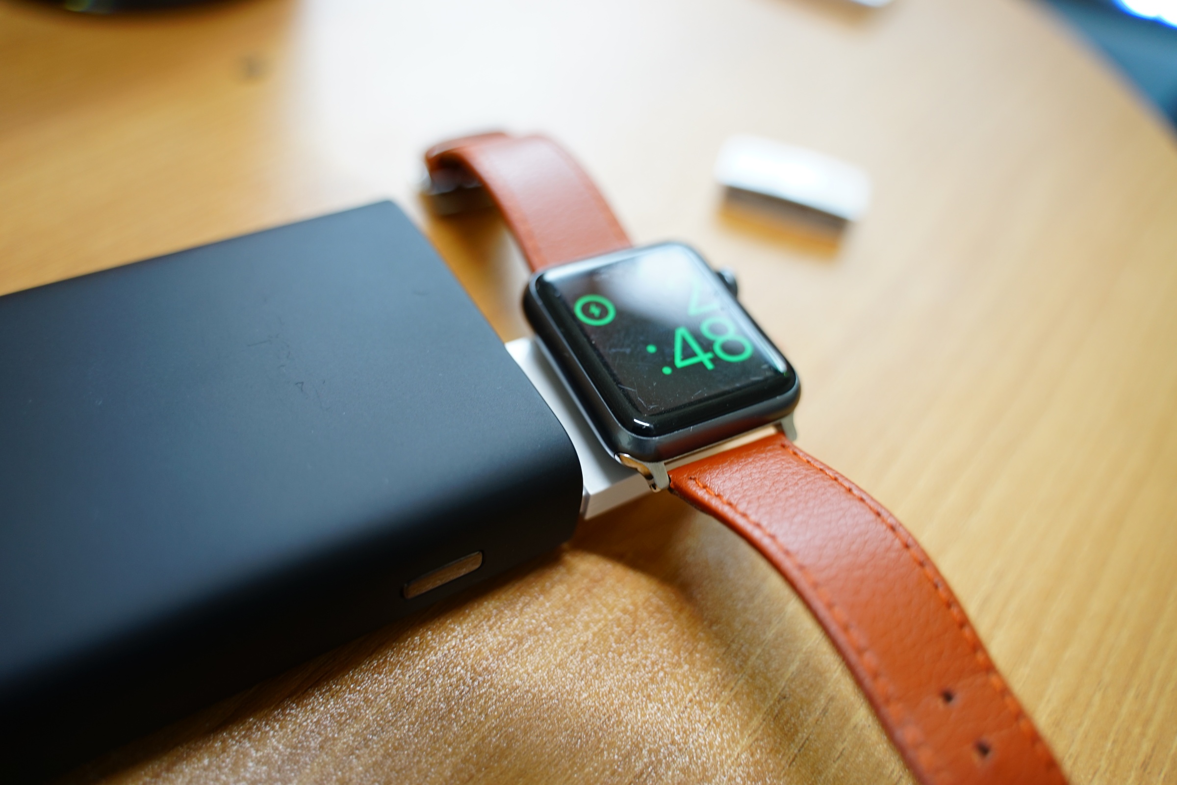 그냥 이런 식으로 보조배터리에 usb로 연결해서 애플워치를 올려두면 끝! 충전하는 방식이 정말 심플하죠?