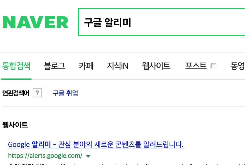 위에서 보시는 것처럼 '구글 알리미'라고 검색하시면 구글 알리미 사이트가 나오는데요!