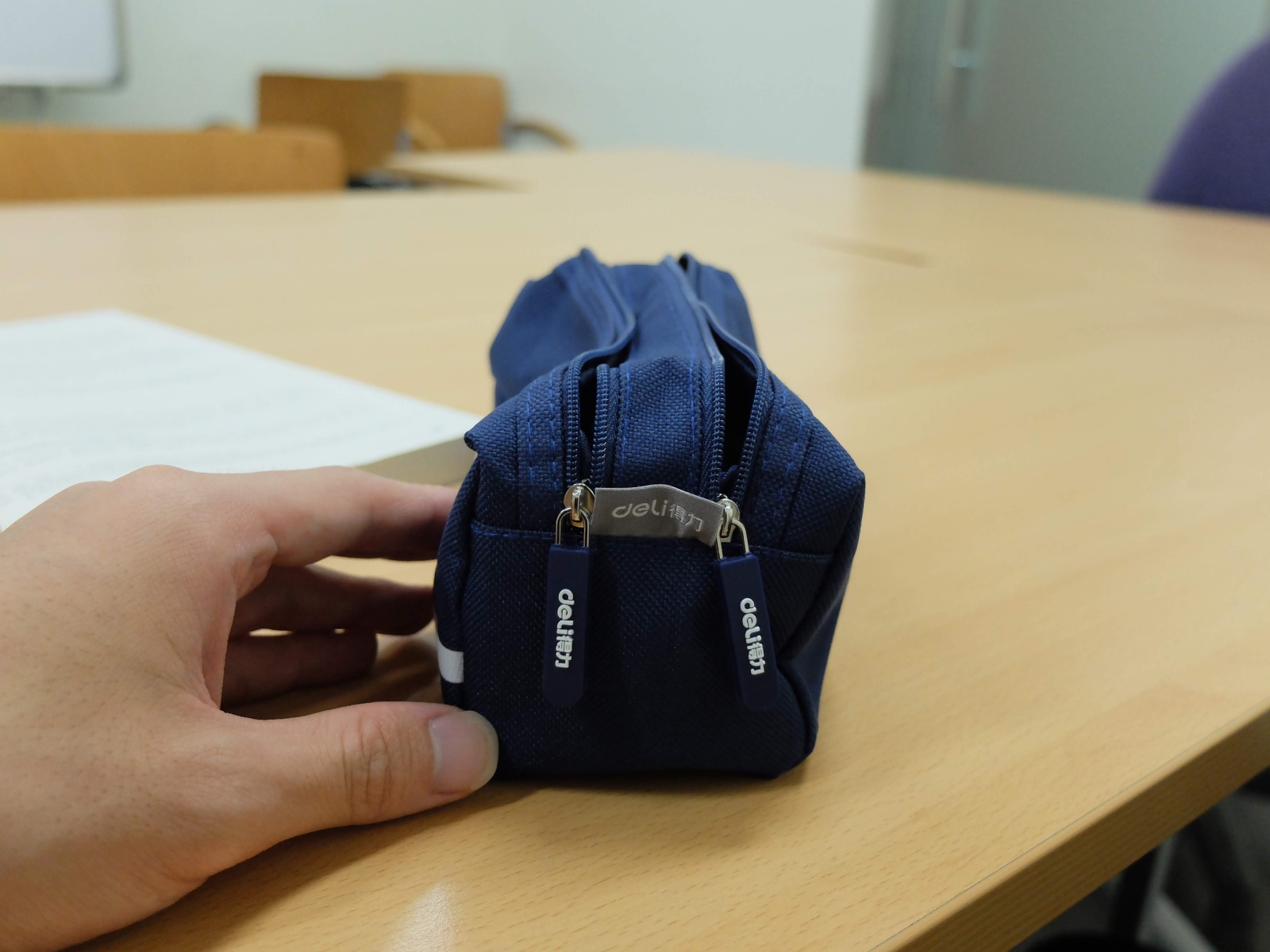 그래서 양쪽의 용도를 나름대로 나눠서 사용할 수 있습니다. 뭐 예를 들어서 한쪽에는 필기구만 넣고 한쪽에는 소소한 화장품들을 넣는다든지, 아니면 한쪽에는 만년필만 넣고 다른 쪽에는 다른 필기구들을 넣는다든지 하는 식으로 자기 용도에 따라서 구분해서 사용할 수 있습니다.