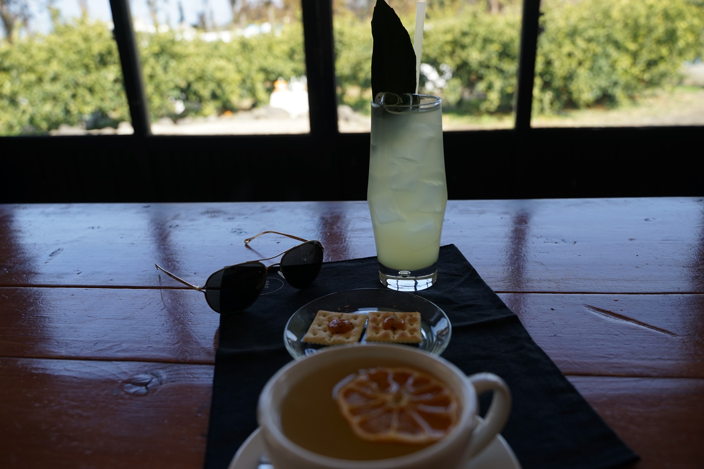저런 식으로 따뜻한 감귤차에 말린 감귤을 얹어주는데 달짝찌근하니 맛있더라구요. 비쥬얼도 사진 찍기에 너무 괜찮았습니다. 오히려 밖에보다 이 카페에서 사진 찍는 게 정말 훨씬 이뻐요.