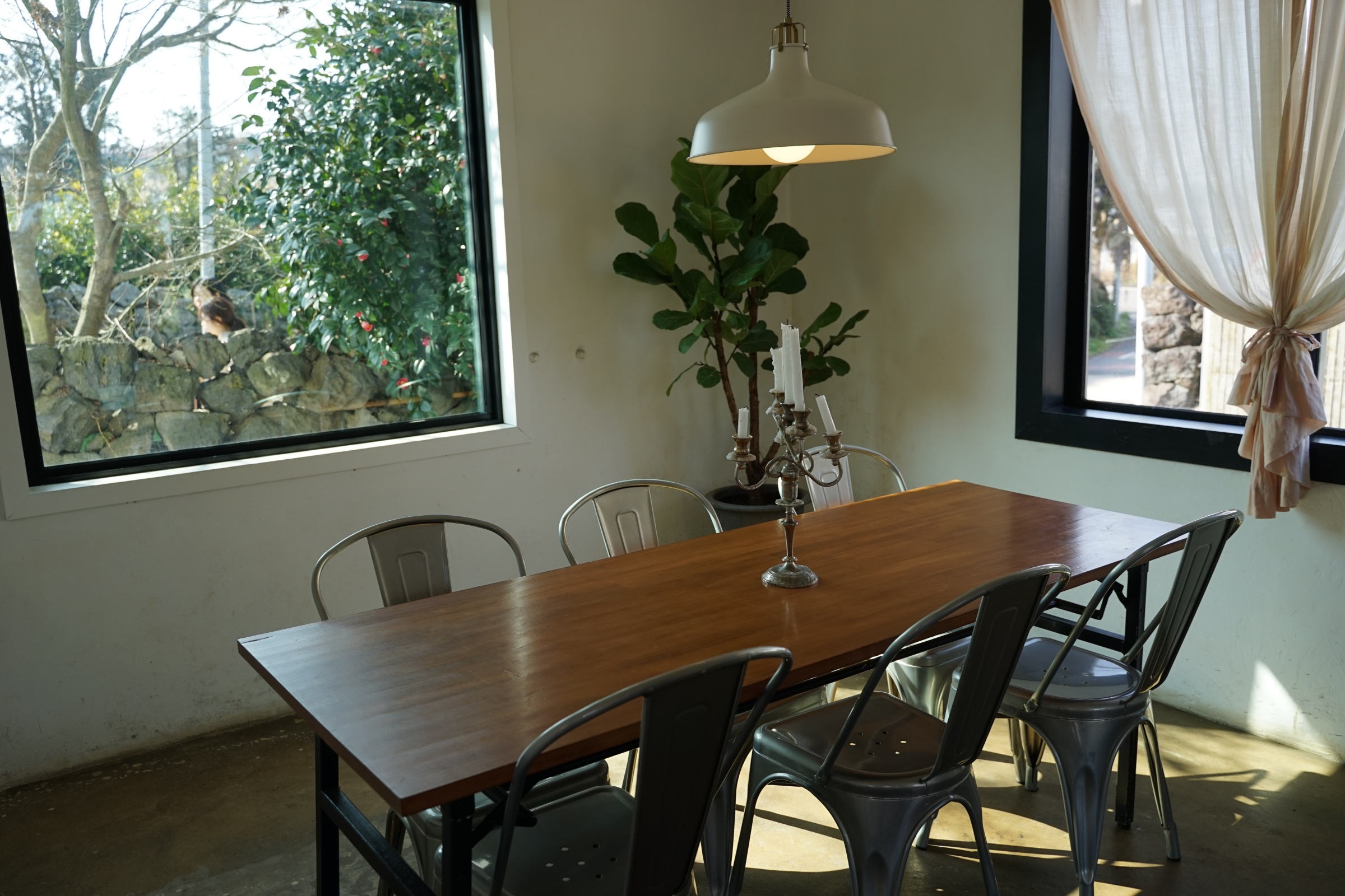 가운데 이렇게 긴~~~ 테이블이 있습니다. 사진의 왼편에 보면 창가쪽으로도 나름 프라이빗한 공간에 테이블이 하나씩 있습니다.