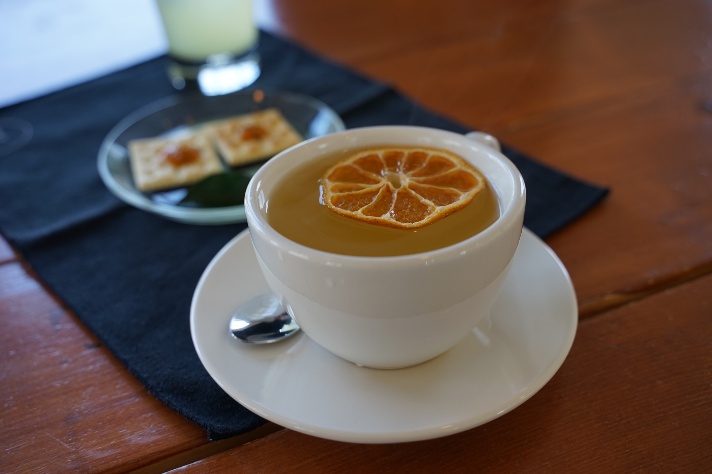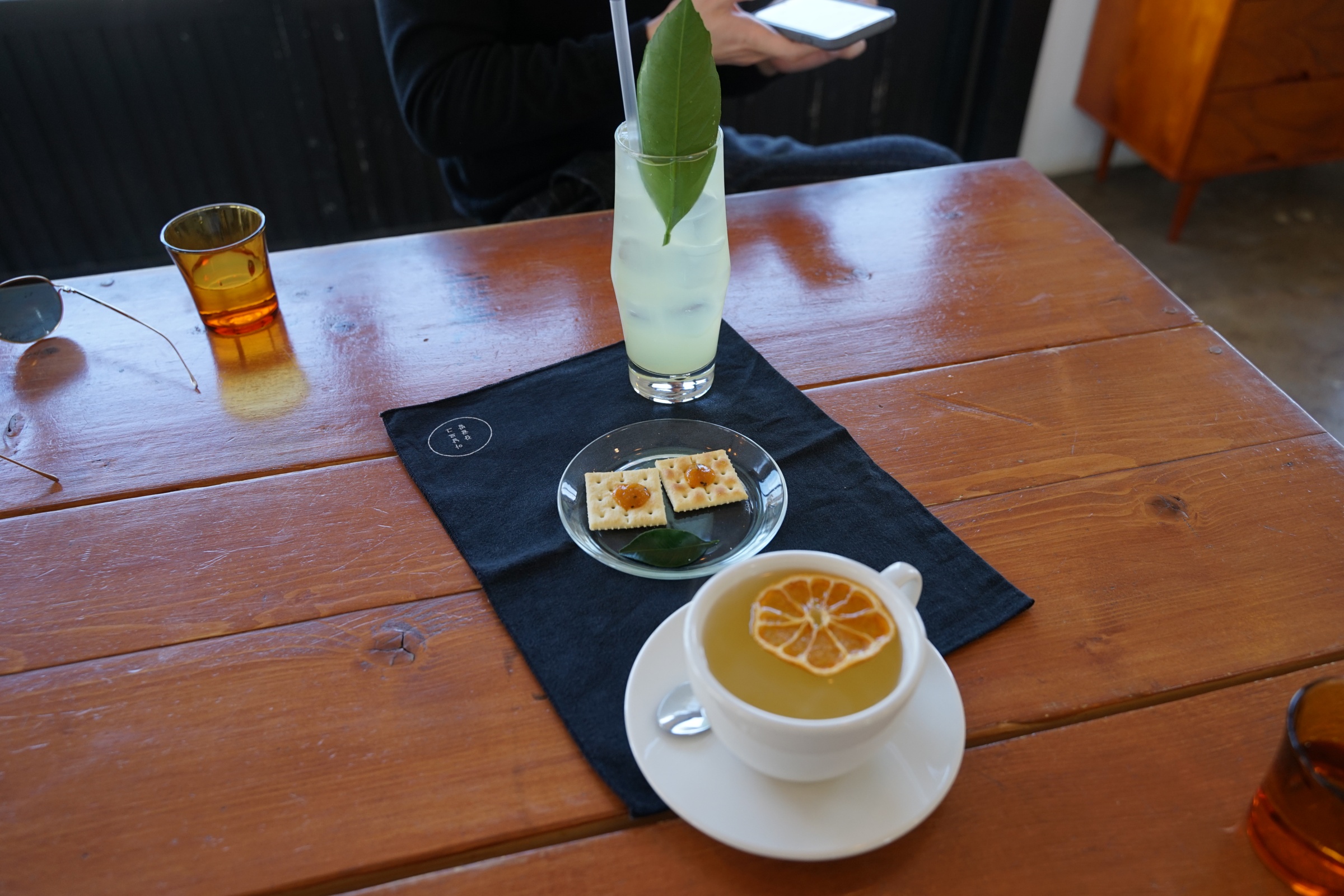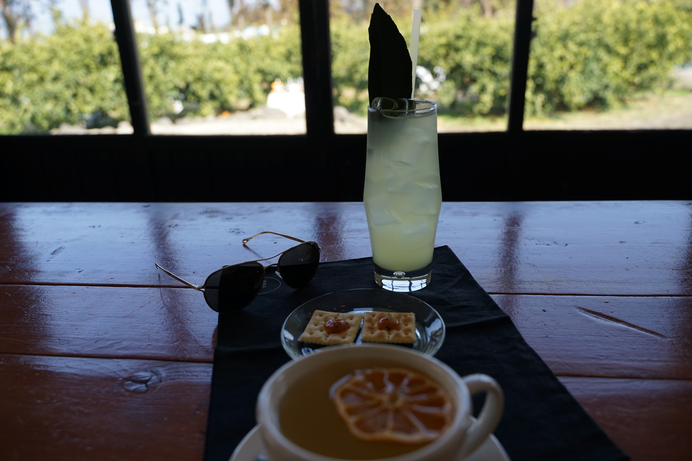 저런 식으로 따뜻한 감귤차에 말린 감귤을 얹어주는데 달짝찌근하니 맛있더라구요. 비쥬얼도 사진 찍기에 너무 괜찮았습니다. 오히려 밖에보다 이 카페에서 사진 찍는 게 정말 훨씬 이뻐요.