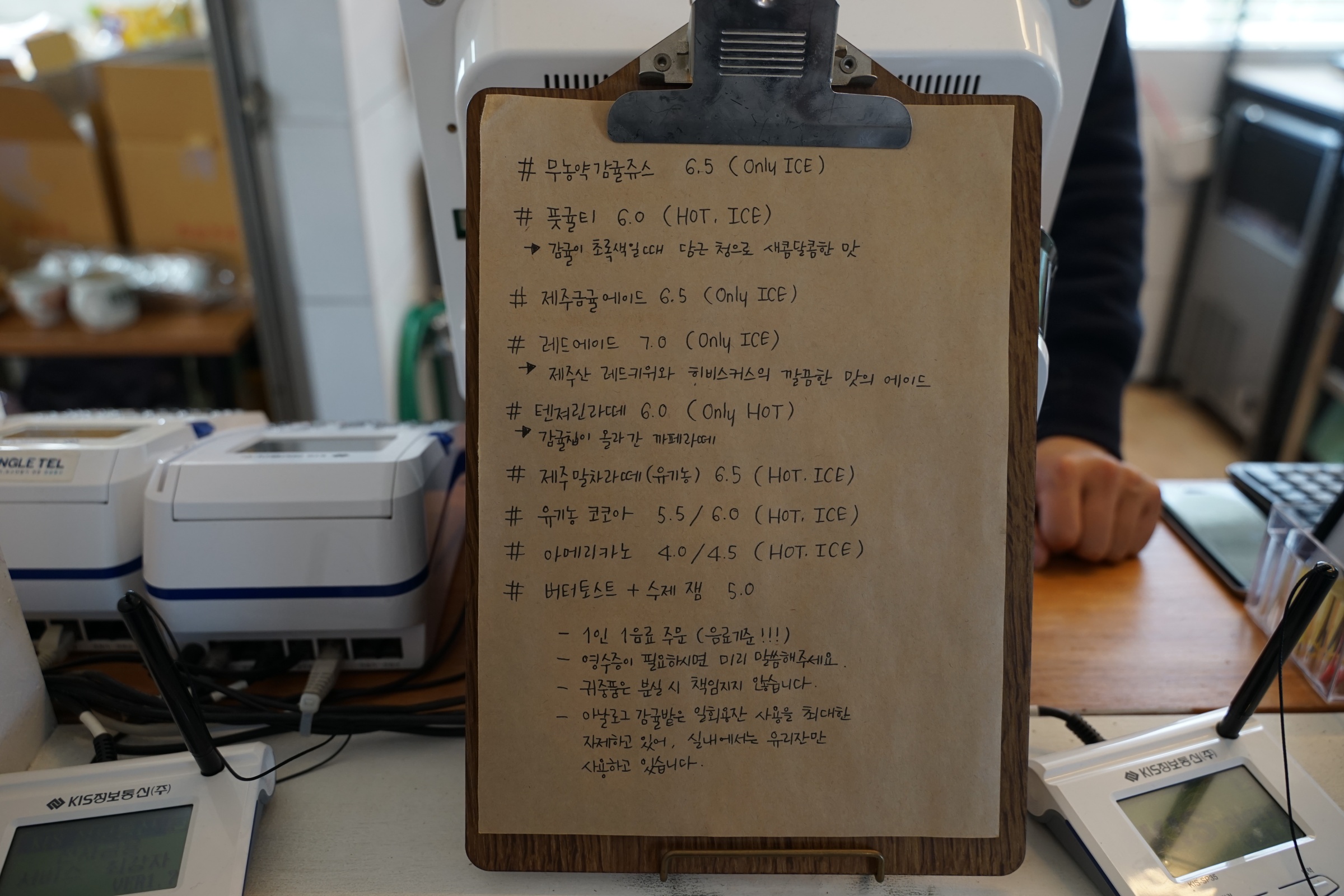 친구가 주문한 건 청포도에이드인가 그랬던 것 같고, 저는 감귤차를 주문했습니다.