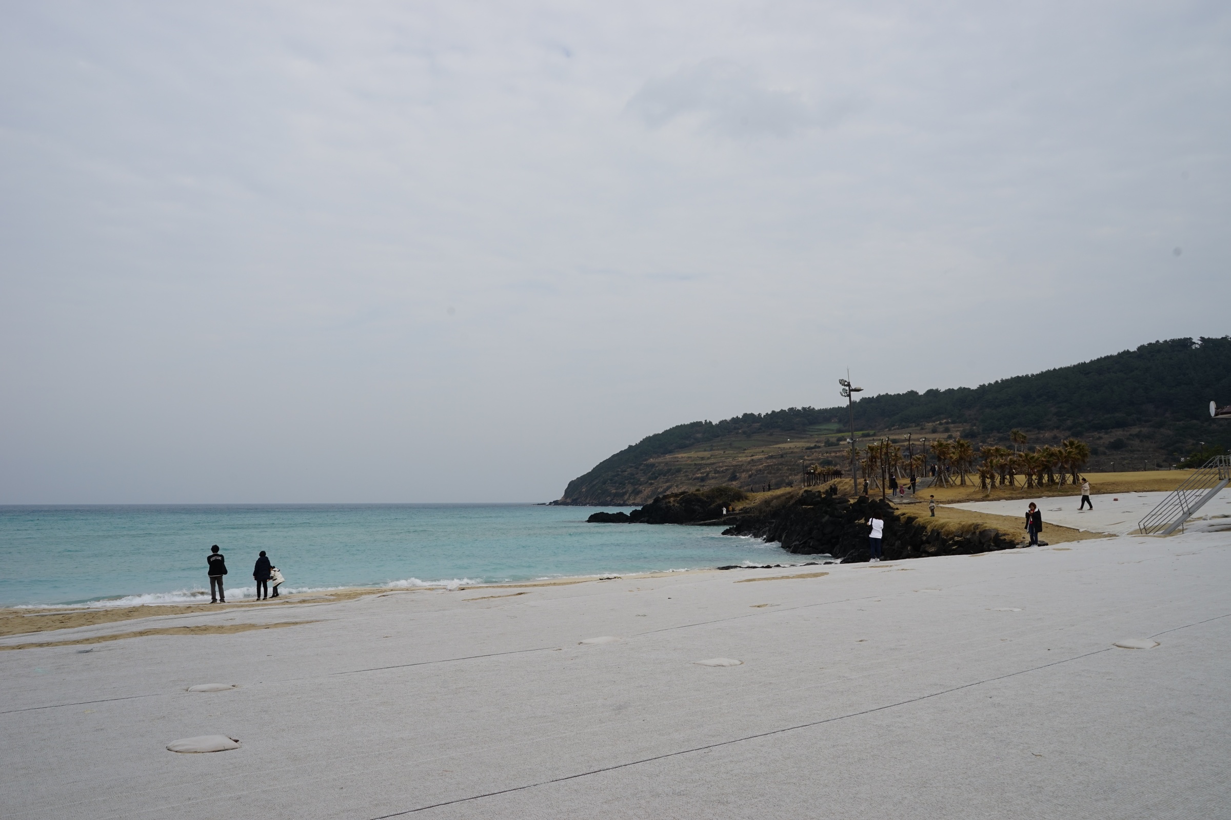 아마도 해수욕장 모래 유실을 막기 위해 위에 이런 비닐 같은 걸 덮어둔 것 같네요.
