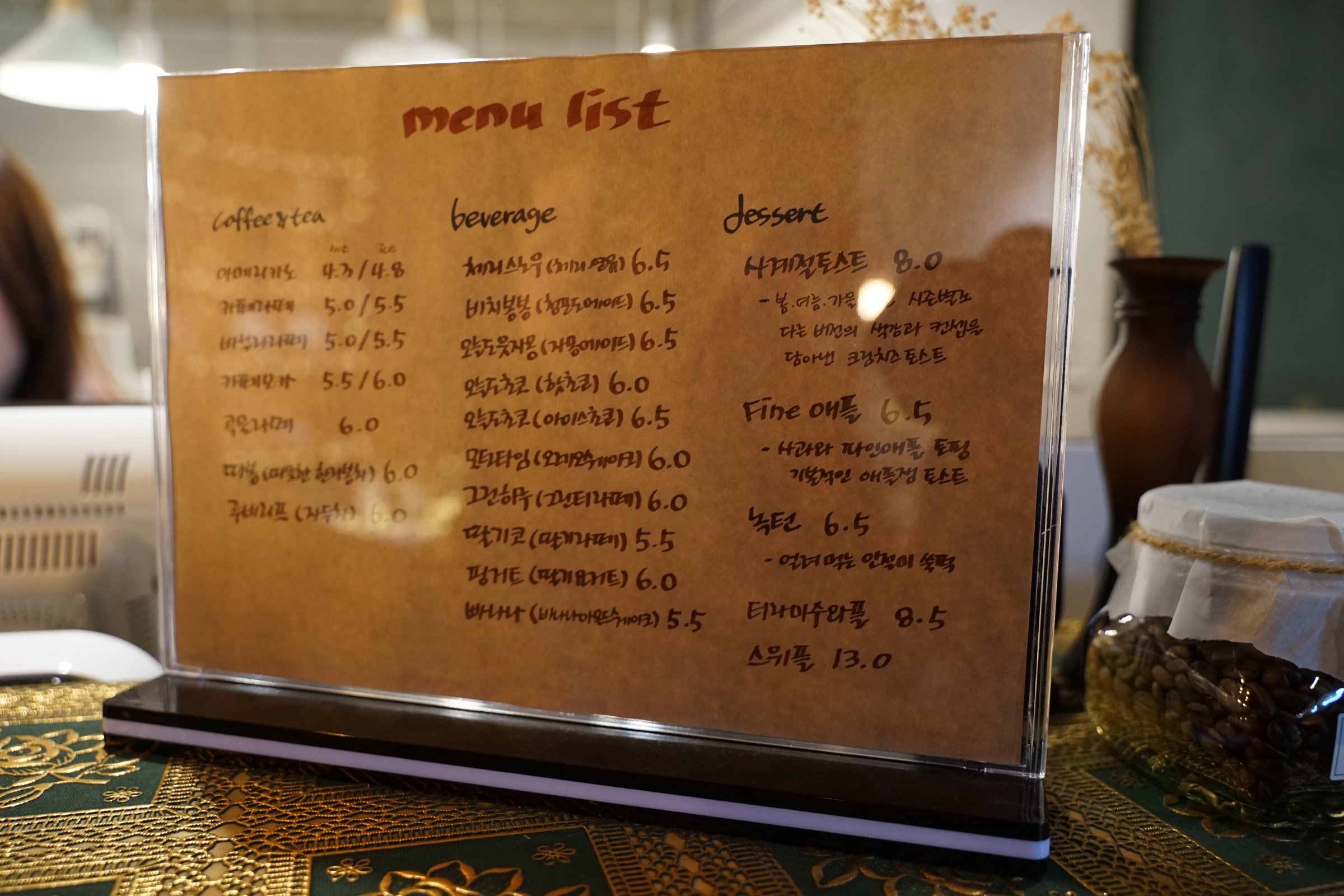 메뉴판입니다. 음료 한잔 가격은 대략 6천원에서 7천원 정도라고 생각하시면 될 것 같습니다.