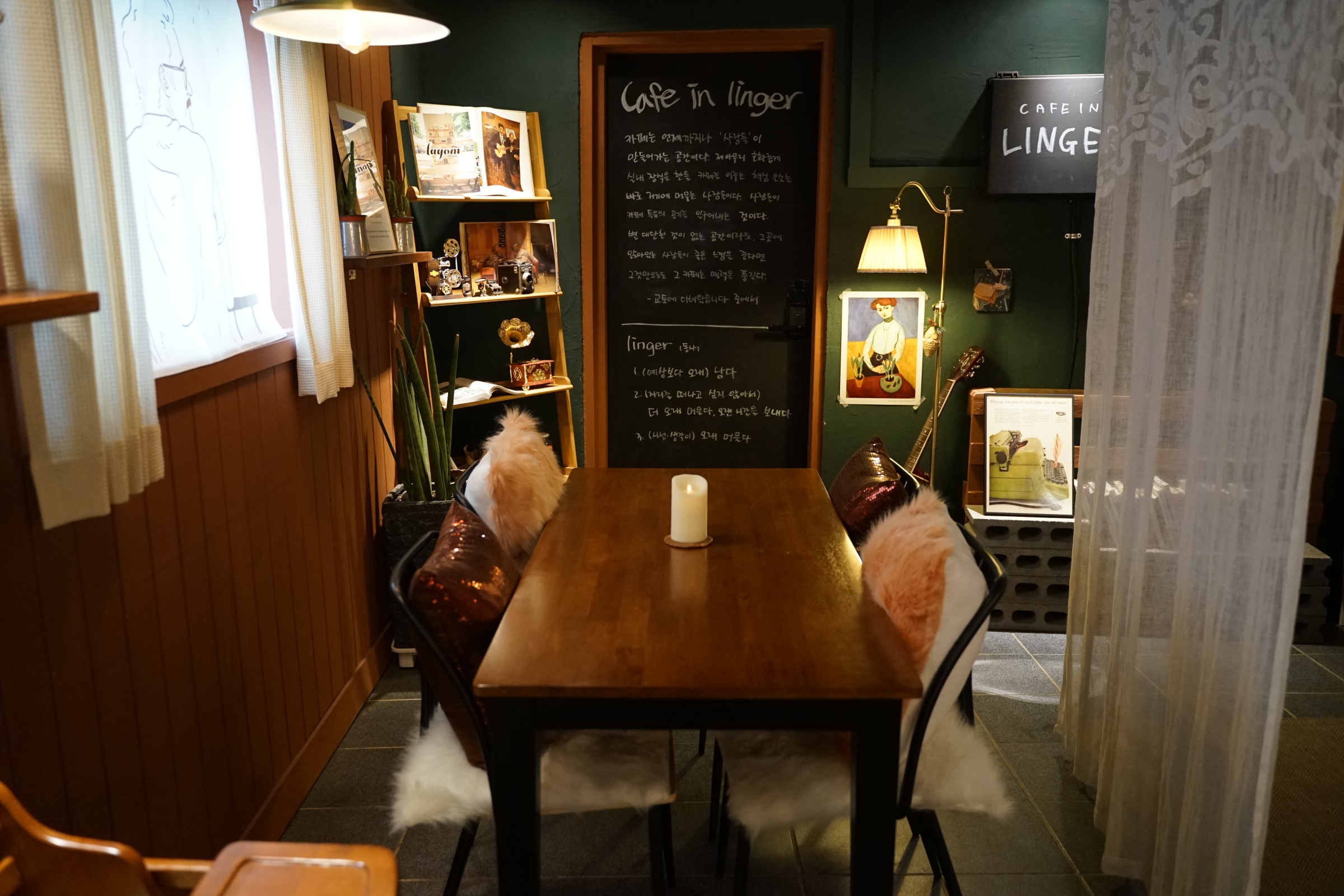 뭔가 ... 나만의 비밀 아지트에 들어온 느낌? 가게가 엄청 큰 건 아니었지만 사람도 별로 없고, 자리 하나 하나마다 개성이 있어서 좋았어요.