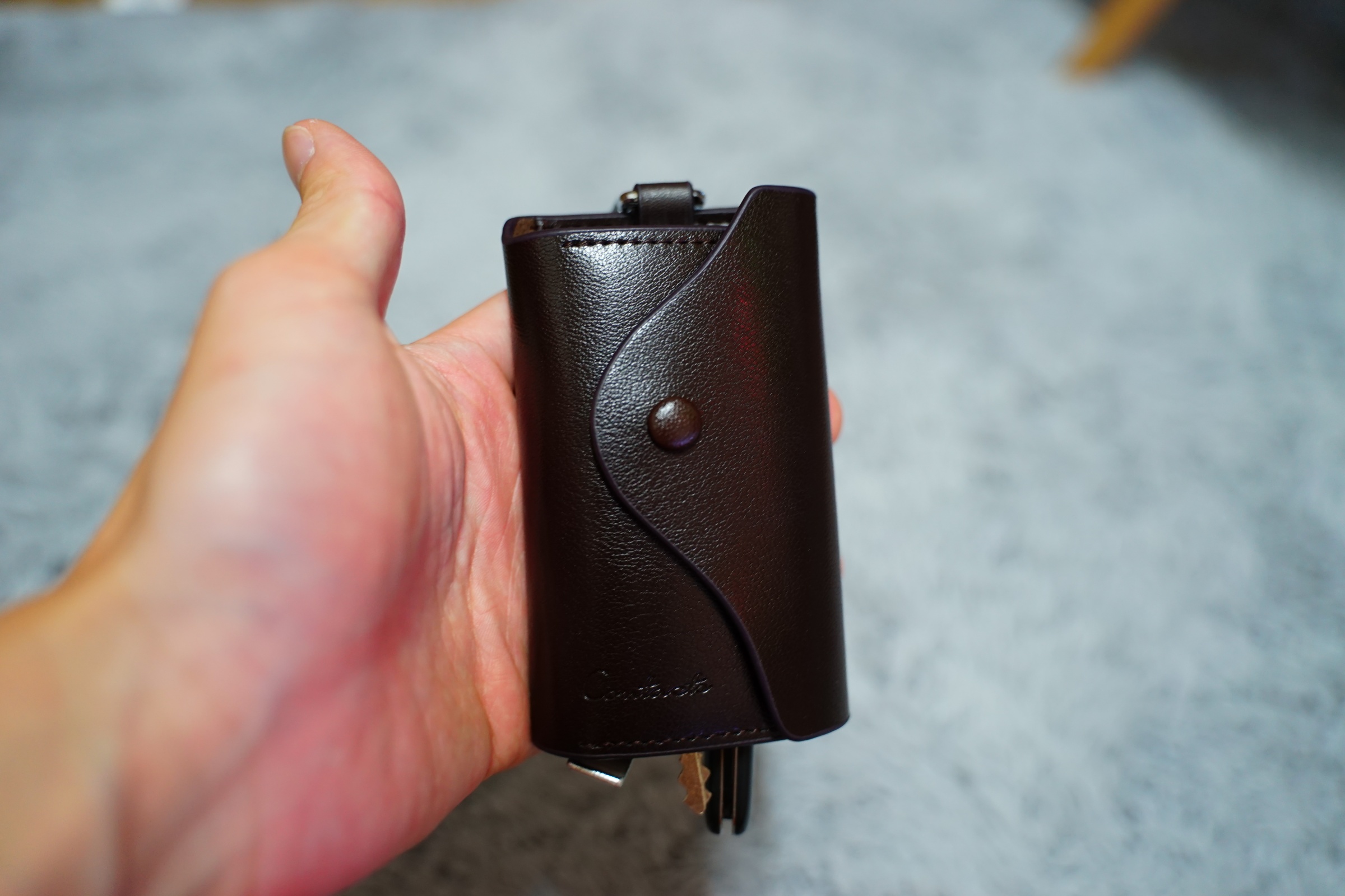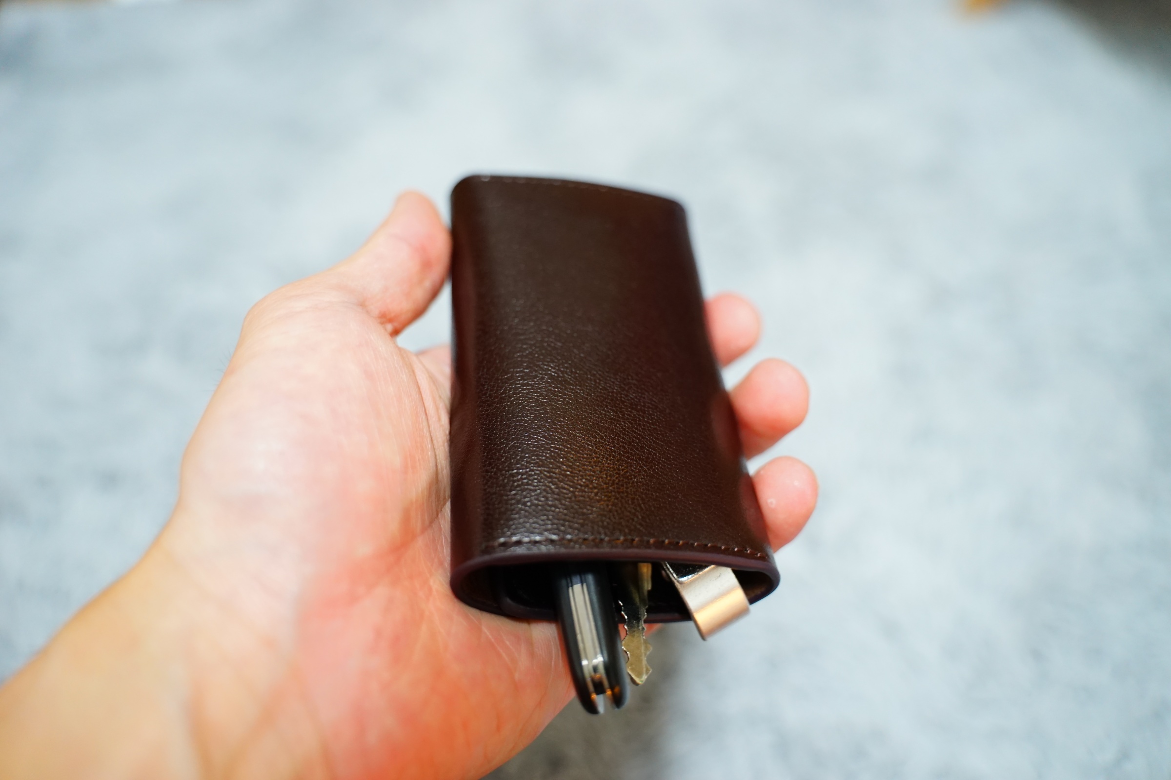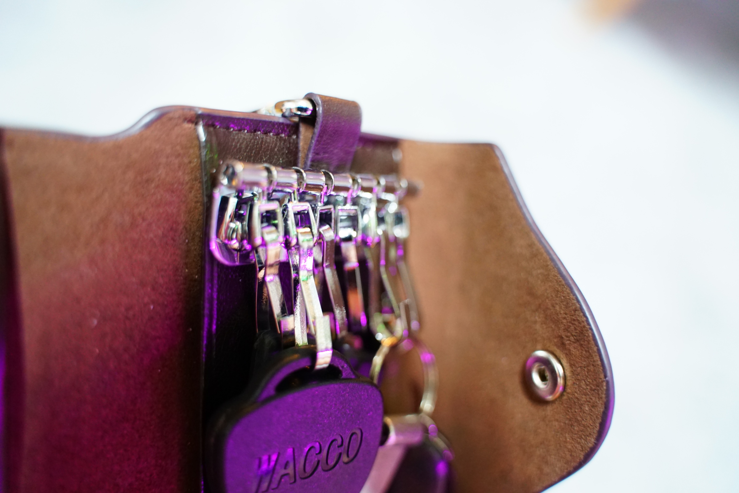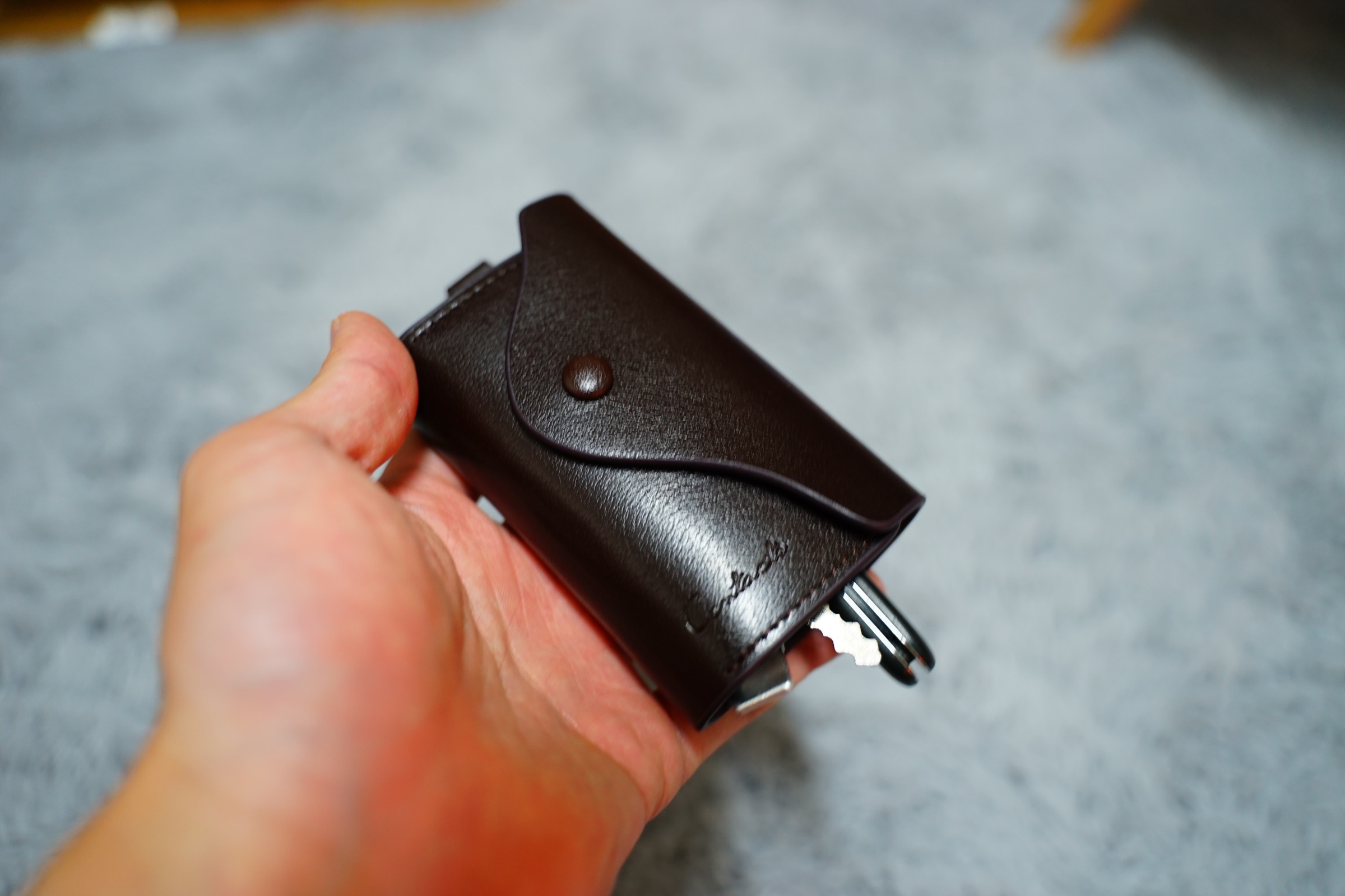 그리고 이렇게 열쇠 뒤쪽과 왼쪽에 포켓이 있어서 카드도 함께 수납할 수 있습니다 .