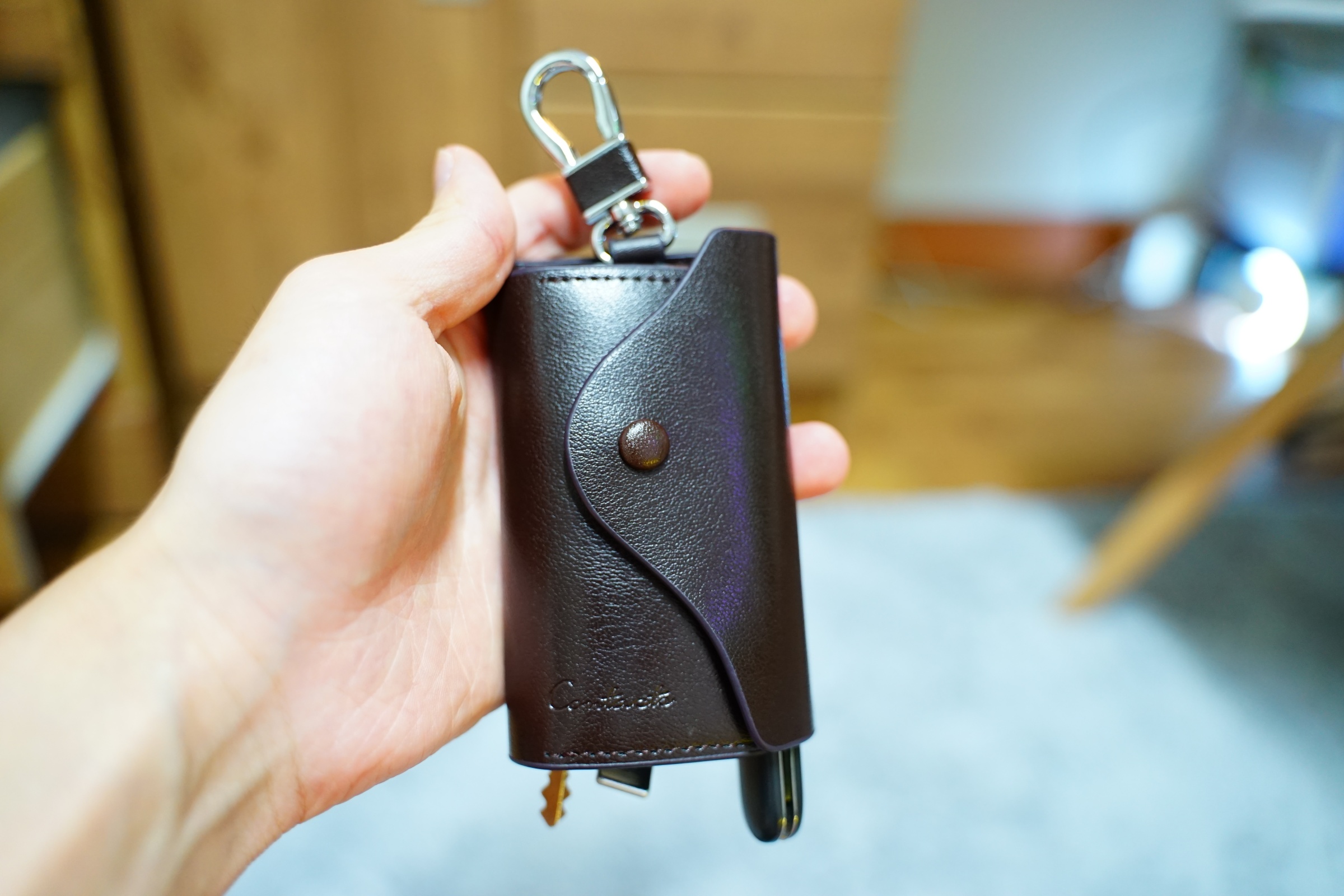이게 생각보다 크기가 크면서도 또 그렇게 큰 건 아니라서 만약 여기에 차키까지 추가로 달려고 하시는 분은 차키는 안 들어갈 것 같습니다.
