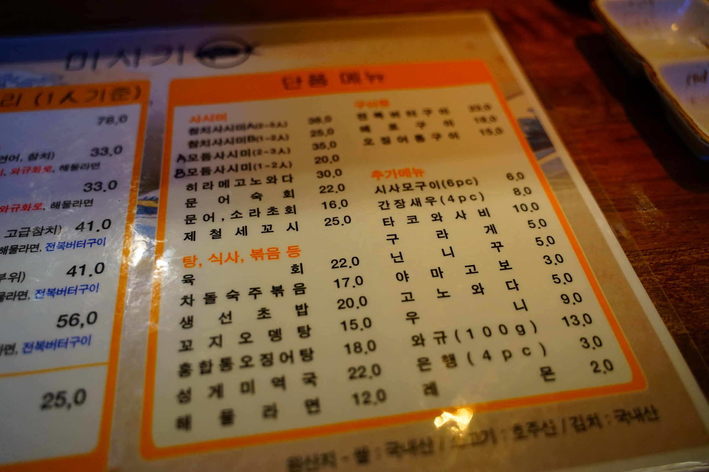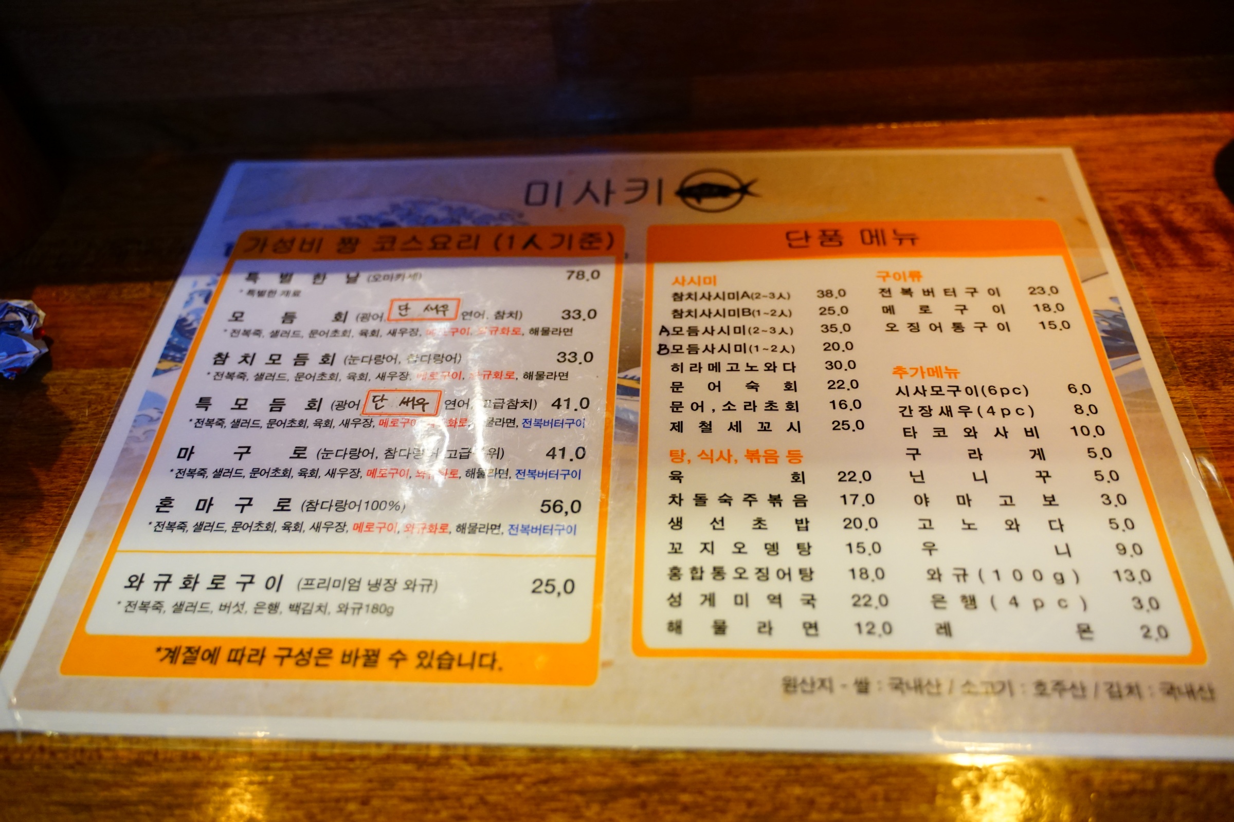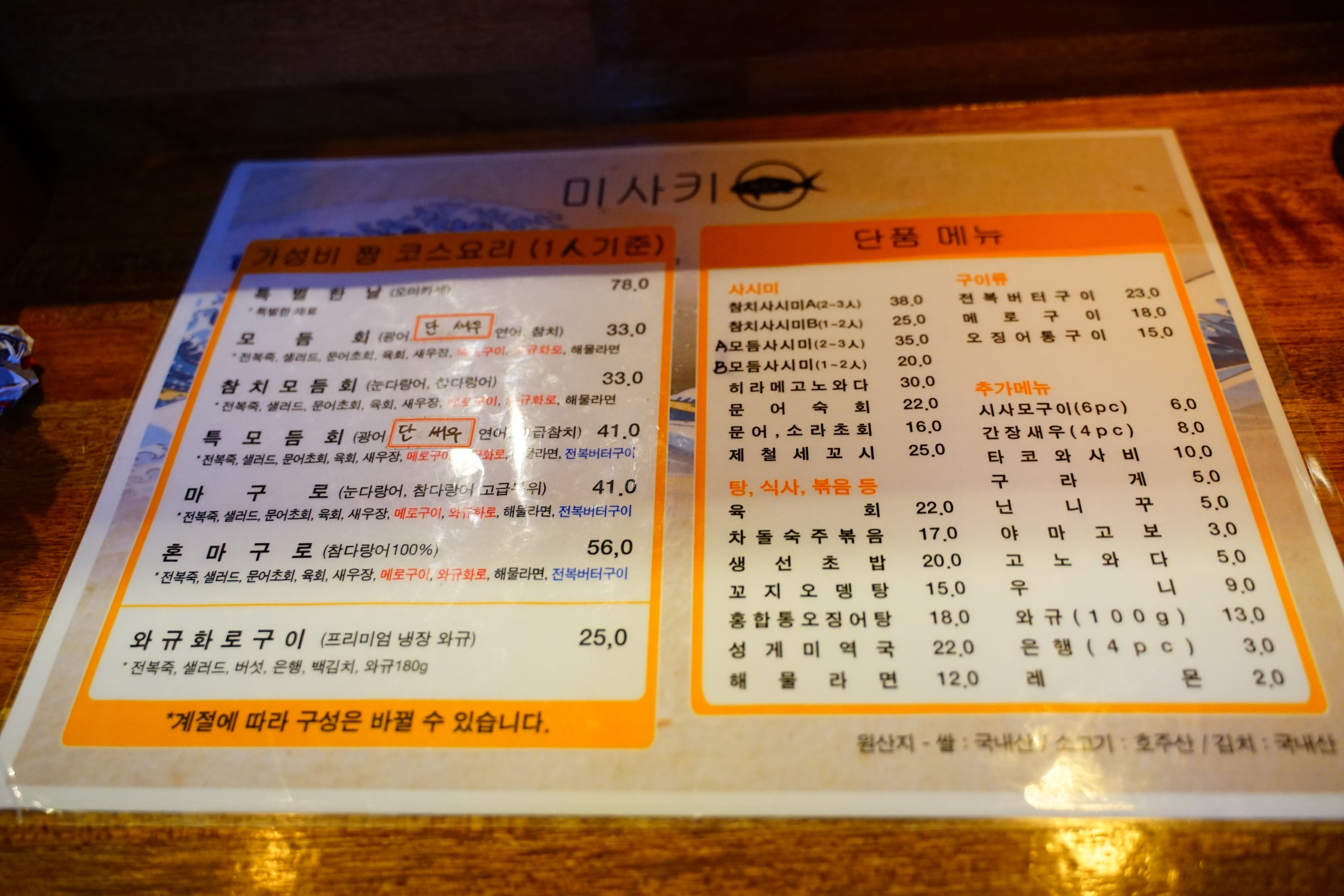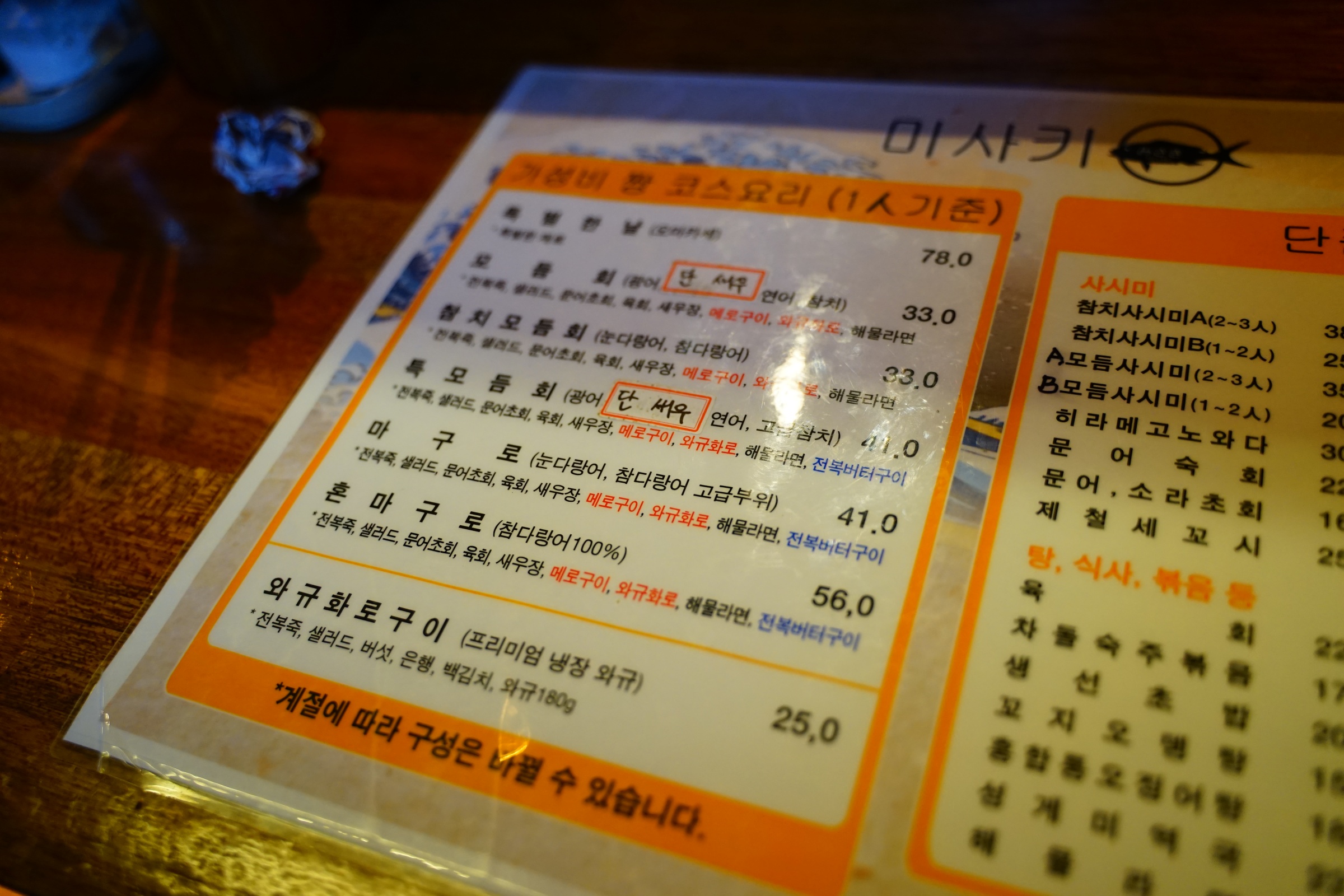메뉴판 참고하세요! 저희는 41,000원짜리 마구로로 각자 시켰습니다.