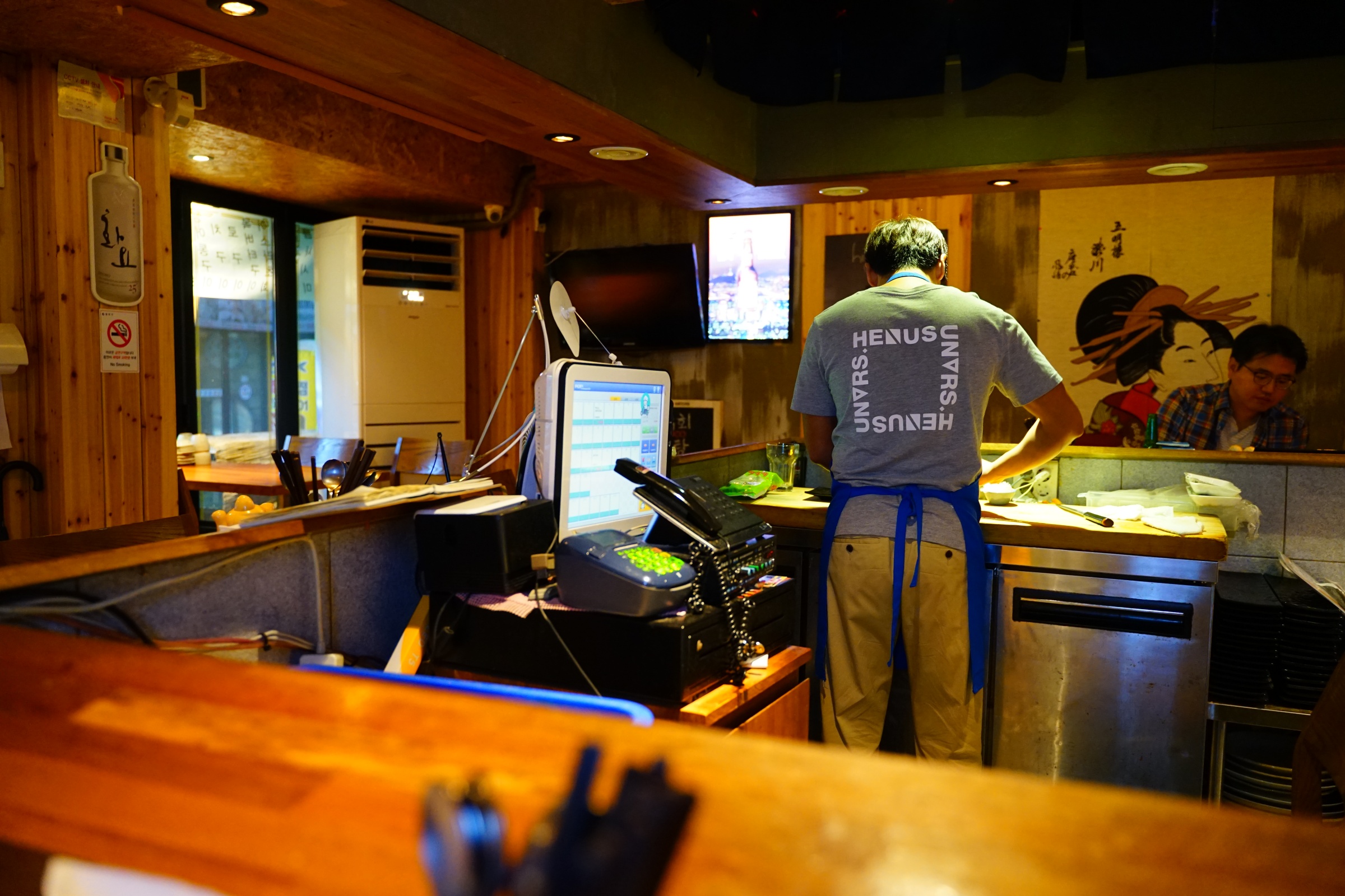 셰프님 바로 앞에 자리잡고 앉았습니다.