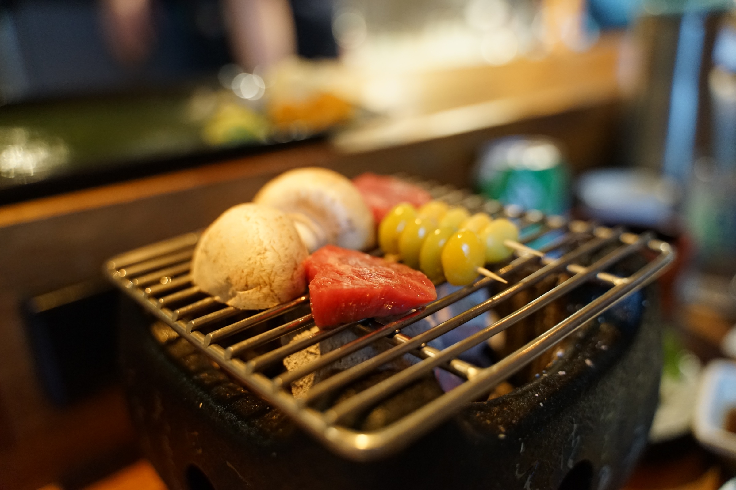 마지막에는 이렇게 화로에 은행이랑 소고기를 구워주십니다.