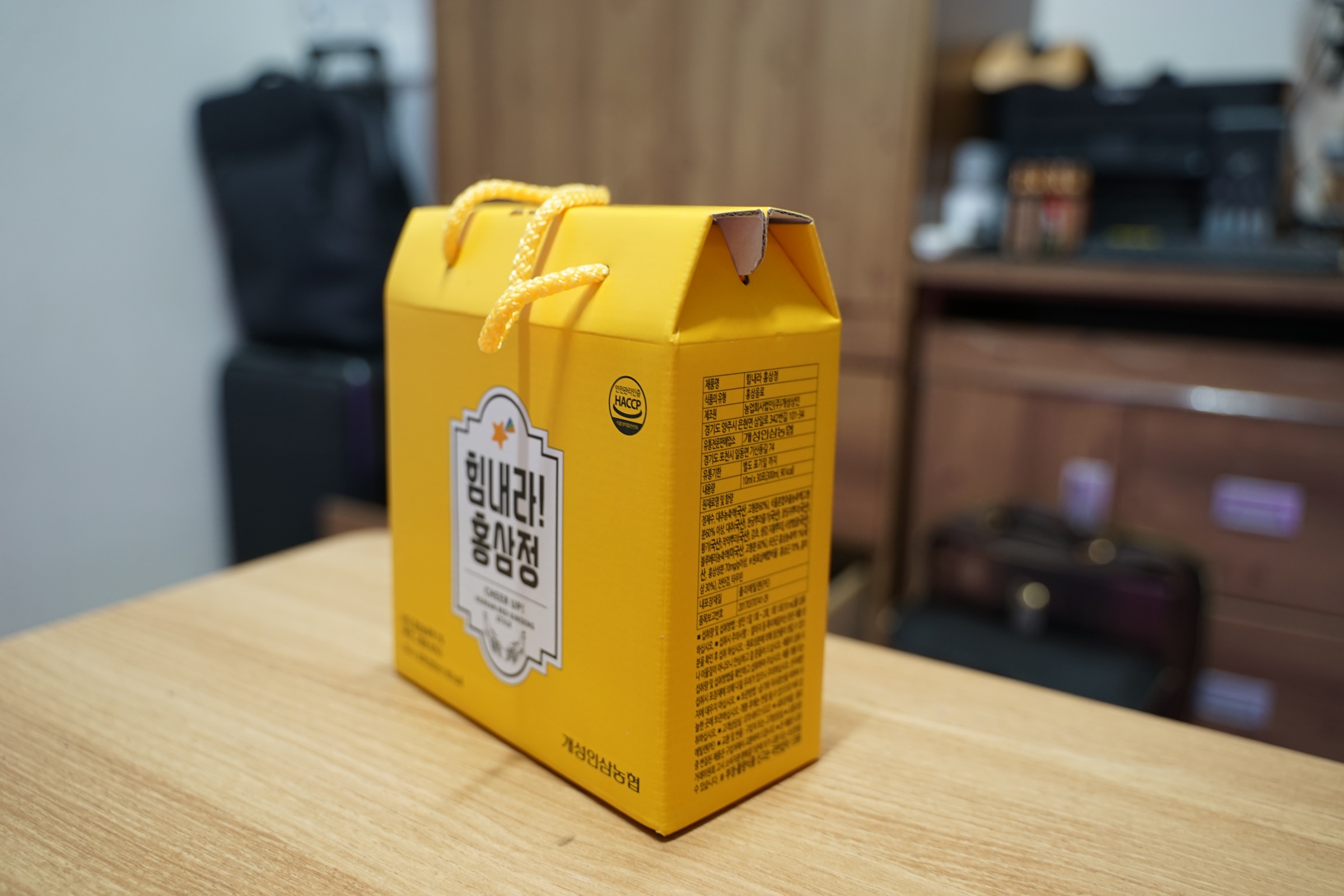 일단 이 홍삼은 평범한 정관장 홍삼이랑 다르게 포장이 귀엽고 깔끔하게 잘 되어 있습니다 .