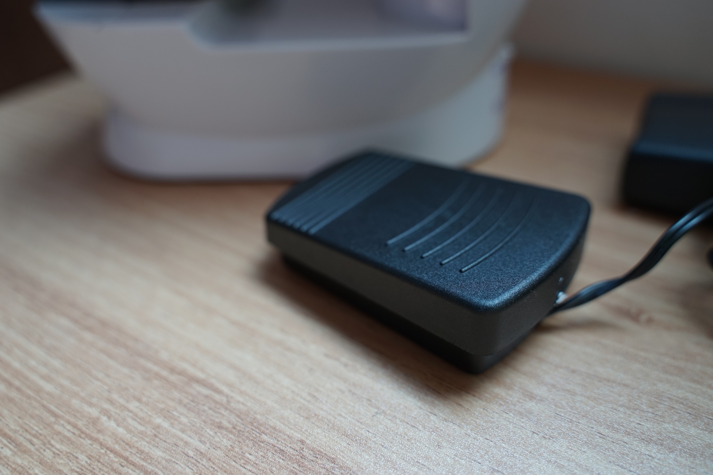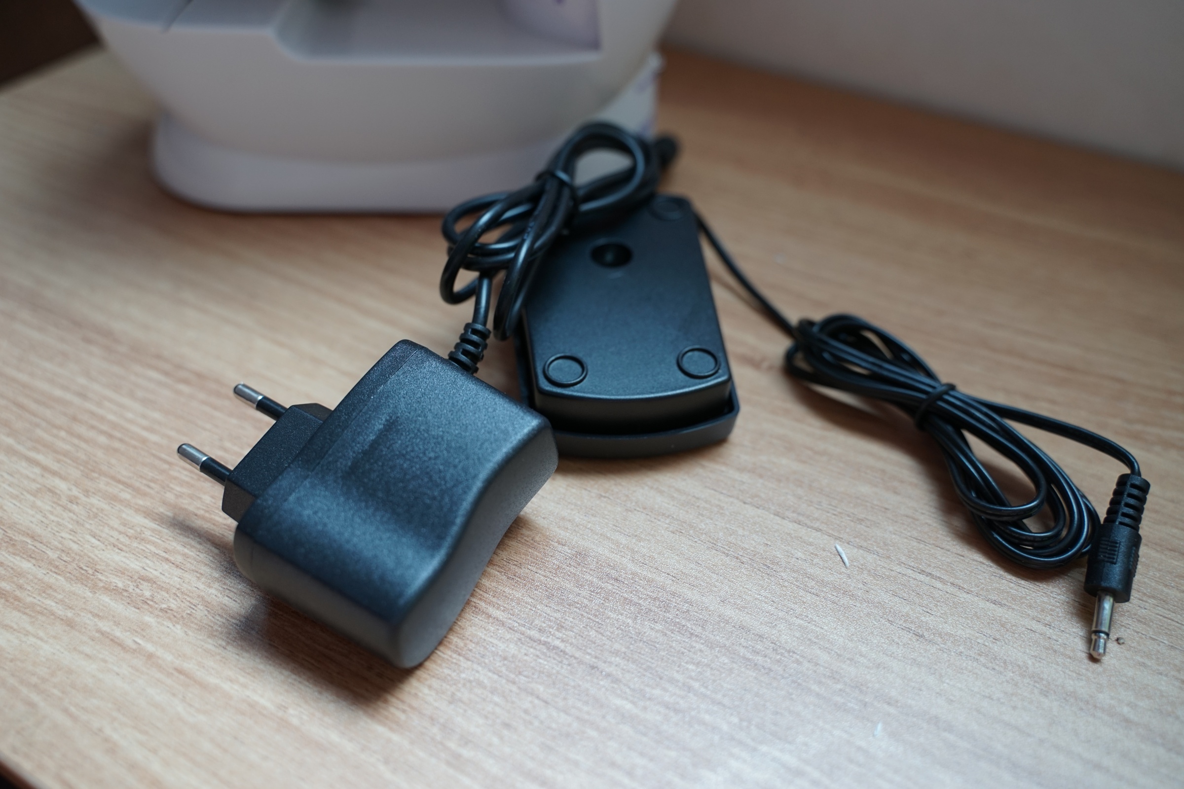 이런 페달이 같이 들어있습니다. 페달을 본체에 연결하면 페달을 밟으면 윙~~~ 하고 바느질을 시작하고 페달을 떼면 멈춥니다.