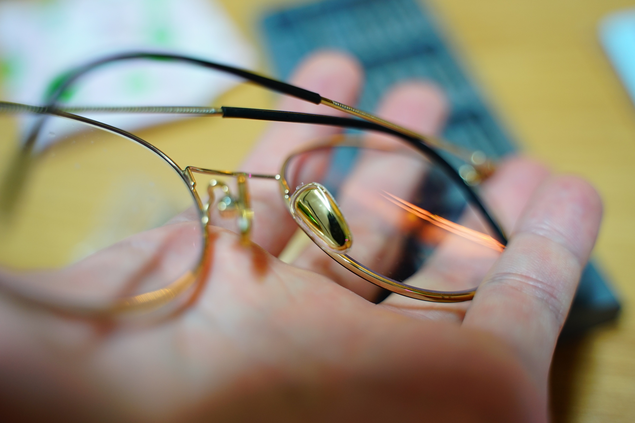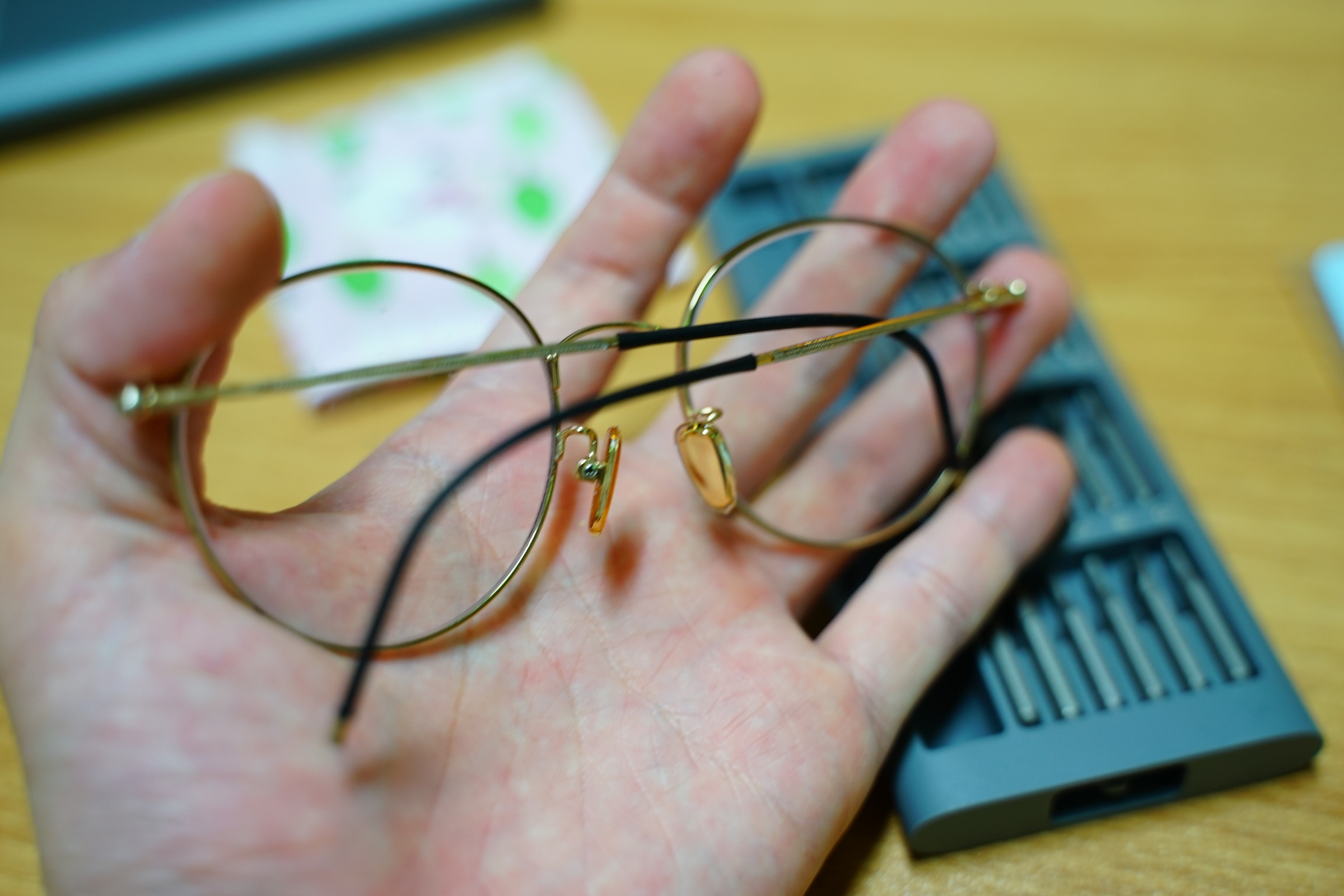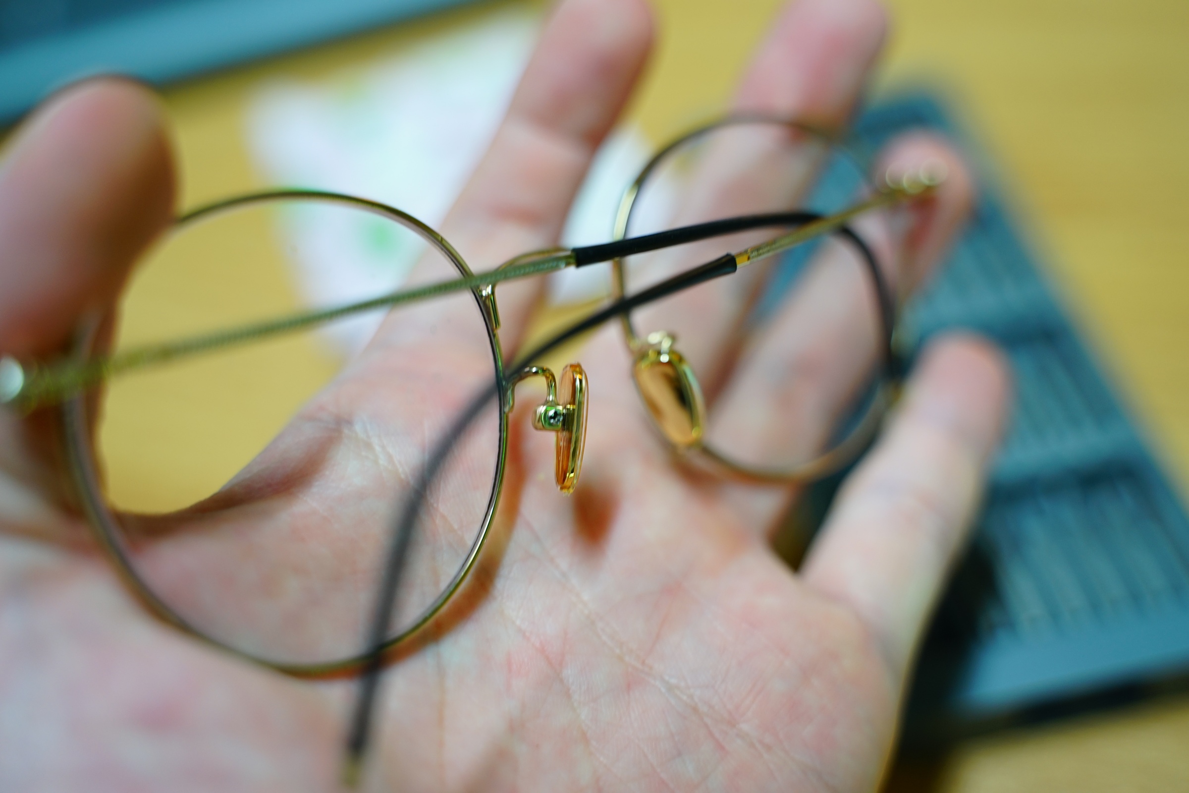 저는 딱 제 안경 금색처럼 은은한 색깔을 원했는데 얘는 너무 번쩍 번쩍 거려서 ㅜㅜ 그냥 딱 받자마자 아 이건 아니다 싶더라고요 흑흑