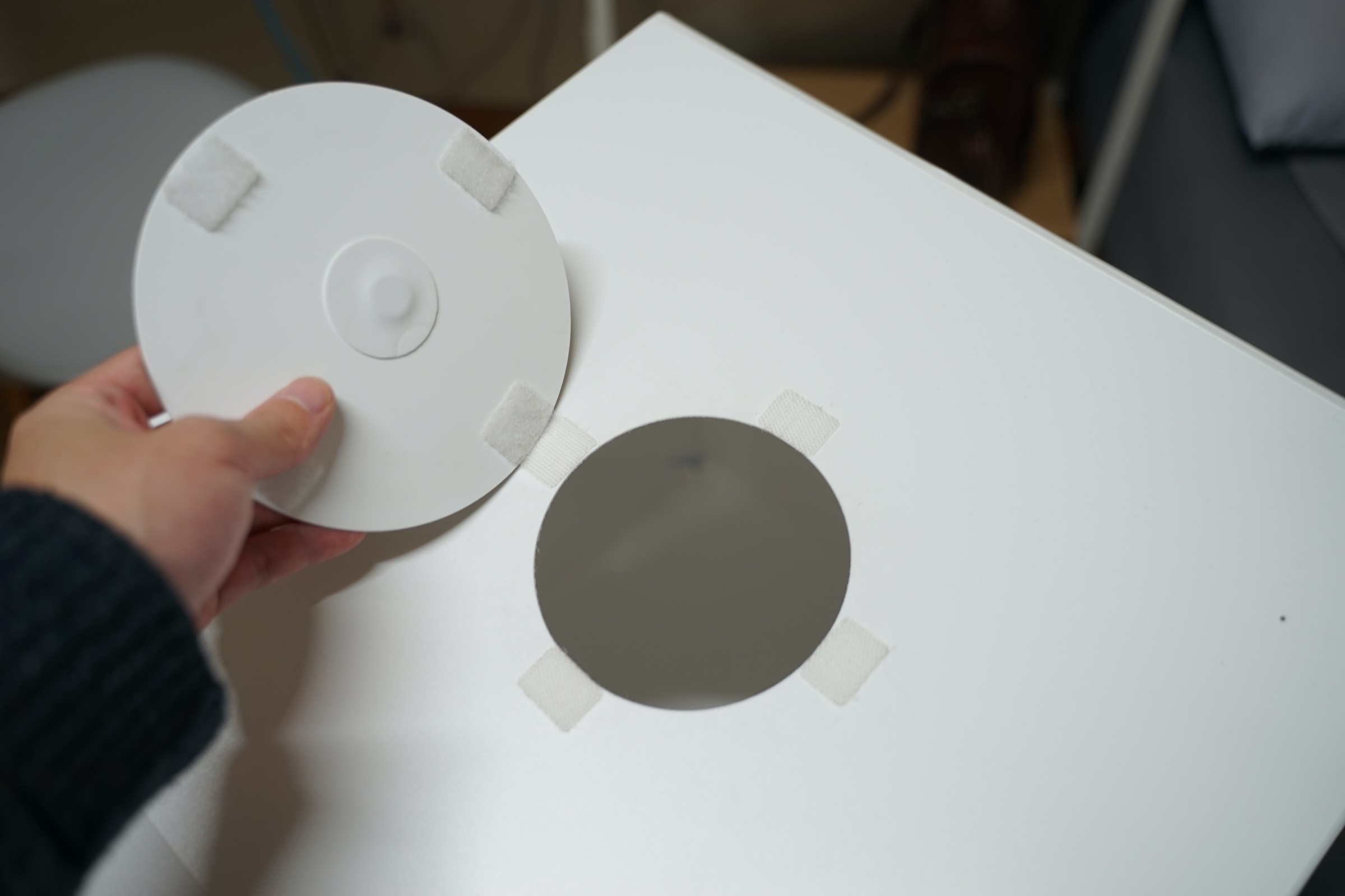 양쪽에는 자석이 달려 있어서 특별한 장치 없이 자석으로 착! 하고 붙이는 식입니다.