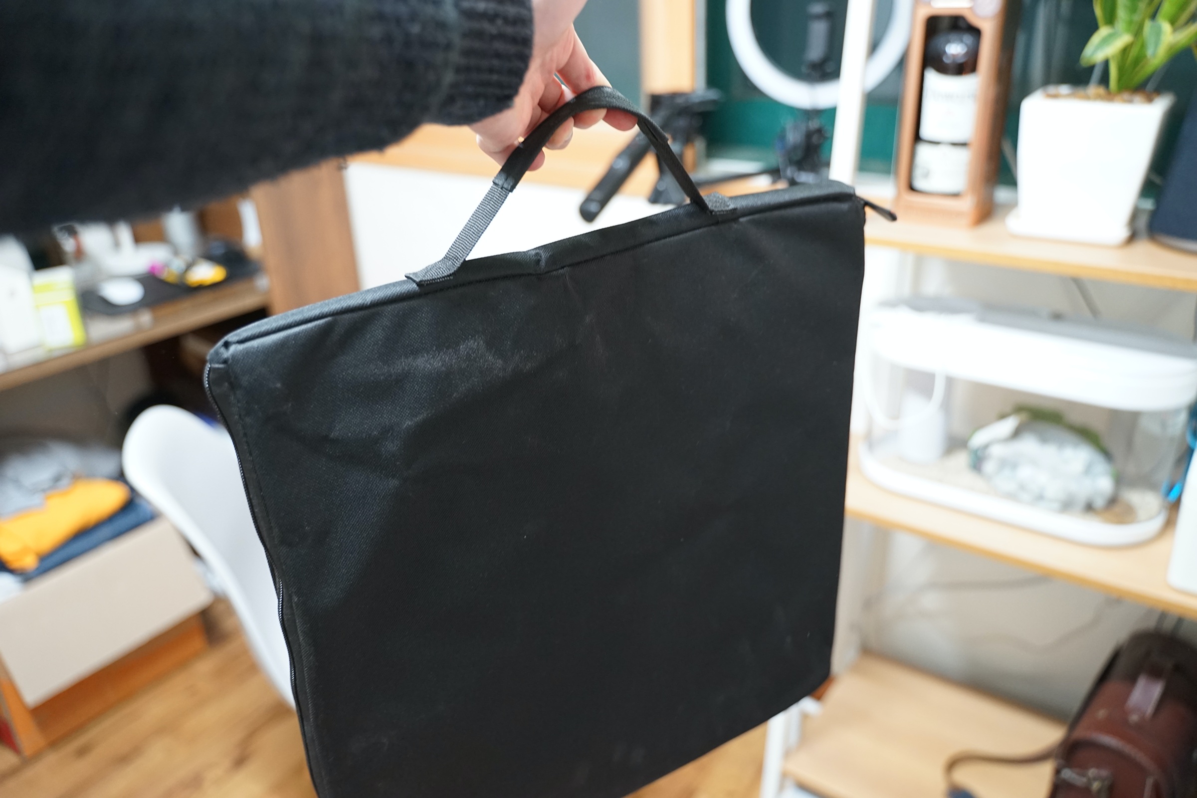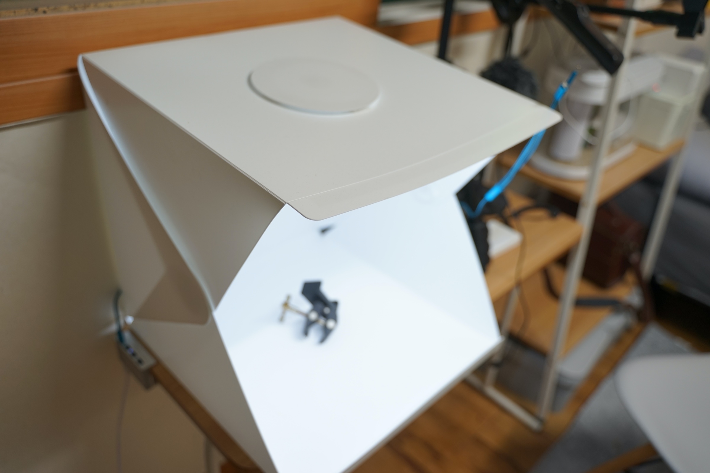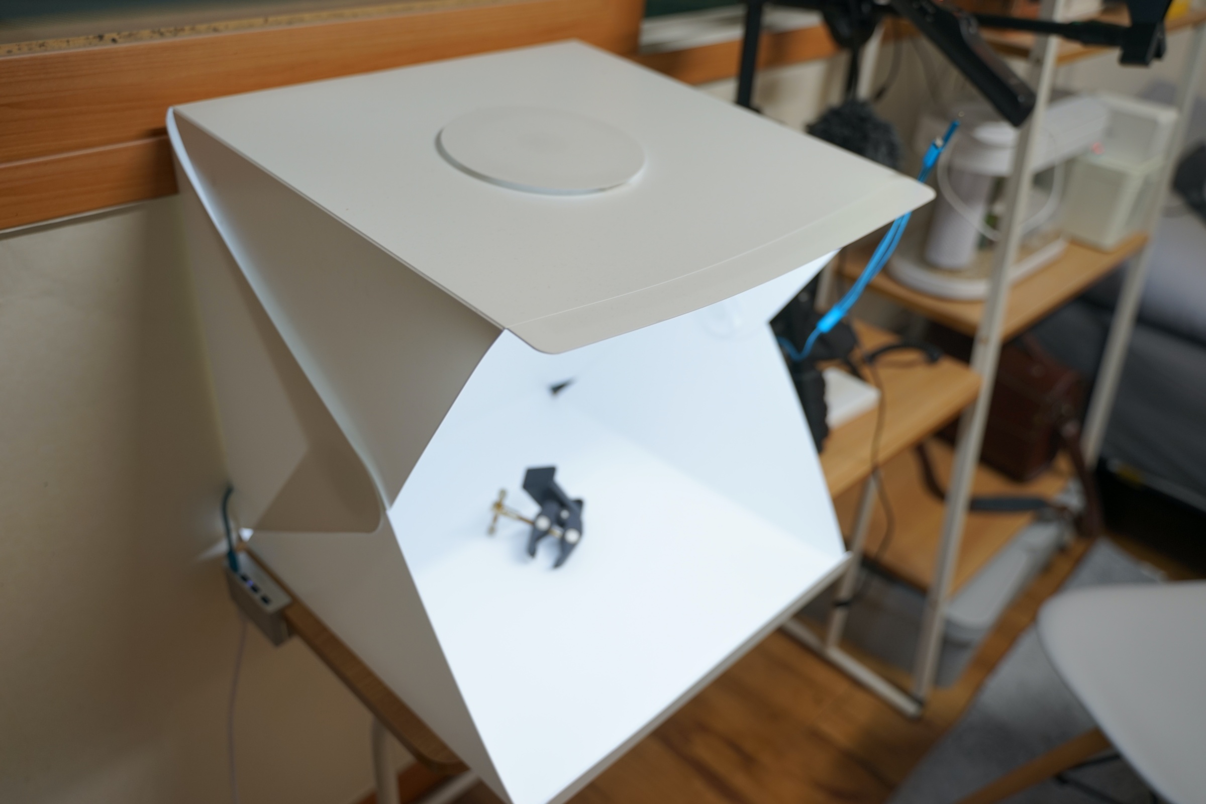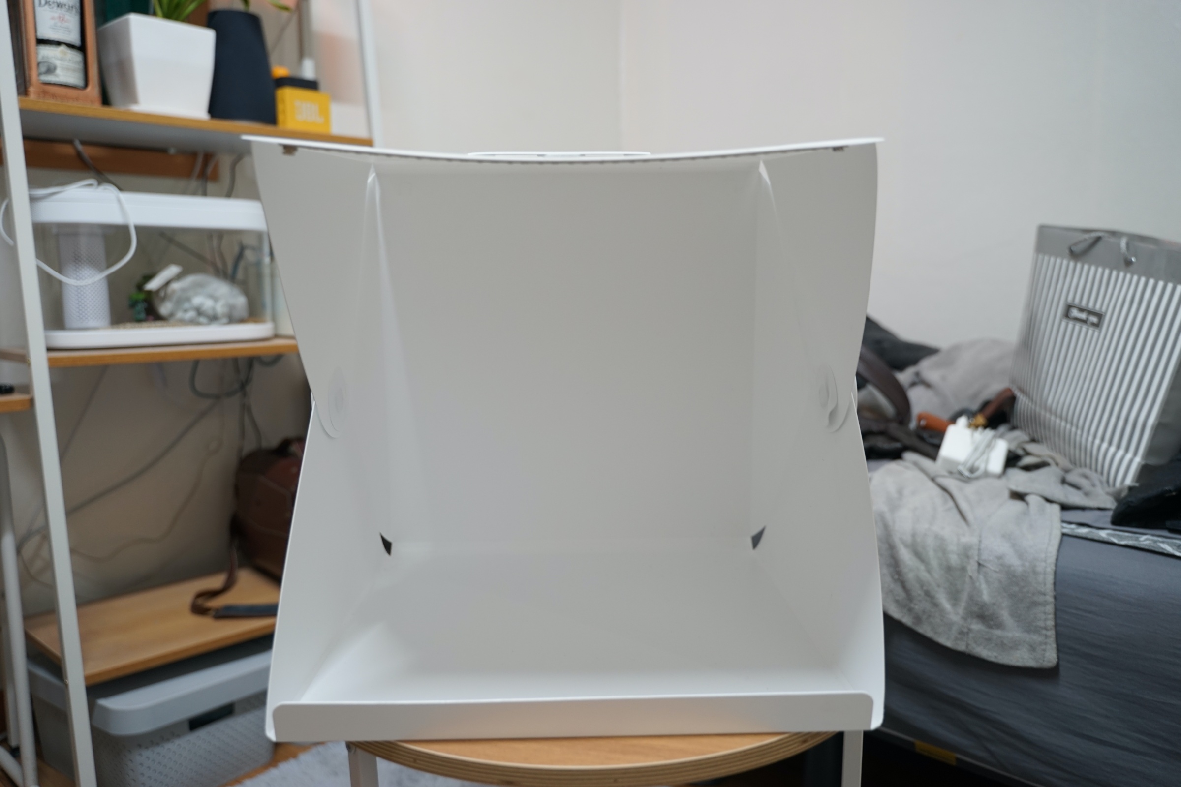이번에 소개할 제품은 휴대용 미니 스튜디오입니다. 사실 휴대용이지만 저는 휴대하면서 쓸 일은 없어서 그냥 집에 이런 식으로 두고 사용을 하고 있습니다.