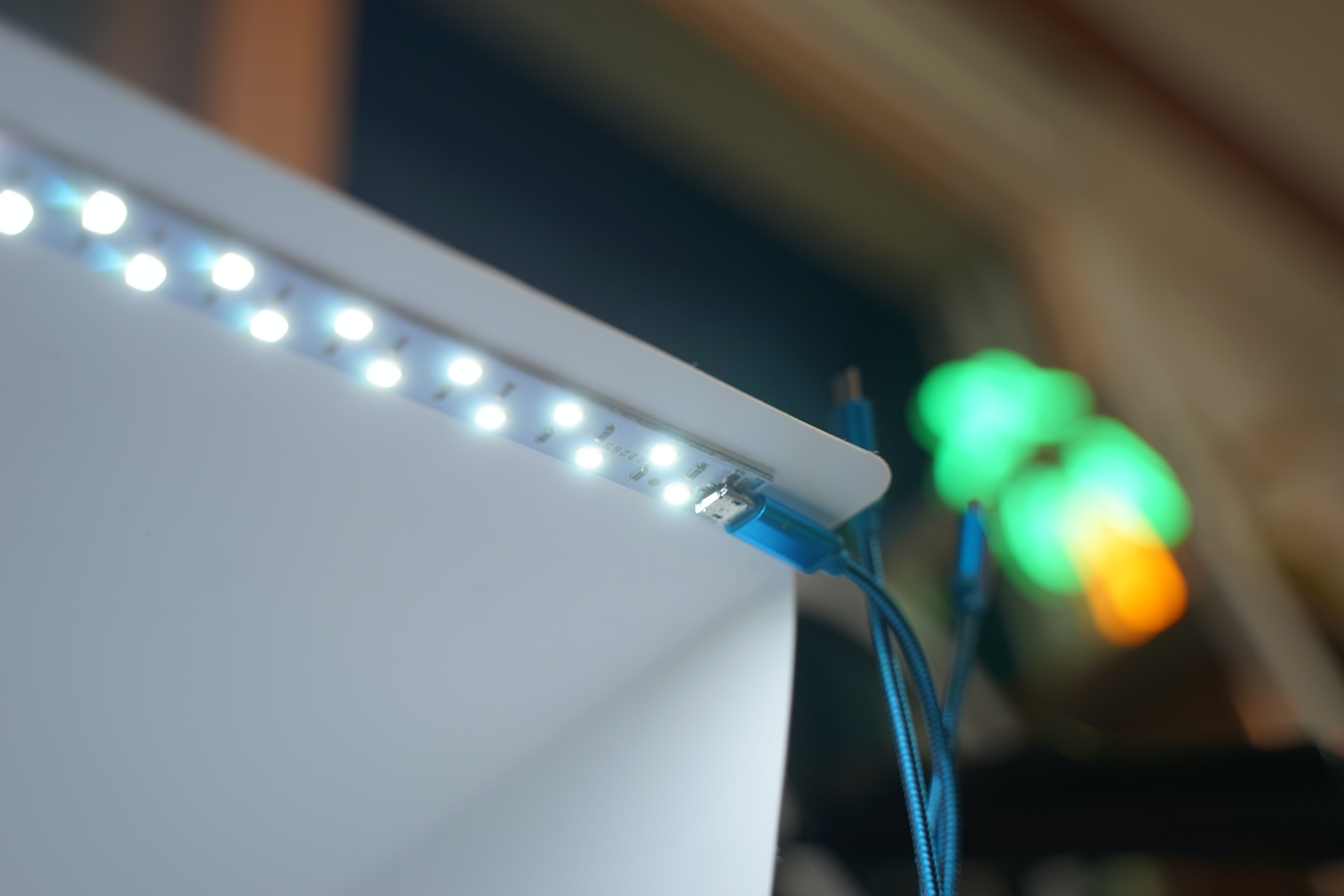 위에는 저렇게 LED 조명이 달려있고, 배터리는 없어서 마이크로 5핀 케이블로 전원을 공급해주어야 합니다.