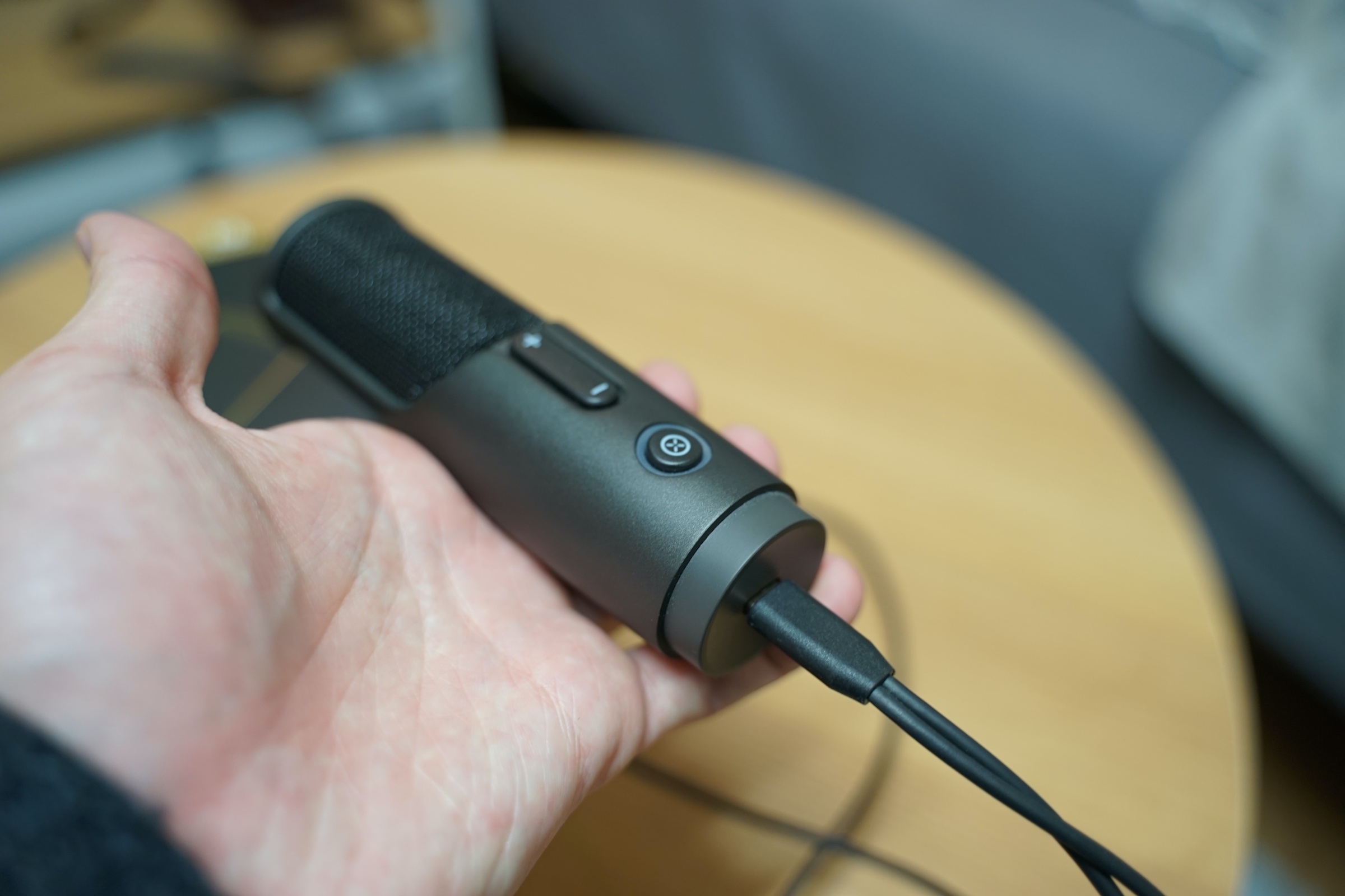 이렇게 해서 그냥 사용을 하면 되고, 이게 지향성 마이크여서 정면에 대고 말을 하면 또렷하게 녹음이 되고, 측면 부분에 있는 소음들은 다 차단을 해줍니다.