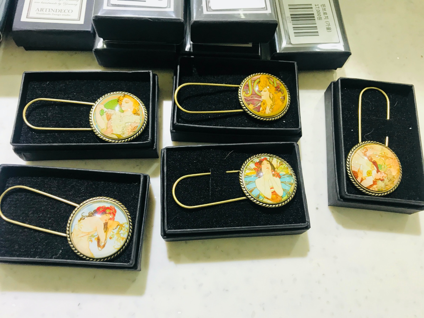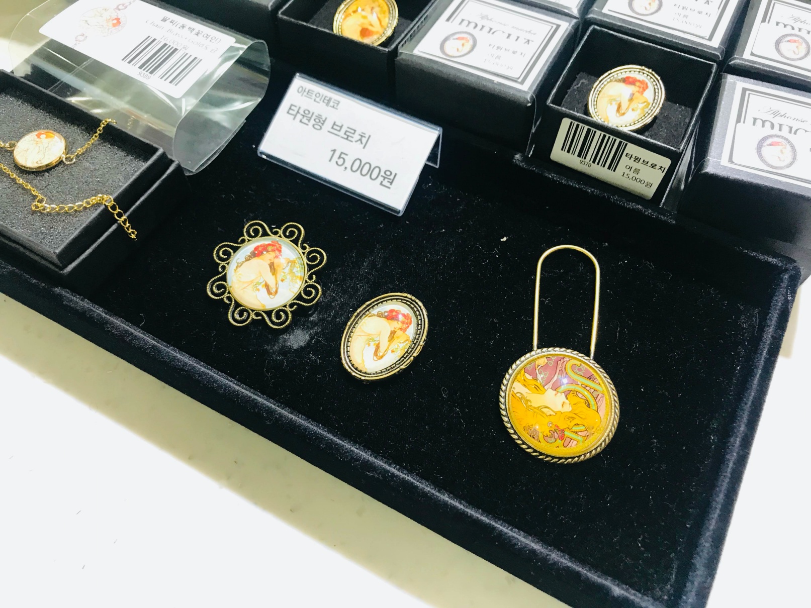 무하의 그림을 이런 브로치에다가 다니까 무슨 타이타닉에 나오는 것처럼 상당히 고급스럽고 이쁩니다.
