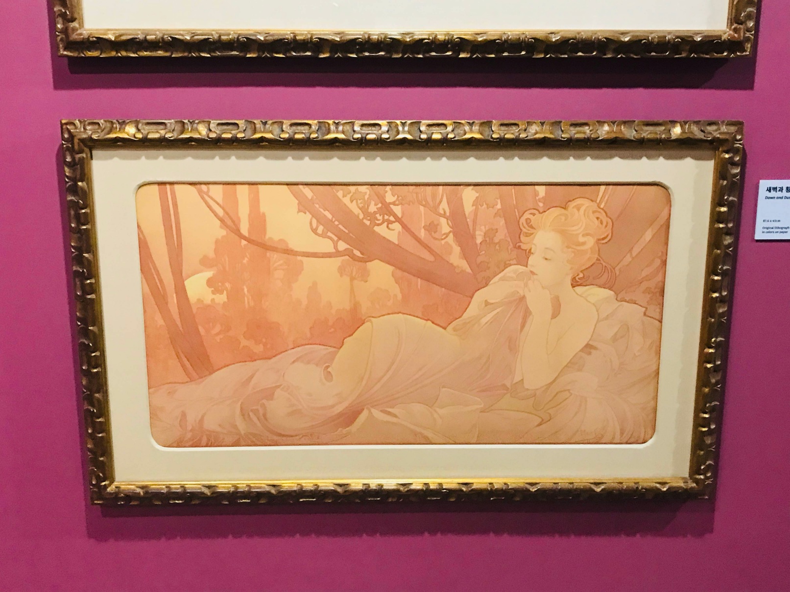 알폰소 무하전은 선릉역 쪽에 있는 "마이아트뮤지엄"이라는 최근에 개관한 미술관에서 전시를 진행하고 있습니다.