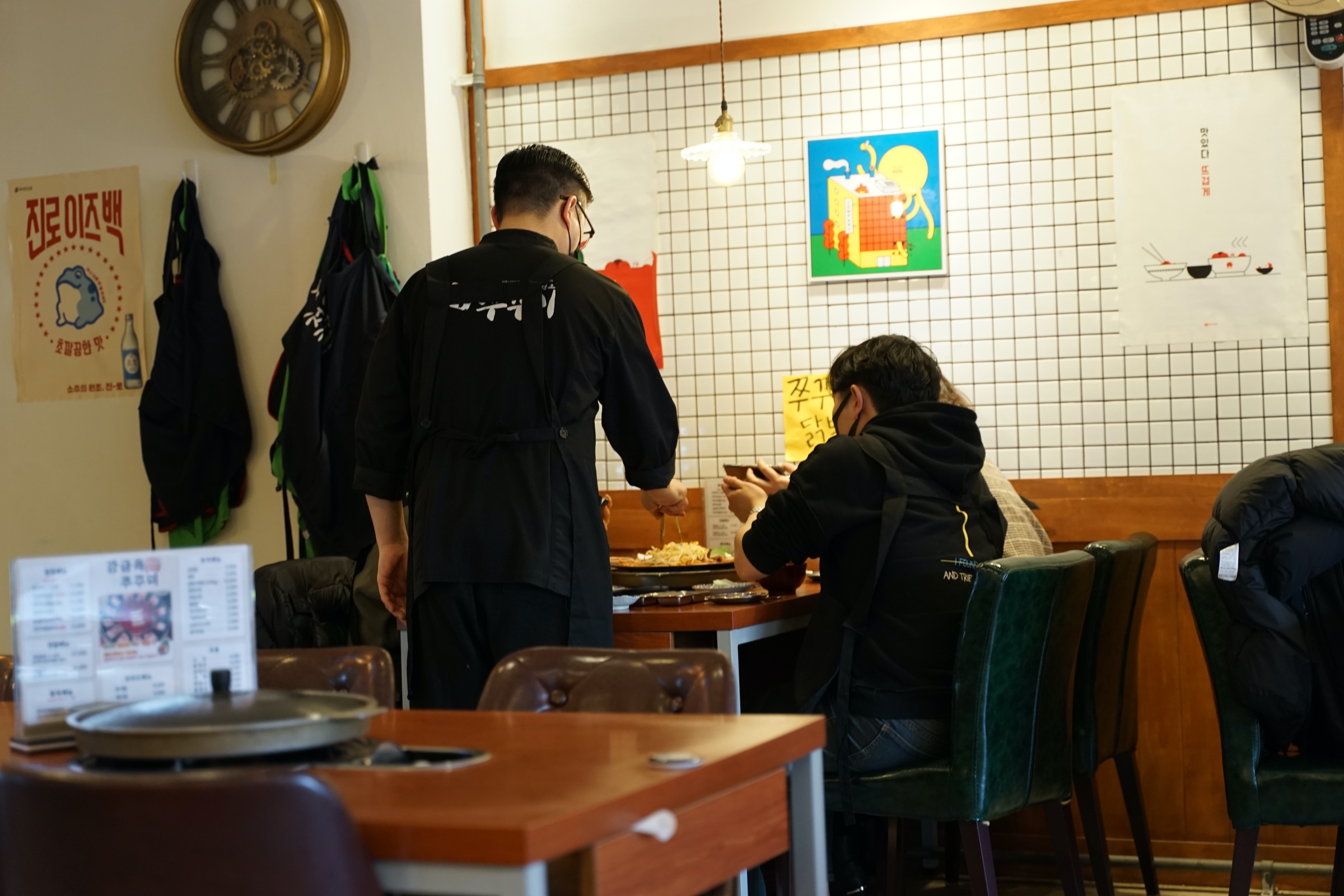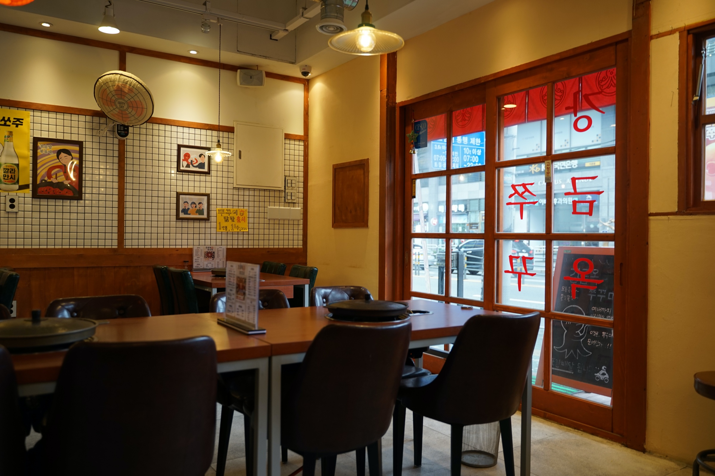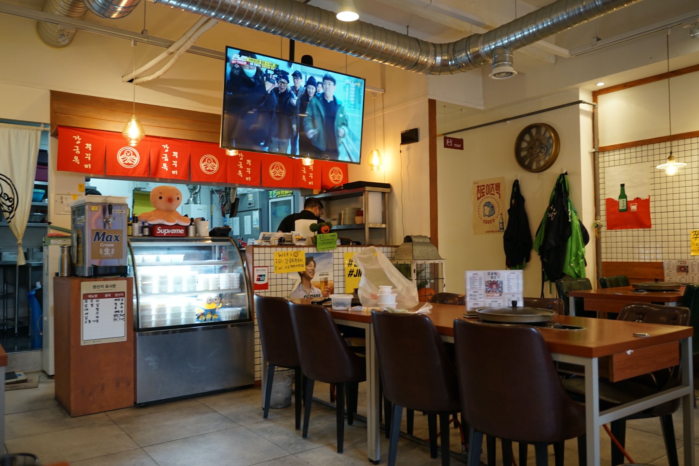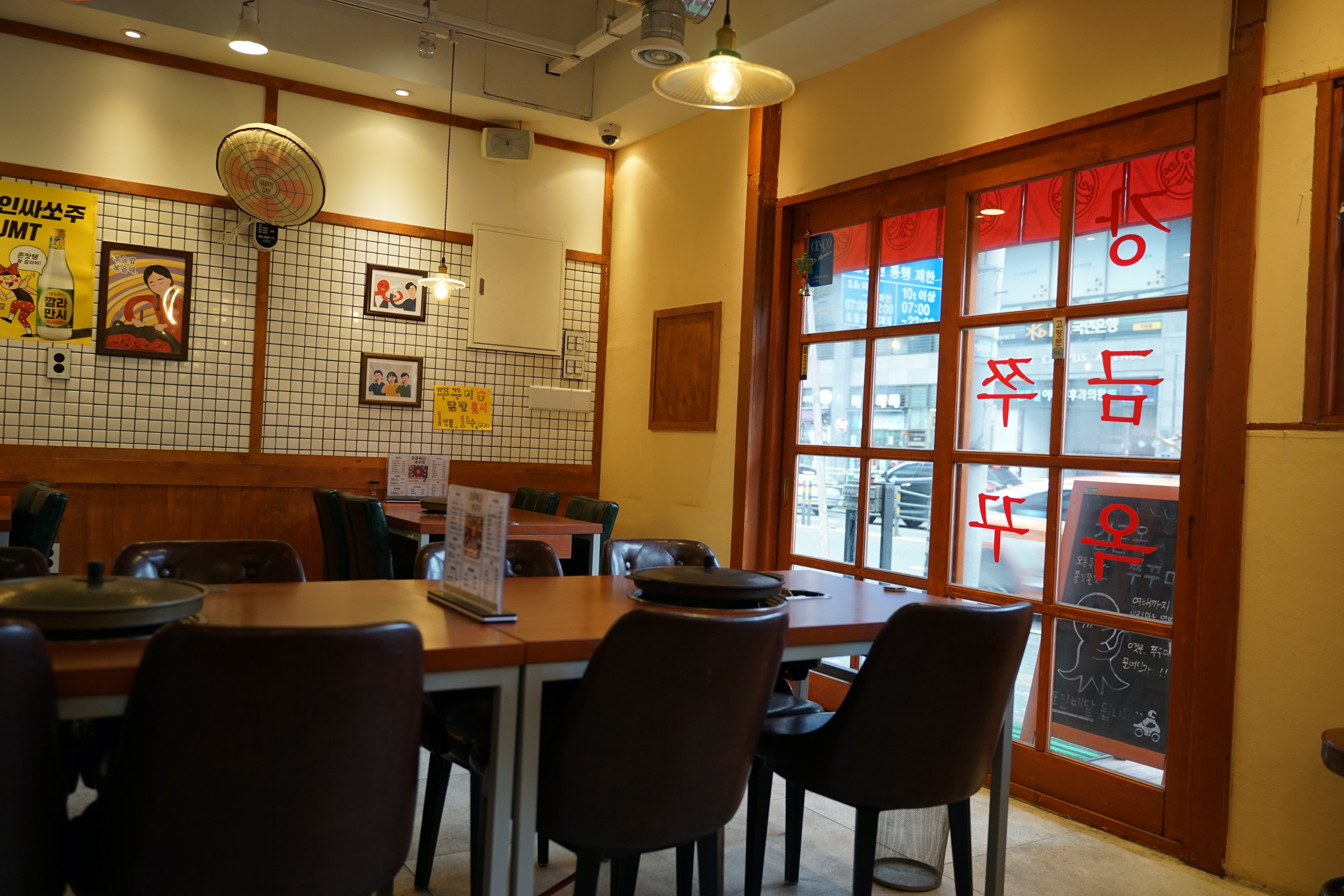 뭐랄까 약간 새마을식당의 좀 더 깔끔한 버전? 새마을식당이 아예 대놓고 동그란 철 책상 같은 걸로 80-90년대 느낌을 주려고 했다면, 여기는 거기보다는 몇 년 뒤 느낌이랄까. 암튼 그런데 깔끔하고 좋습니다.