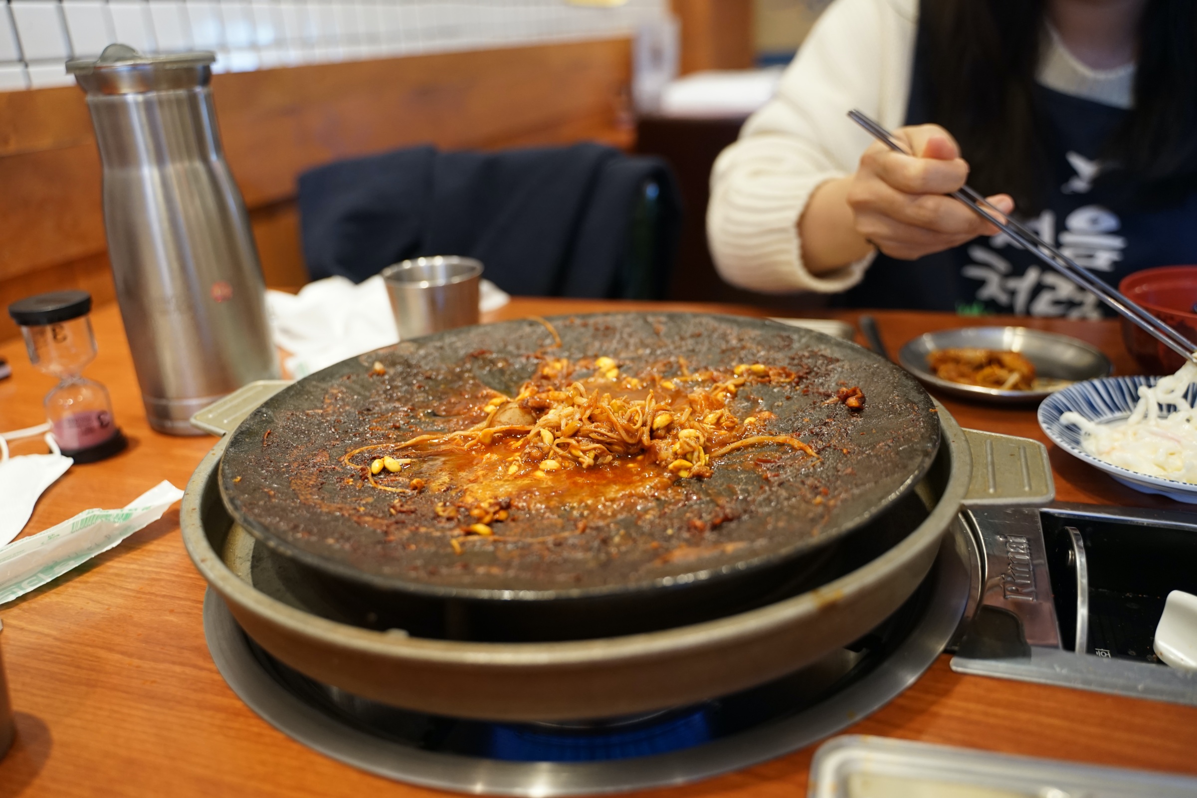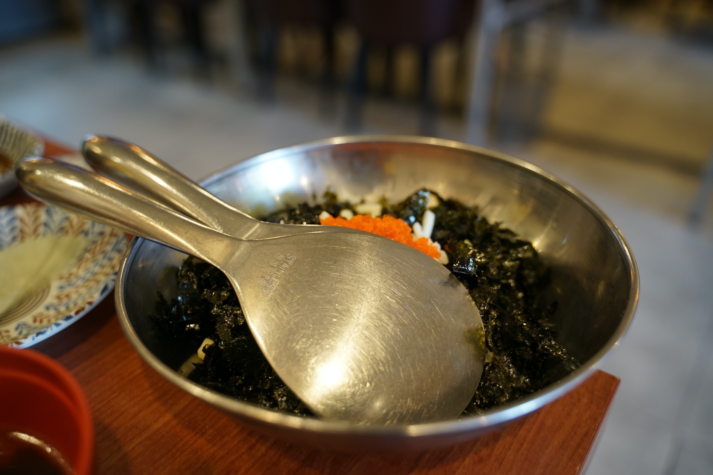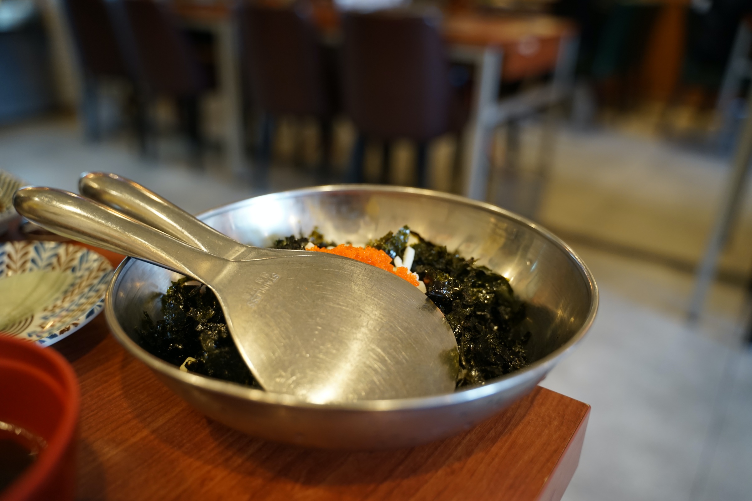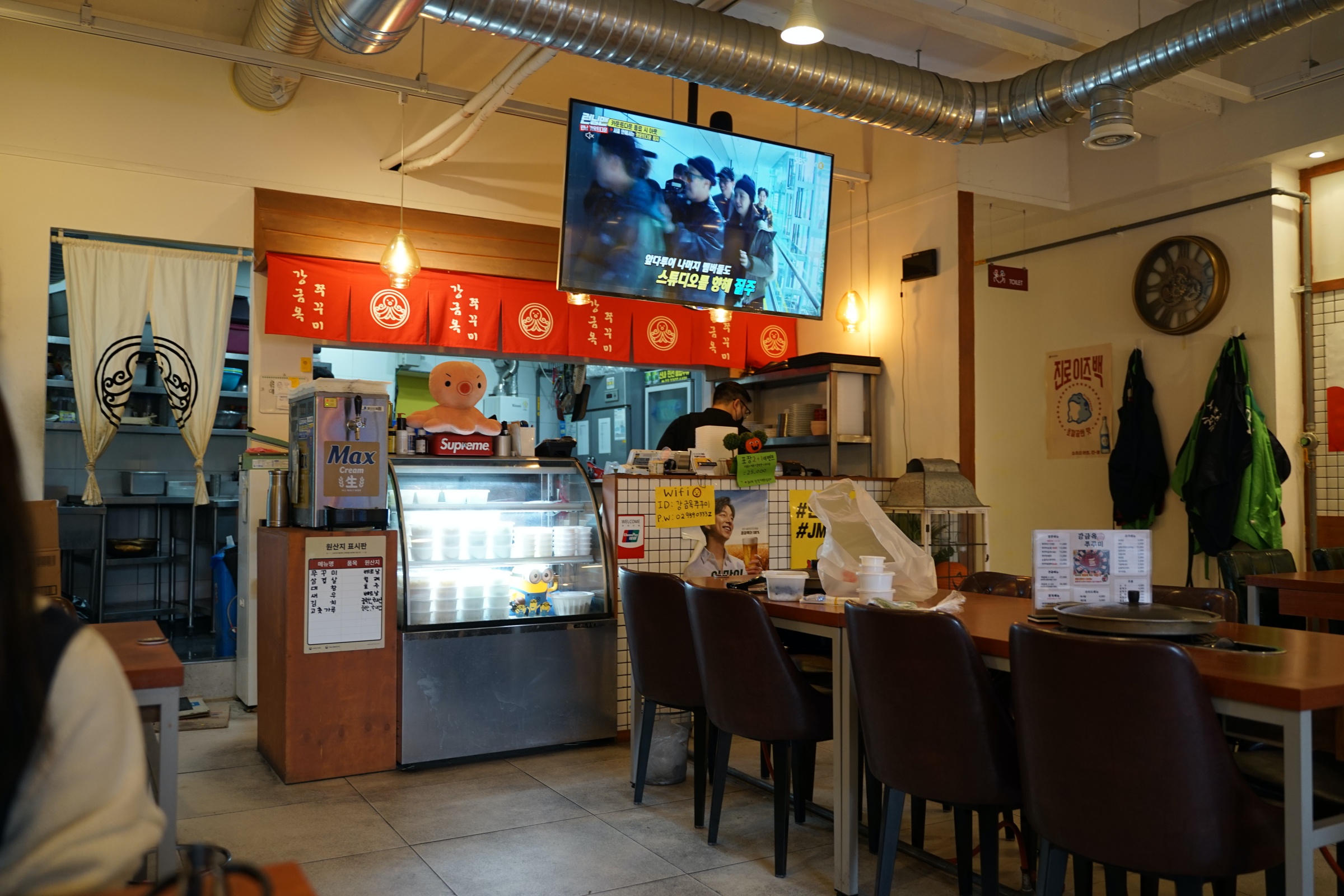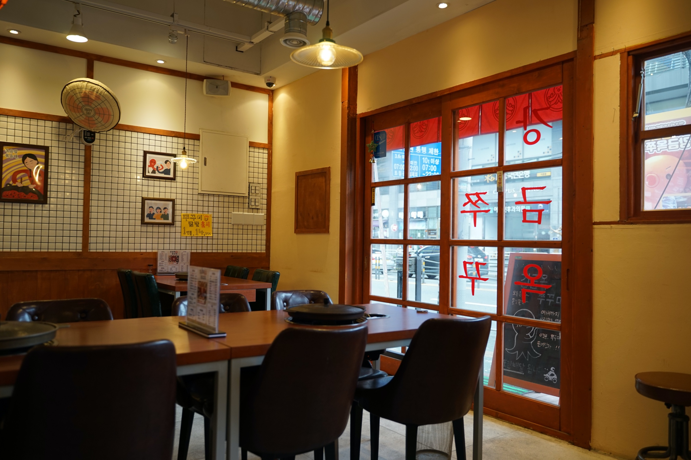 뭐랄까 약간 새마을식당의 좀 더 깔끔한 버전? 새마을식당이 아예 대놓고 동그란 철 책상 같은 걸로 80-90년대 느낌을 주려고 했다면, 여기는 거기보다는 몇 년 뒤 느낌이랄까. 암튼 그런데 깔끔하고 좋습니다.