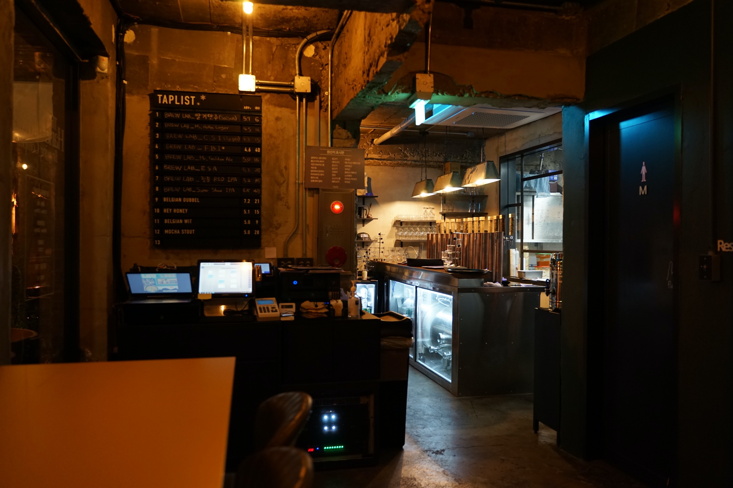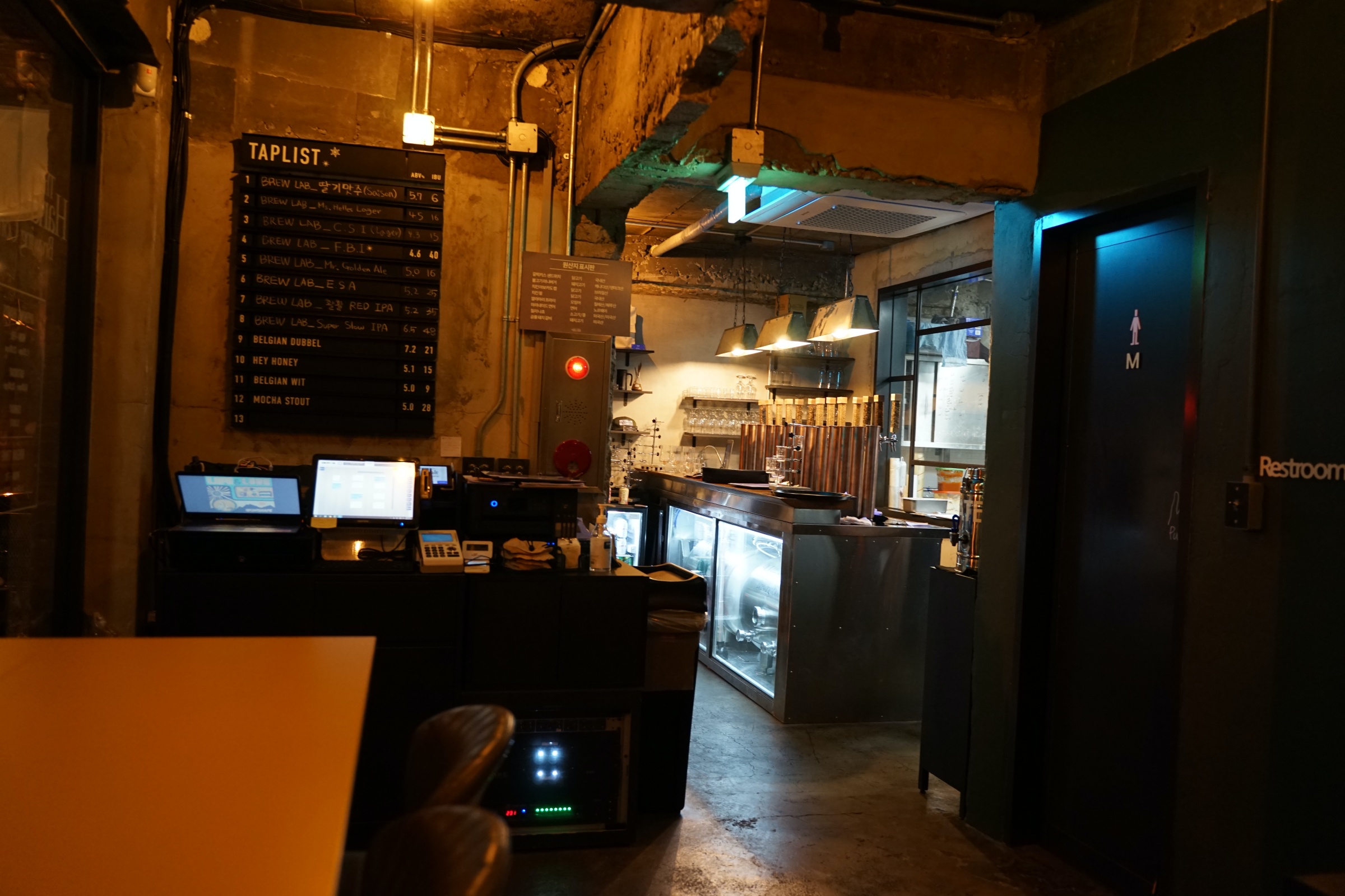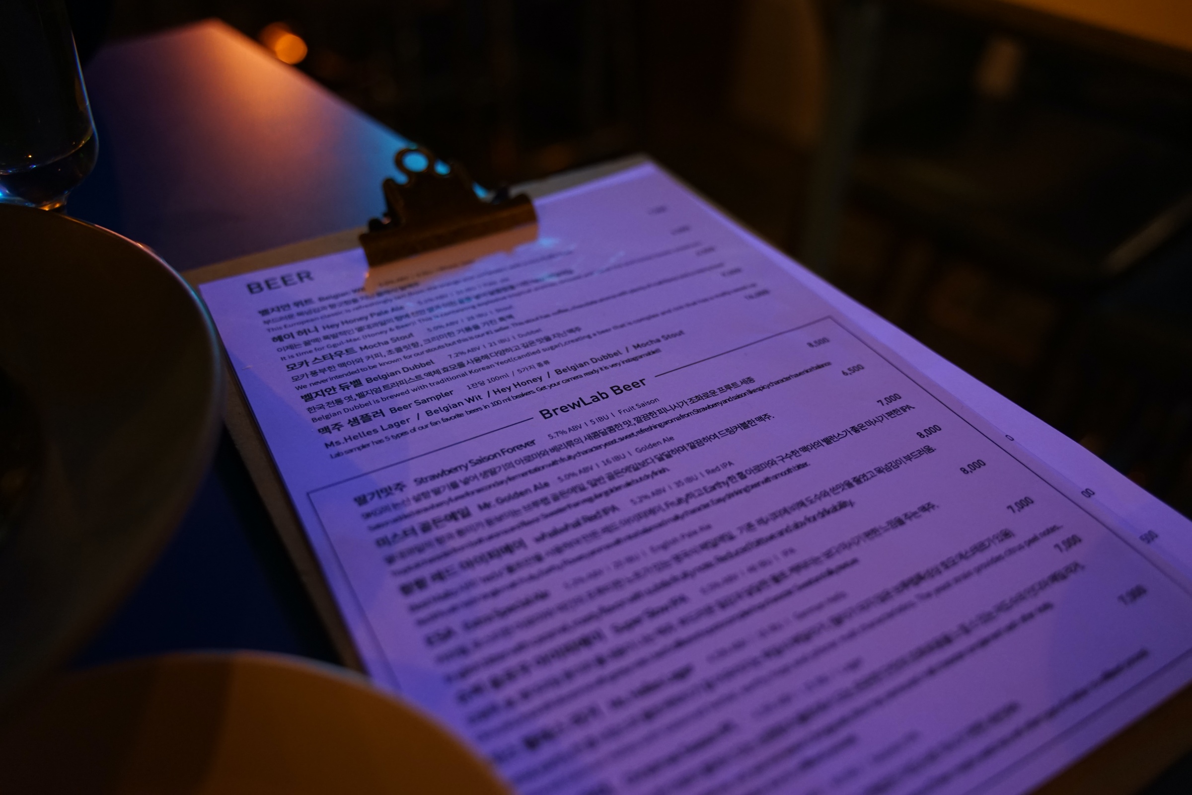이곳 메뉴 참고하세요! 아웃포커싱 돼서 잘 안 보이기는 하는데 ... 암틍 여기도 서울에서 꽤나 유명한 브루잉 컴퍼니인 것 같더라구요. 최근에 어디 대기업에 엑싯했다는 소문이 있는데 자세히는 모릅니다.