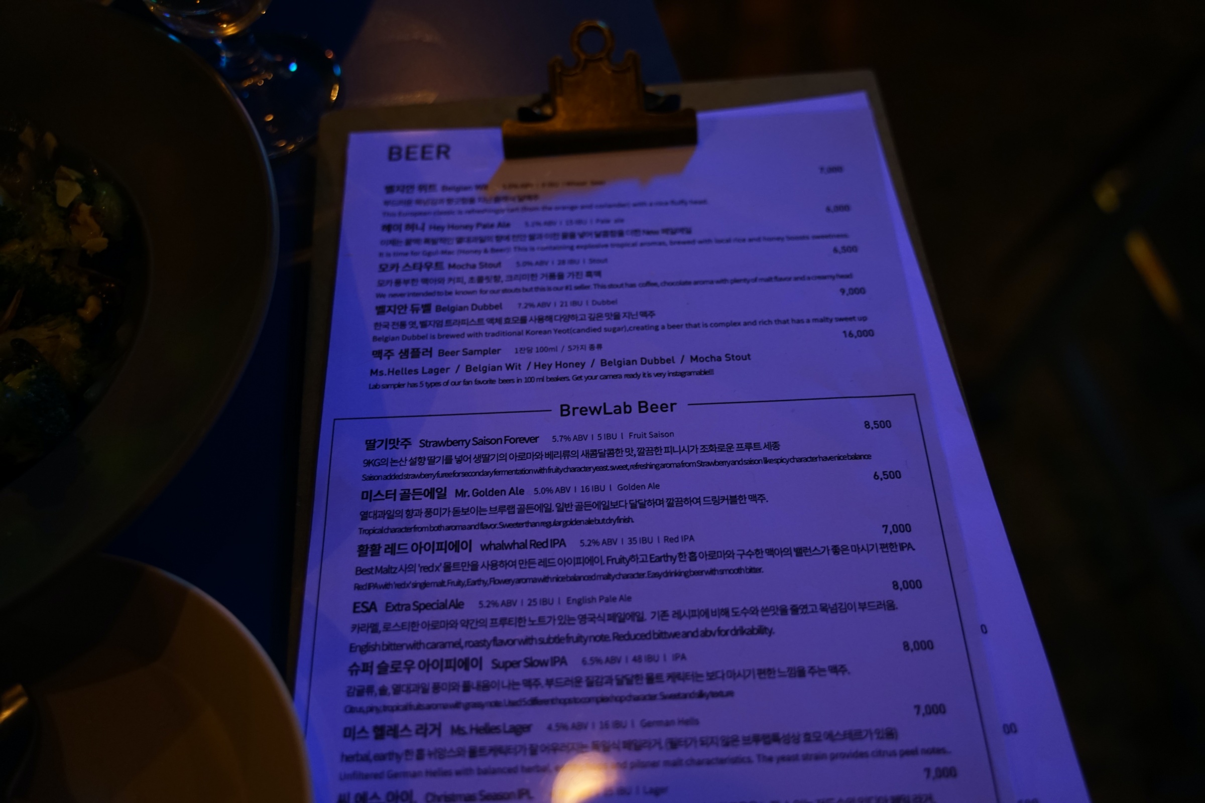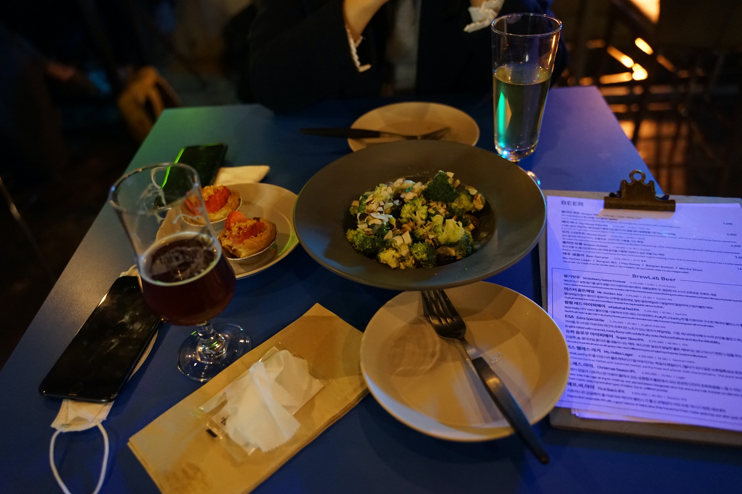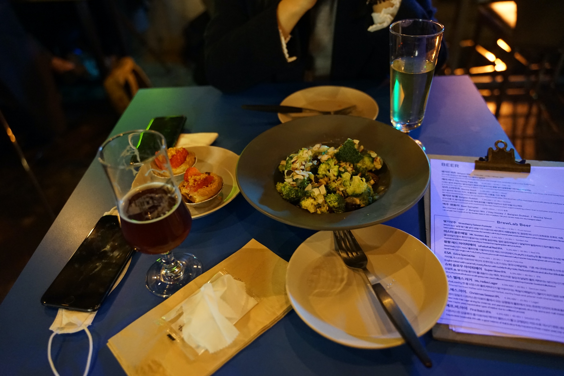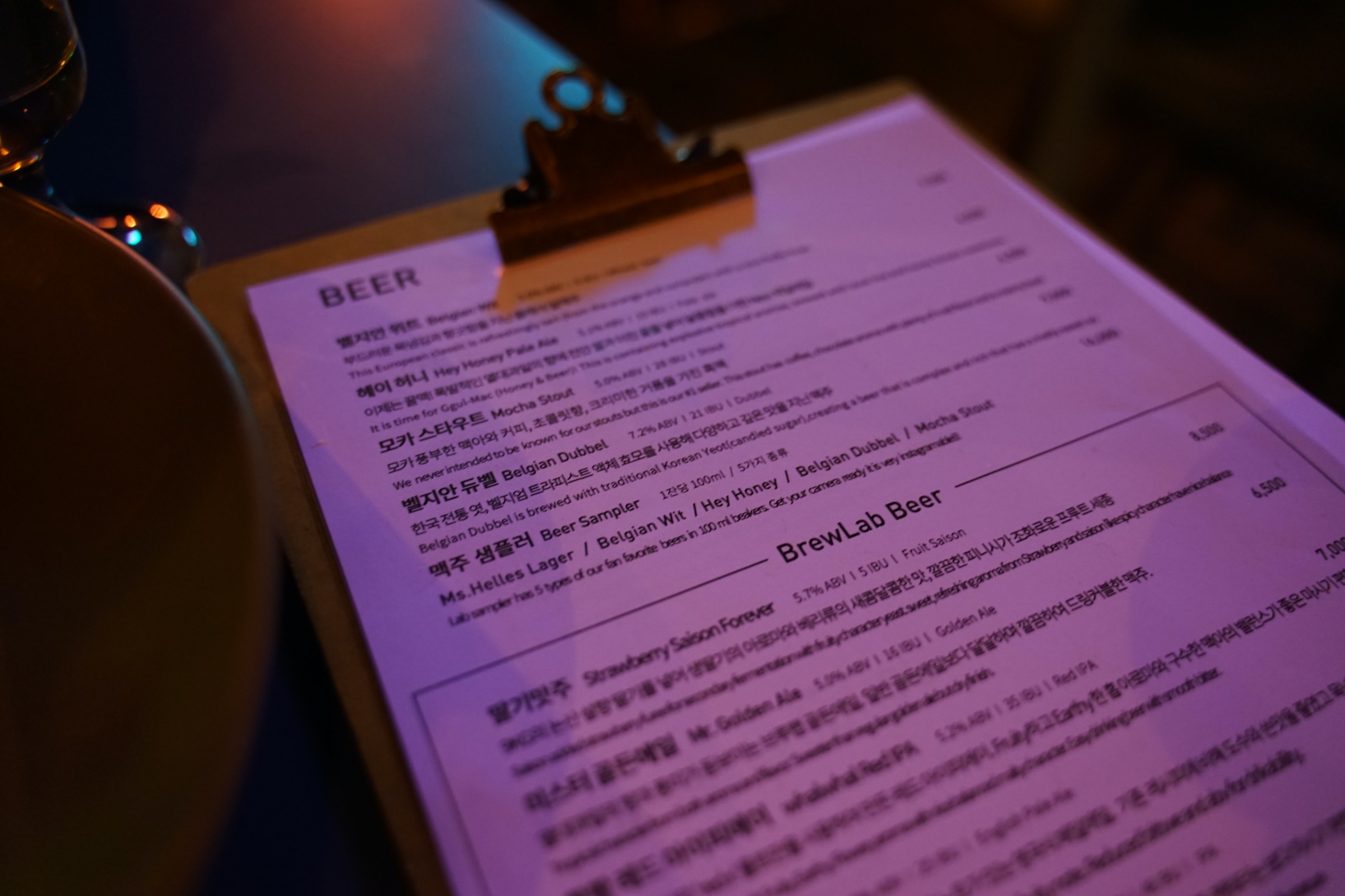 이곳 메뉴 참고하세요! 아웃포커싱 돼서 잘 안 보이기는 하는데 ... 암틍 여기도 서울에서 꽤나 유명한 브루잉 컴퍼니인 것 같더라구요. 최근에 어디 대기업에 엑싯했다는 소문이 있는데 자세히는 모릅니다.