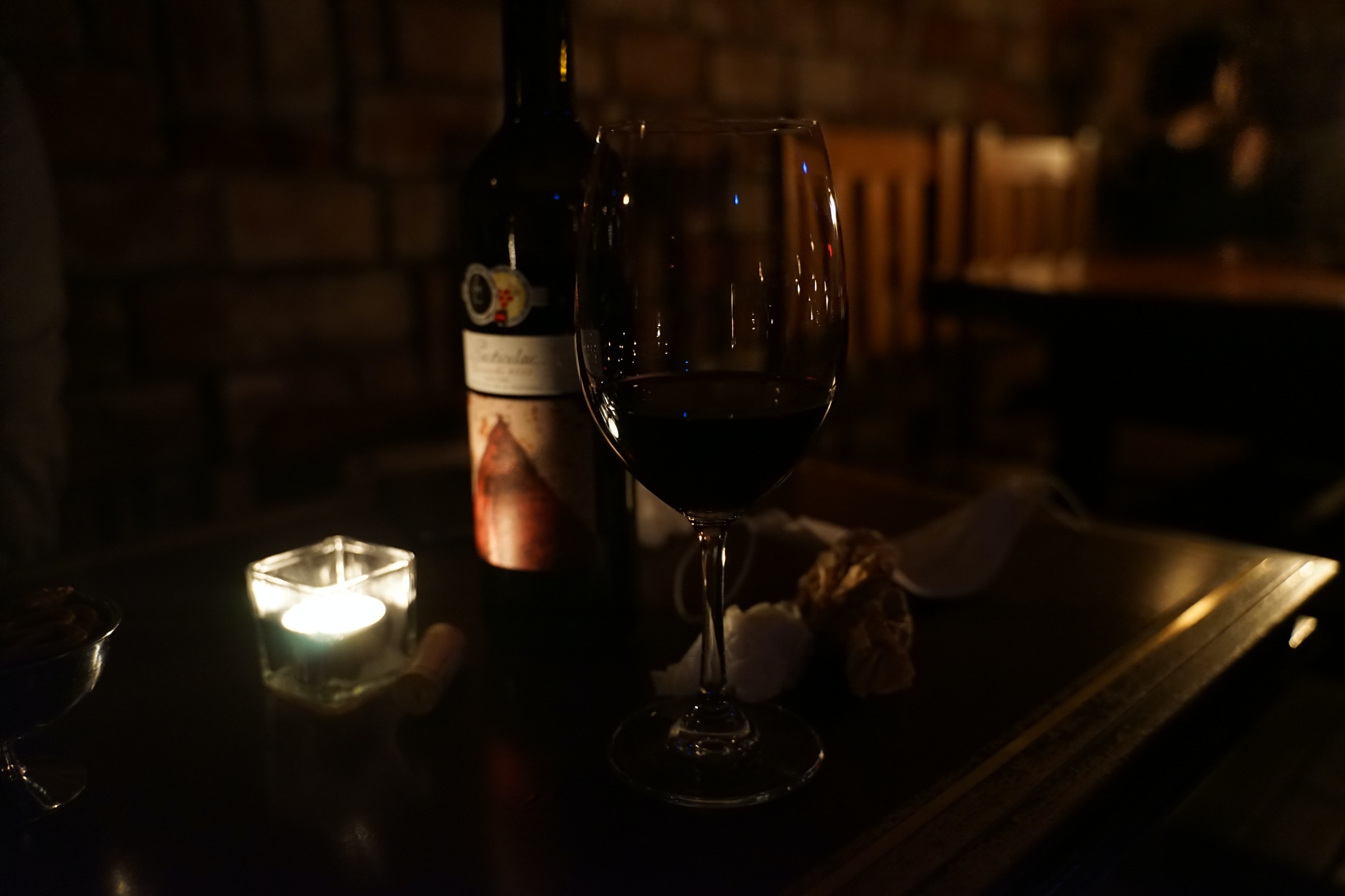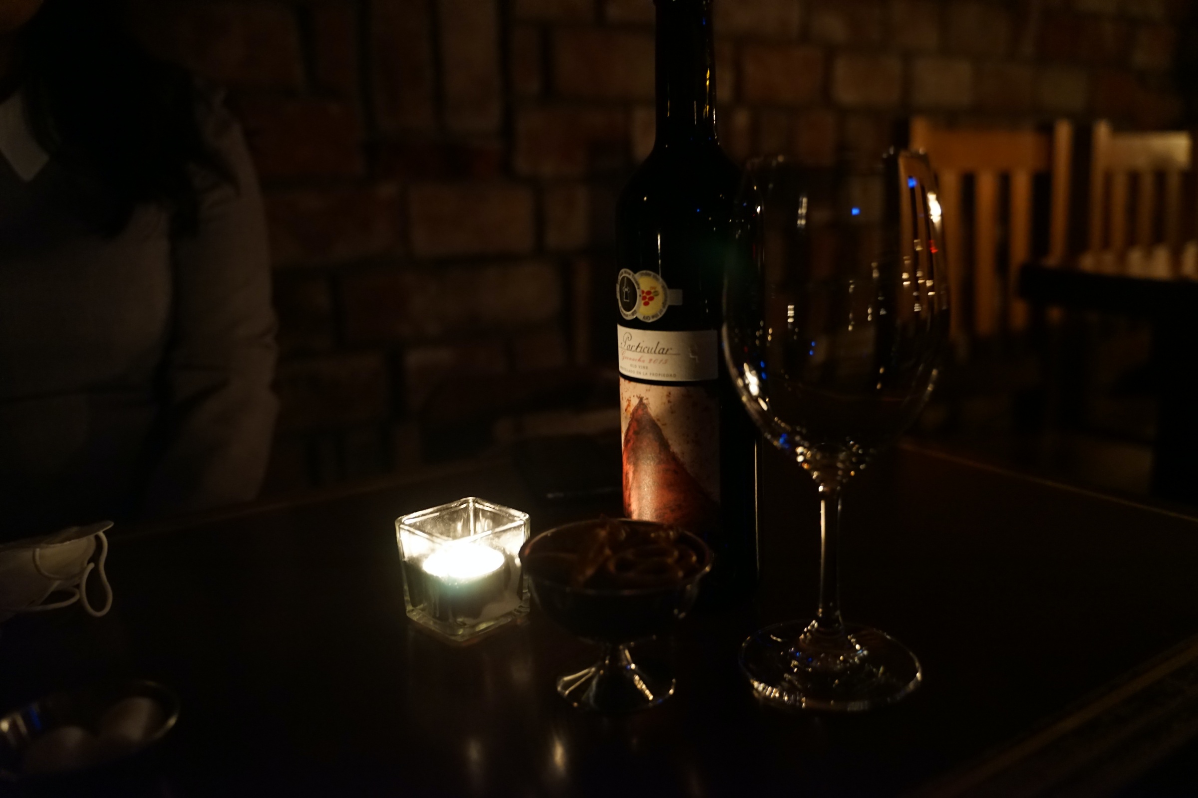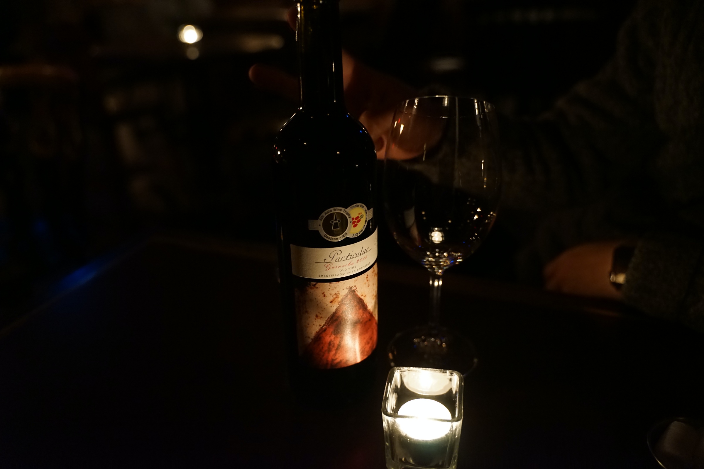 아무래도 와인바이기 때문에 가격이 살짝 부담될 수 있기는 한데, 4만원 정도 하는 와인 한병 마시면 또 나름 괜찮습니다. 이번에 저희가 시킨 건 55,000원짜리인데, 30년이 넘은 포도나무에서 수확한 포도로 만든 와인이라고 합니다.