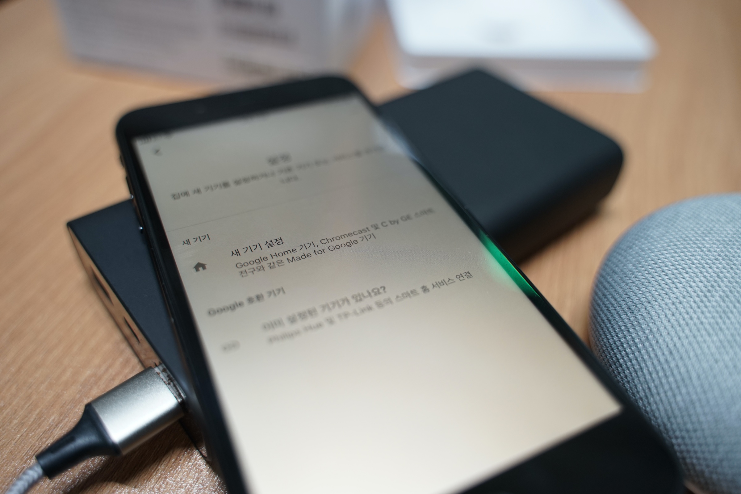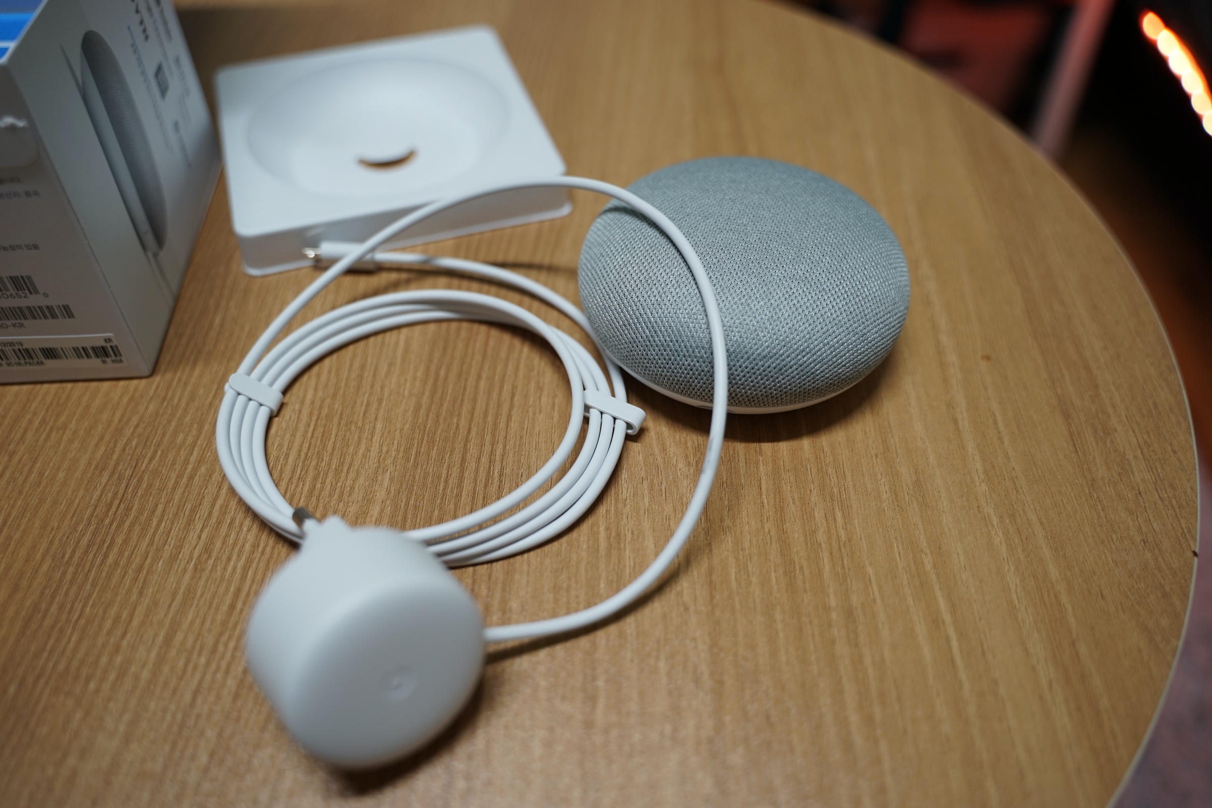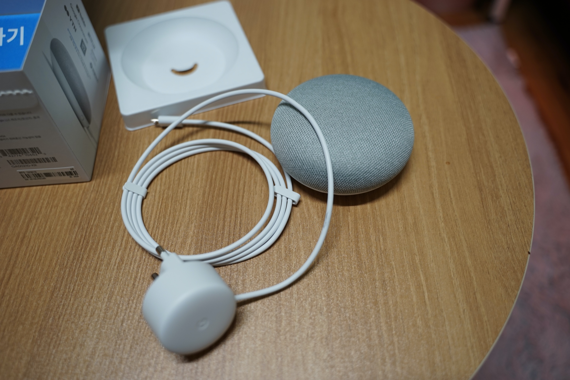 근데 뭐 구글 홈미니는 원래 그레이가 제일 디폴트 색상이어서 그런지 그레이가 깔끔하고 이쁘긴 합니다. 어디 거실에 패브릭 소파랑 같이 인테리어 해두면 괜찮을 것 같은 느낌.