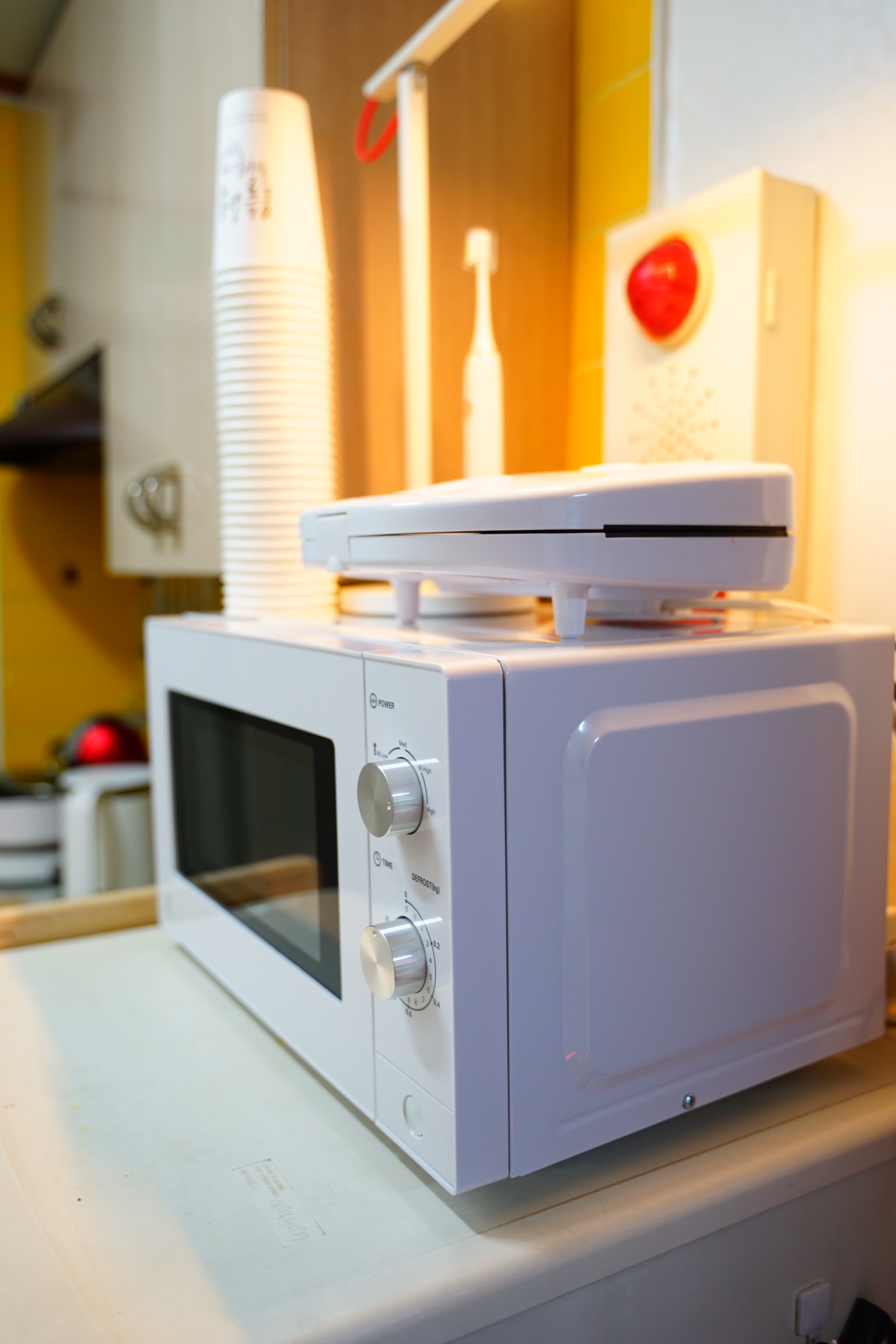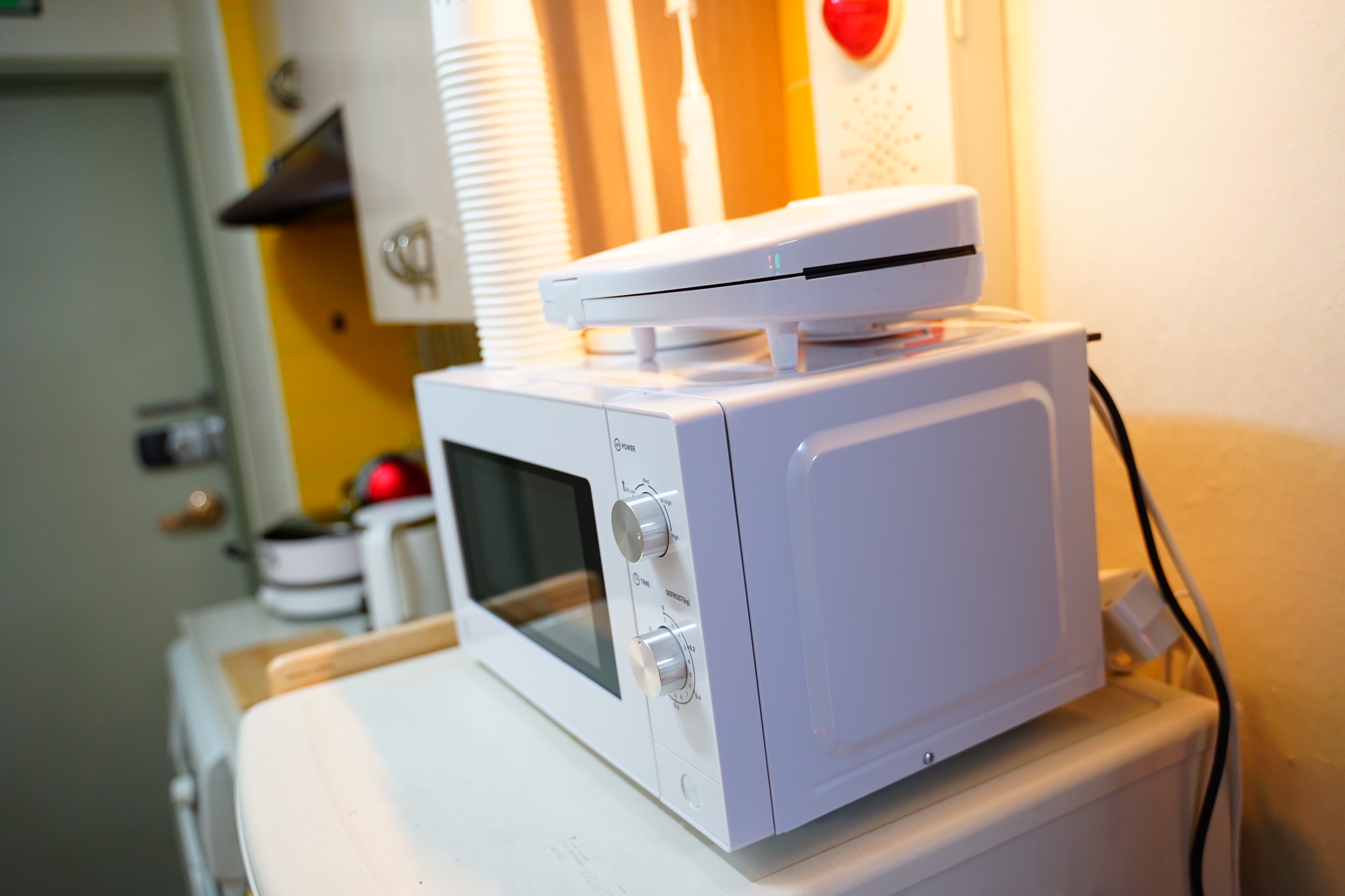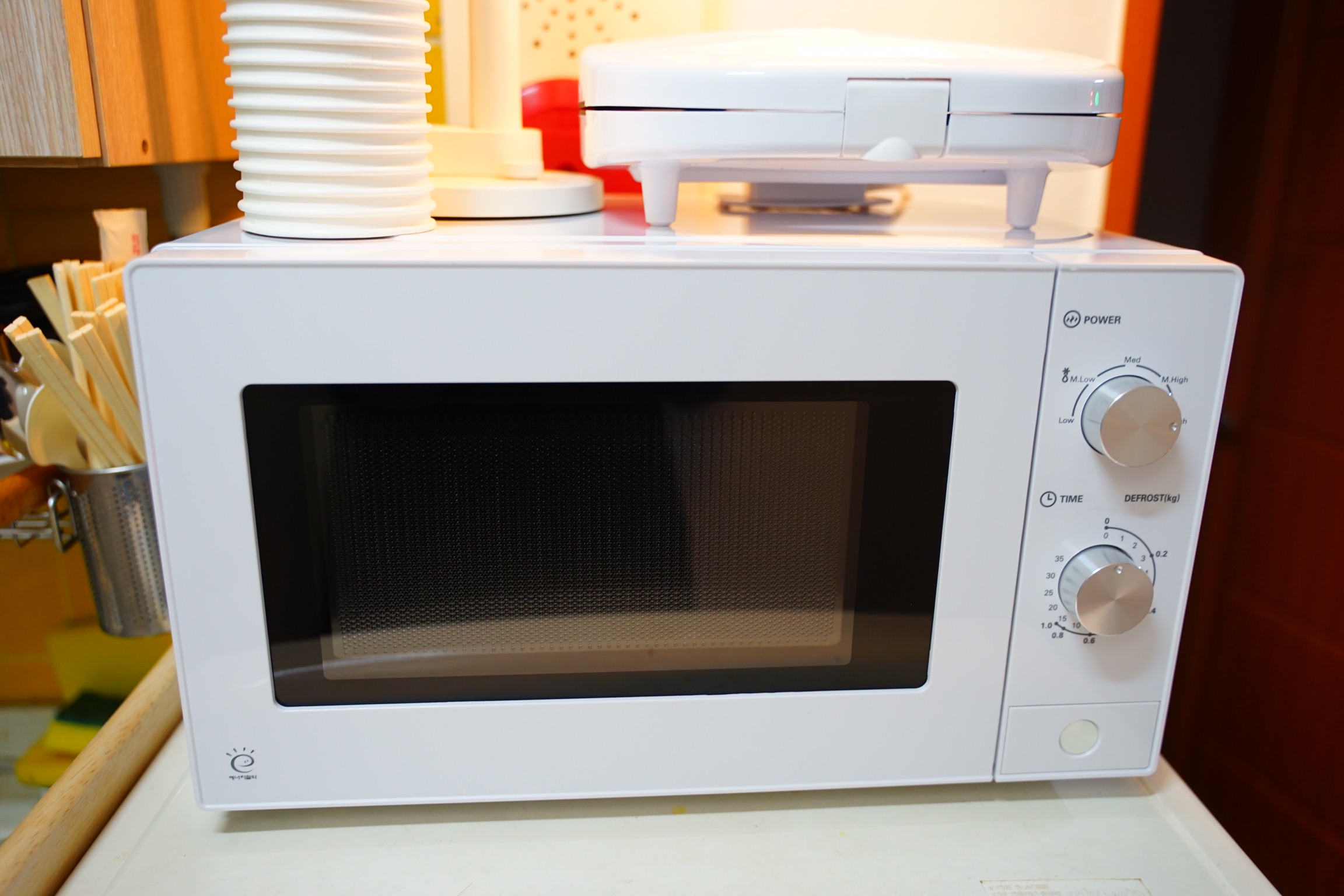 전자렌지 위에 올려져 있는 건 함께 구매한 노브랜드 샌드위치 메이커입니다.