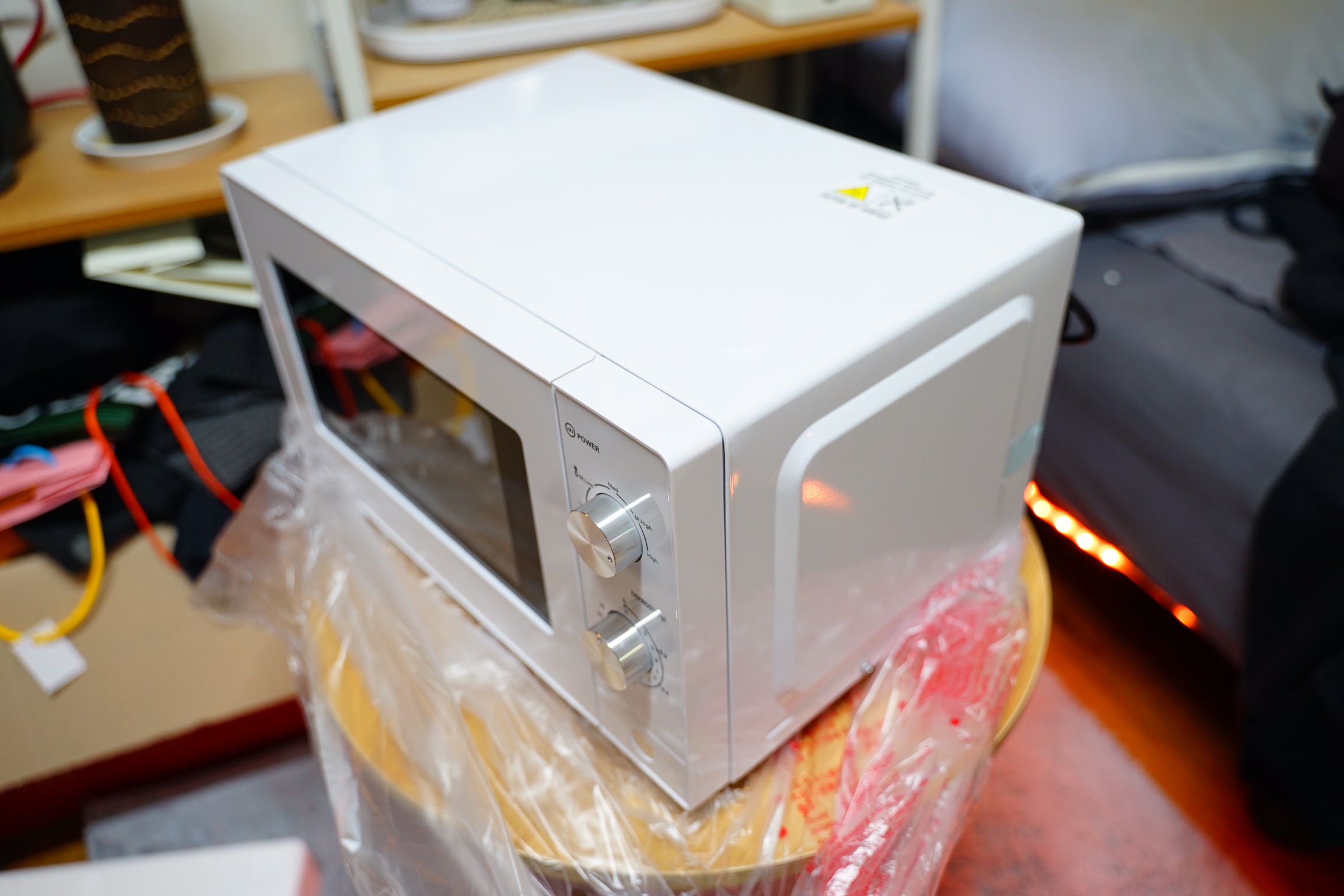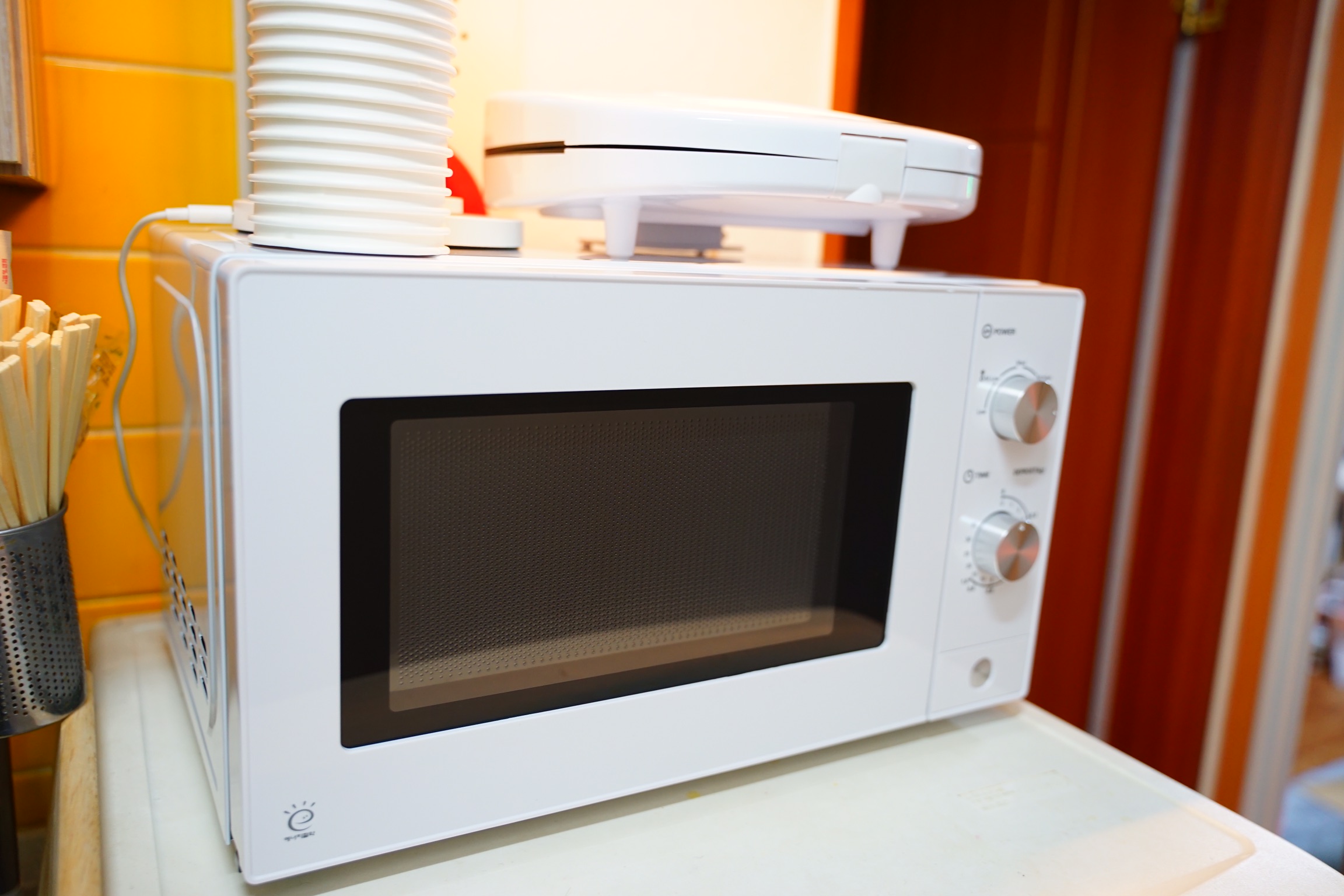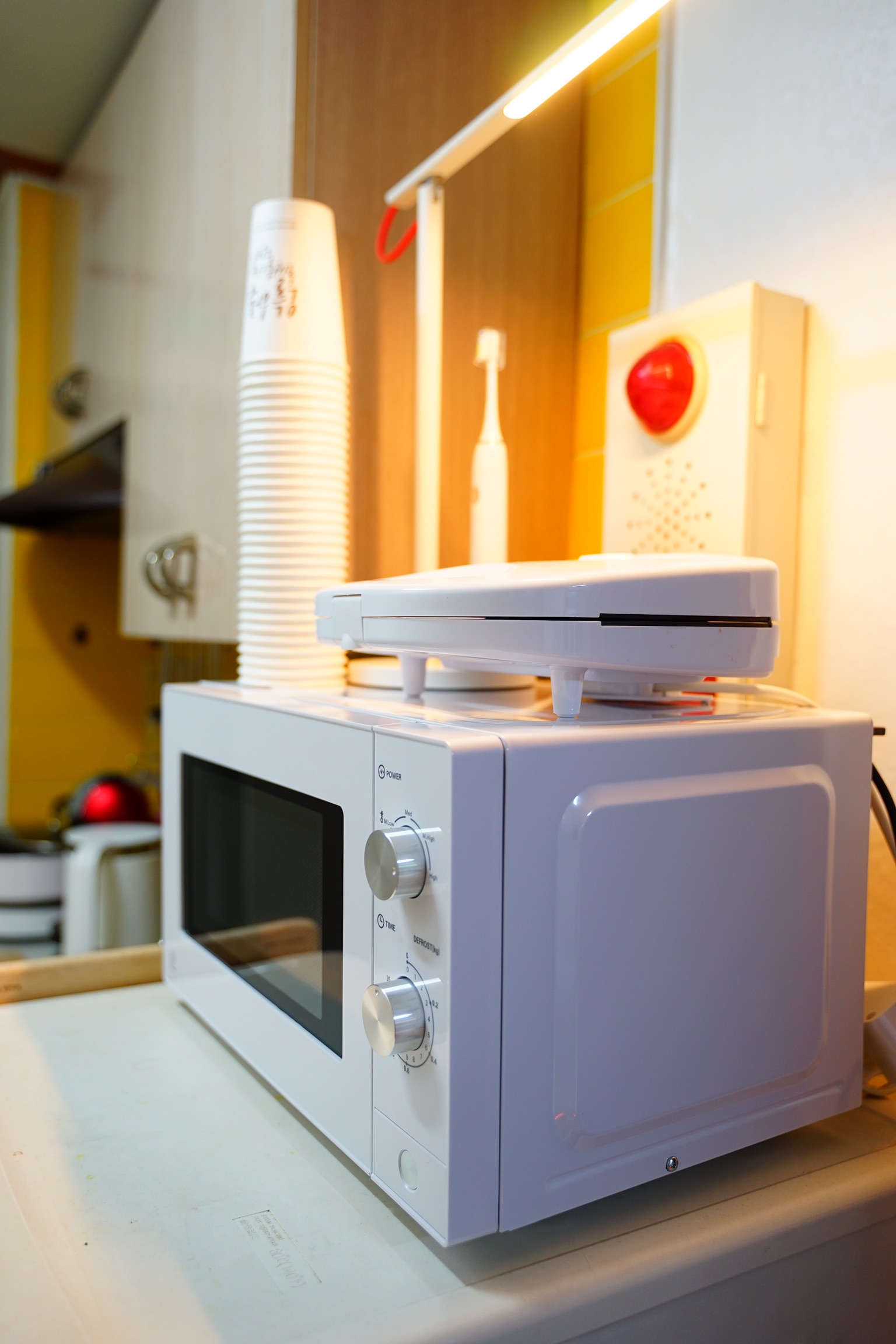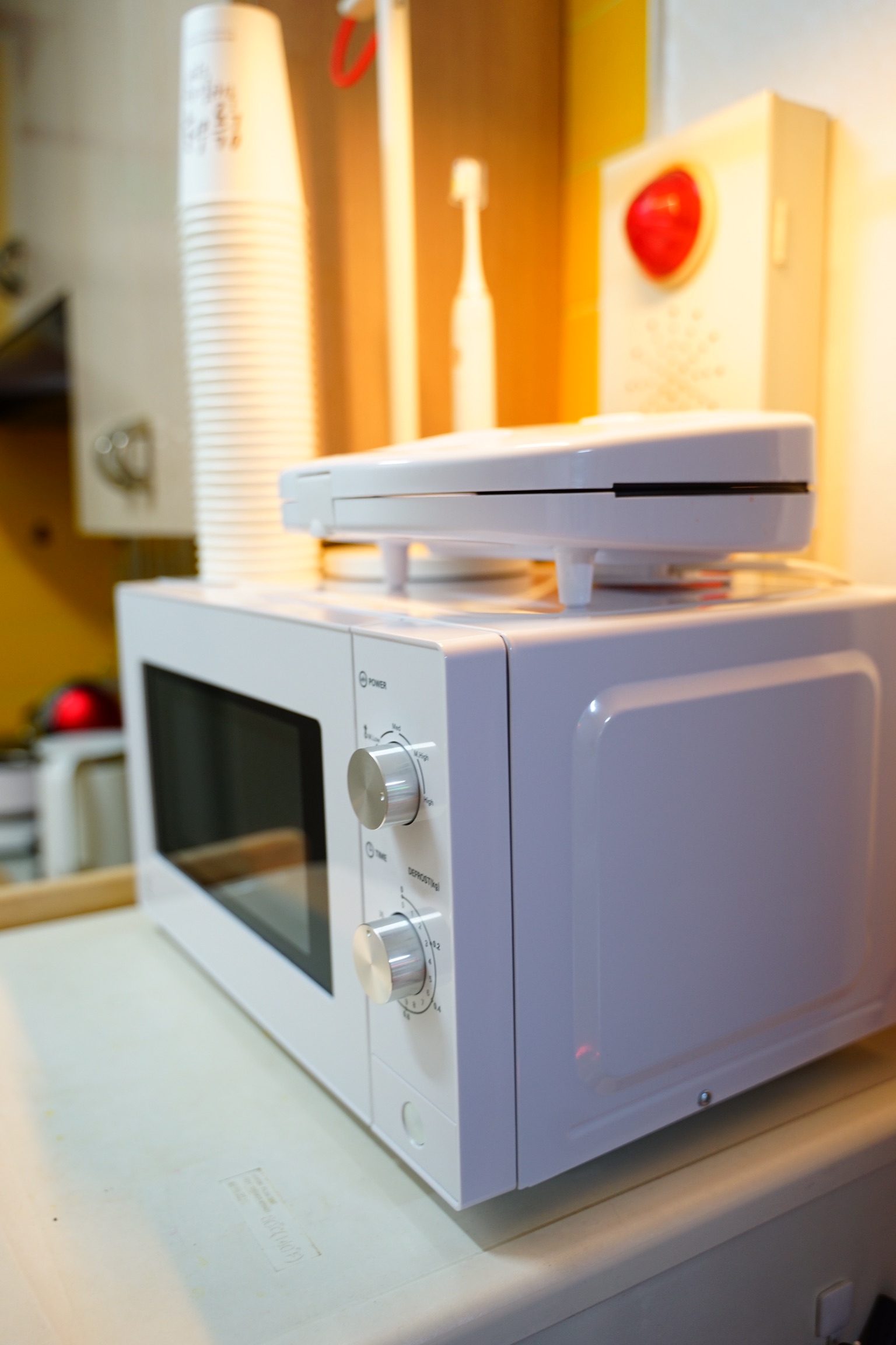 전자렌지 위에 올려져 있는 건 함께 구매한 노브랜드 샌드위치 메이커입니다.