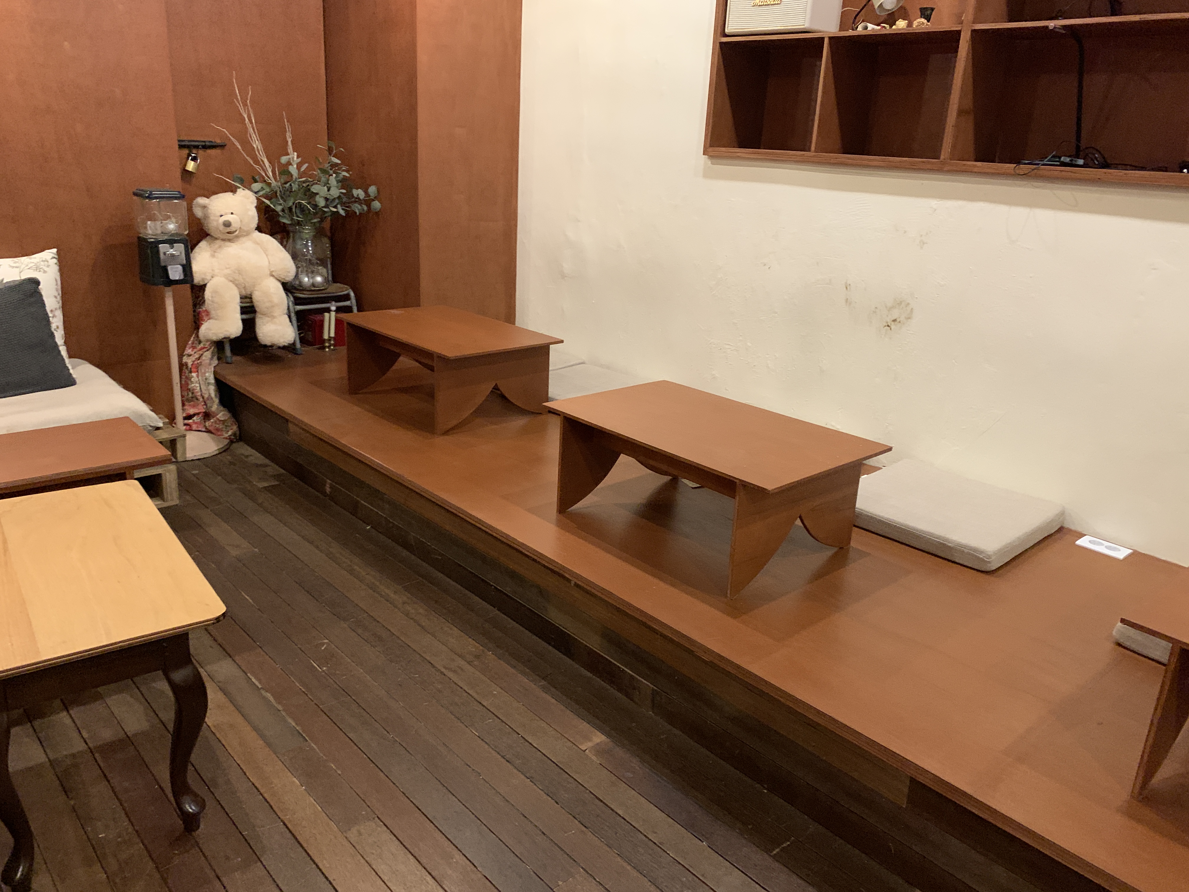 그리고 안쪽에는 이런 좌식 테이블도 있어요! 저는 개인적으로 벽에 기대고 편하게 앉아있는 걸 좋아하는 편이라 이 자리가 마음에 들더라구요 ㅎㅎ