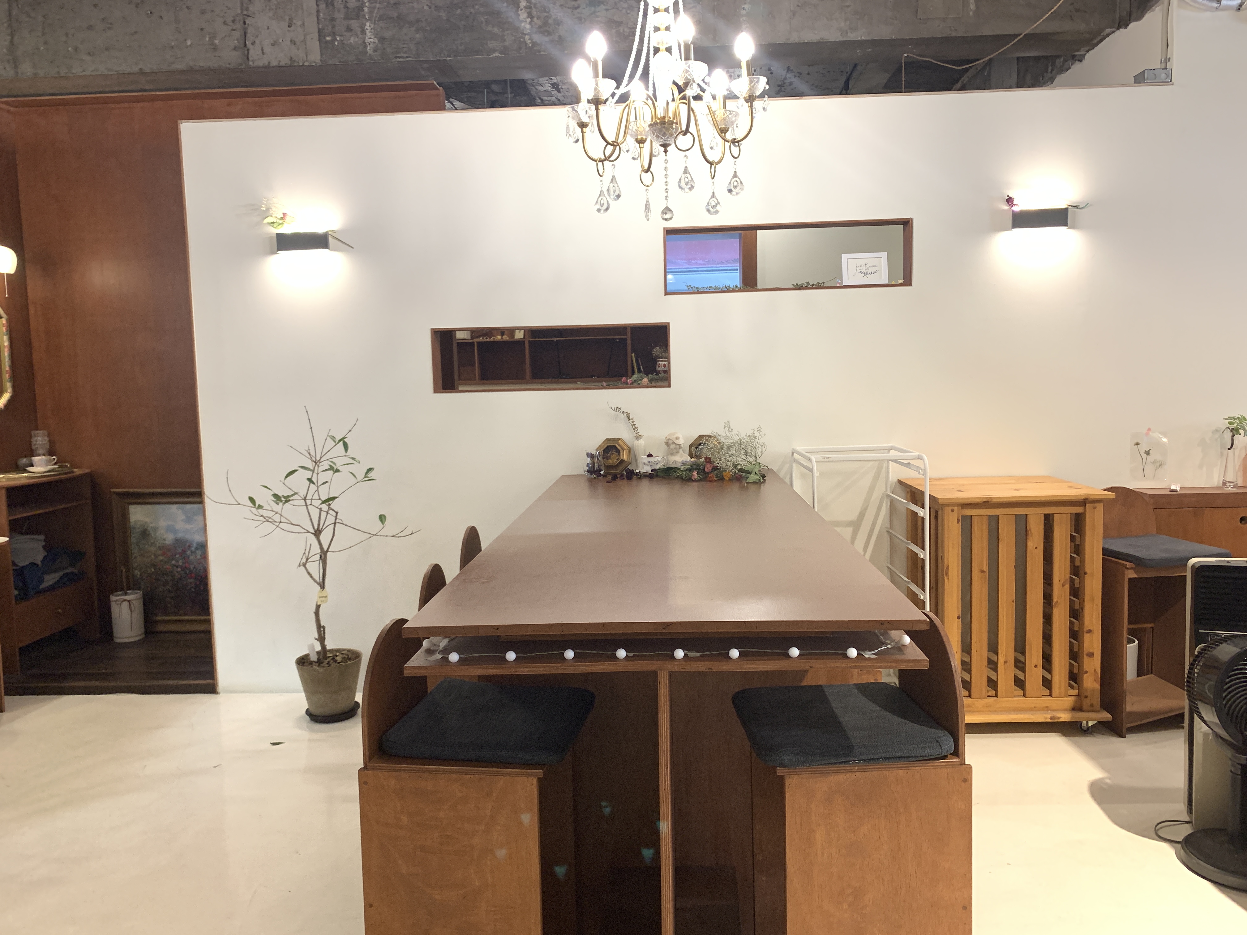 중앙에는 이런 회의실 테이블 같은 게 있는데, 넓은 테이블 좋아하시는 분들은 여기 앉아도 좋겠네요.