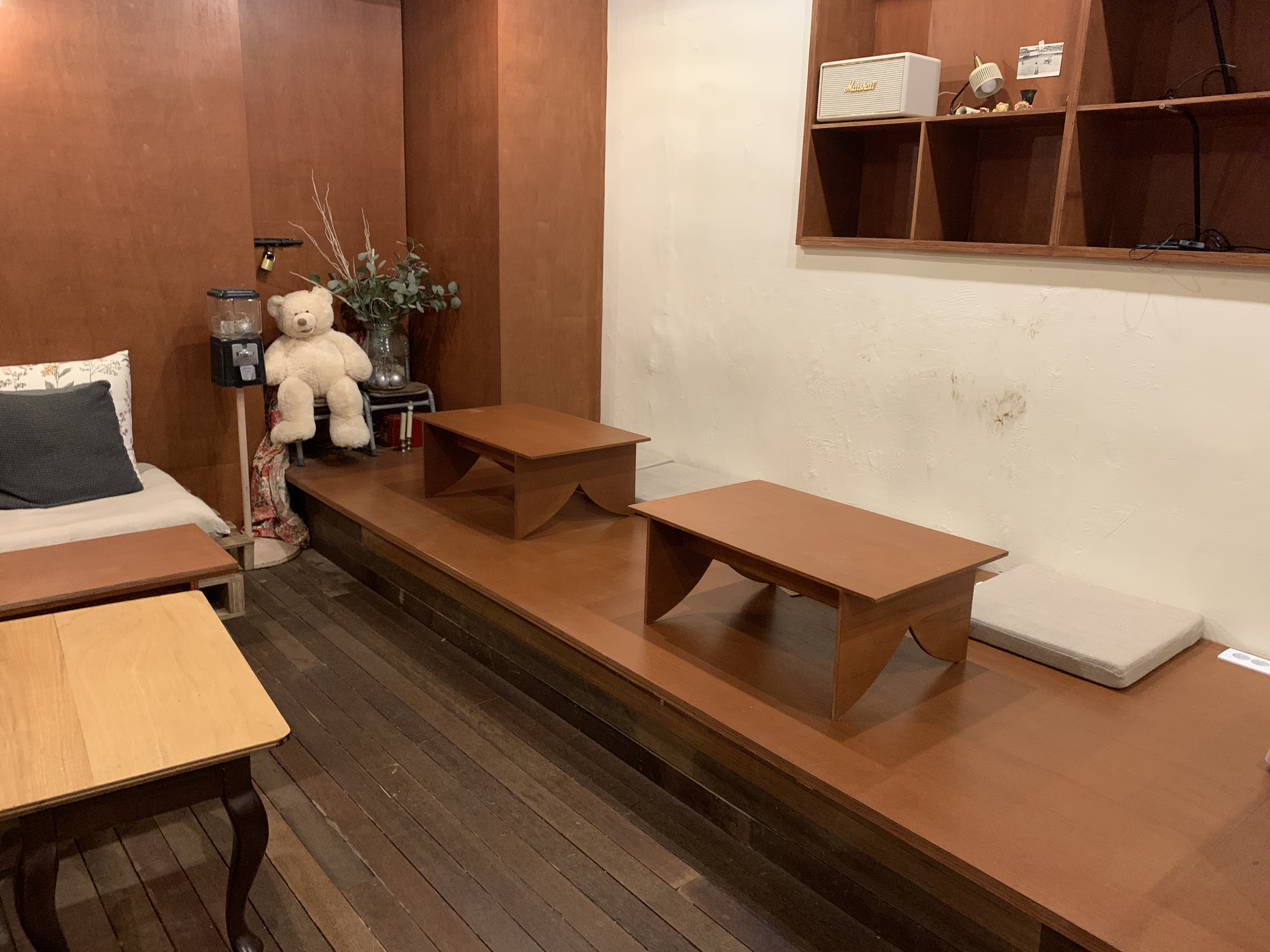 그리고 안쪽에는 이런 좌식 테이블도 있어요! 저는 개인적으로 벽에 기대고 편하게 앉아있는 걸 좋아하는 편이라 이 자리가 마음에 들더라구요 ㅎㅎ
