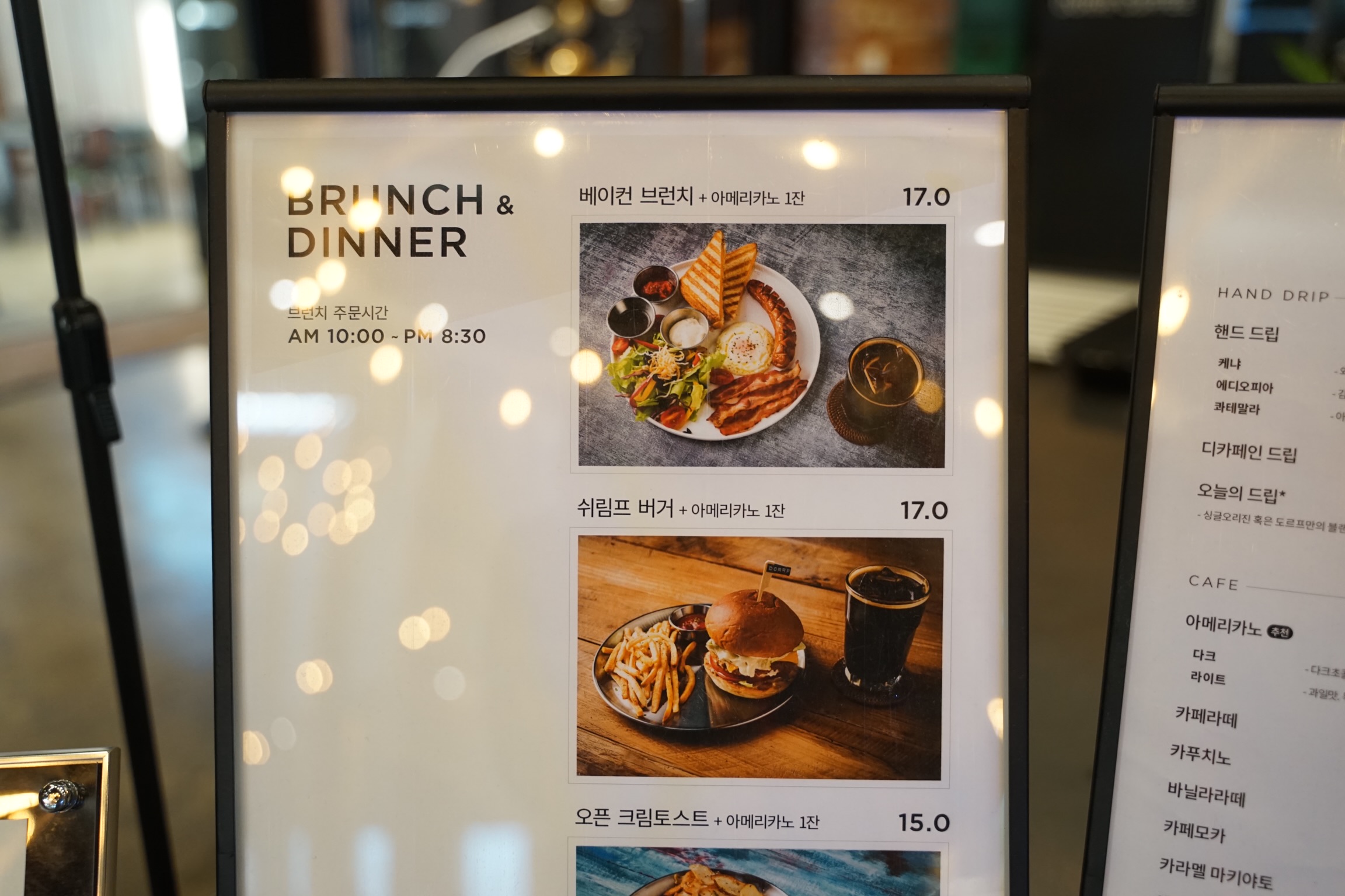 브런치 메뉴도 있으니 식사를 하시기에도 괜찮을 것 같습니다. 가격은 조금 비싸네요.