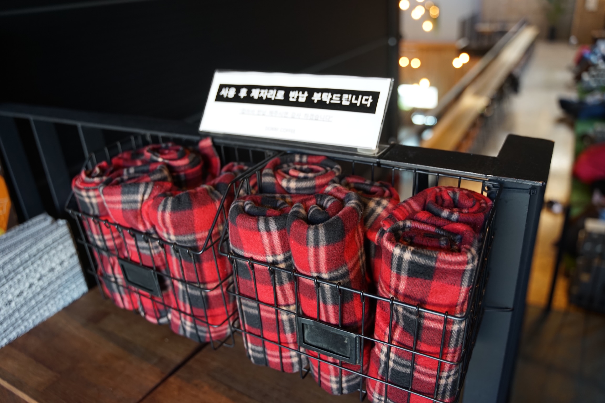 아무래도 밖에 있으면 추울 수 있으니 저 담요를 가지고 쓰시면 됩니다. 이거저거 잘 준비가 되어 있다는 건 좋습니다.