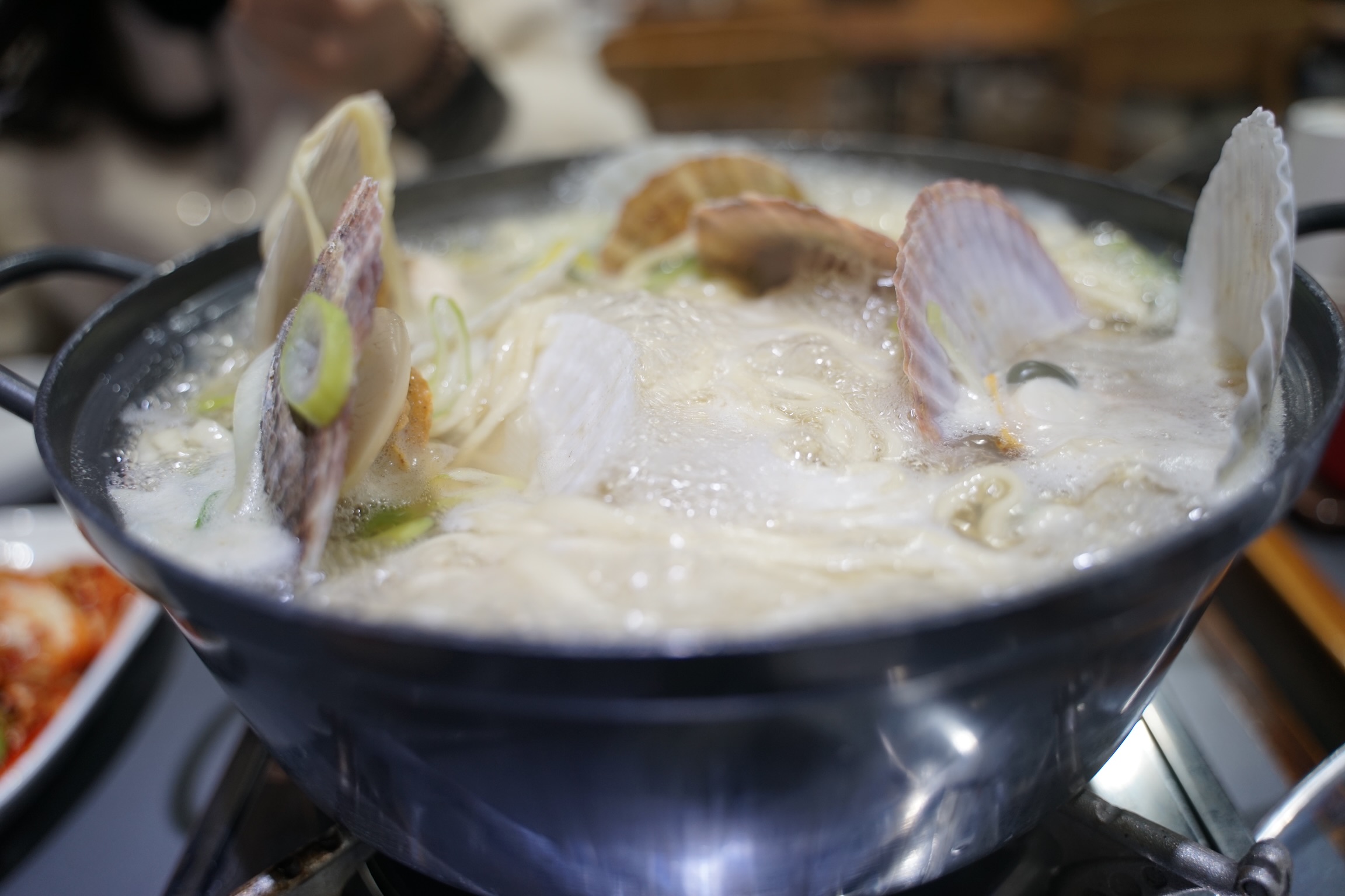 보글 보글 끓고 있는 가리비 칼국수 !!!